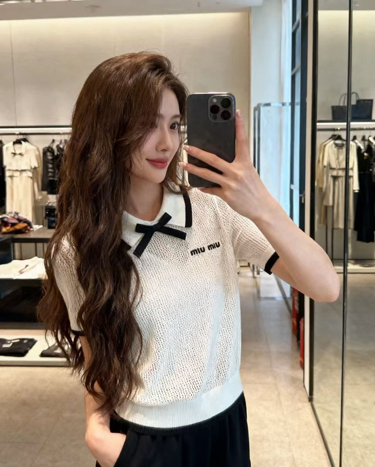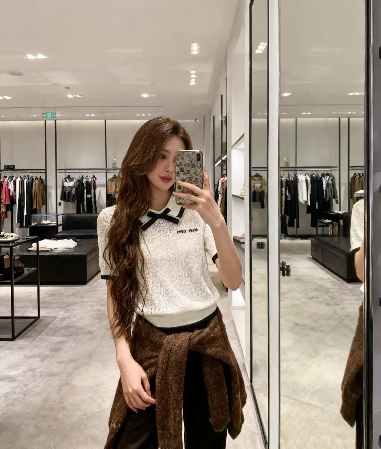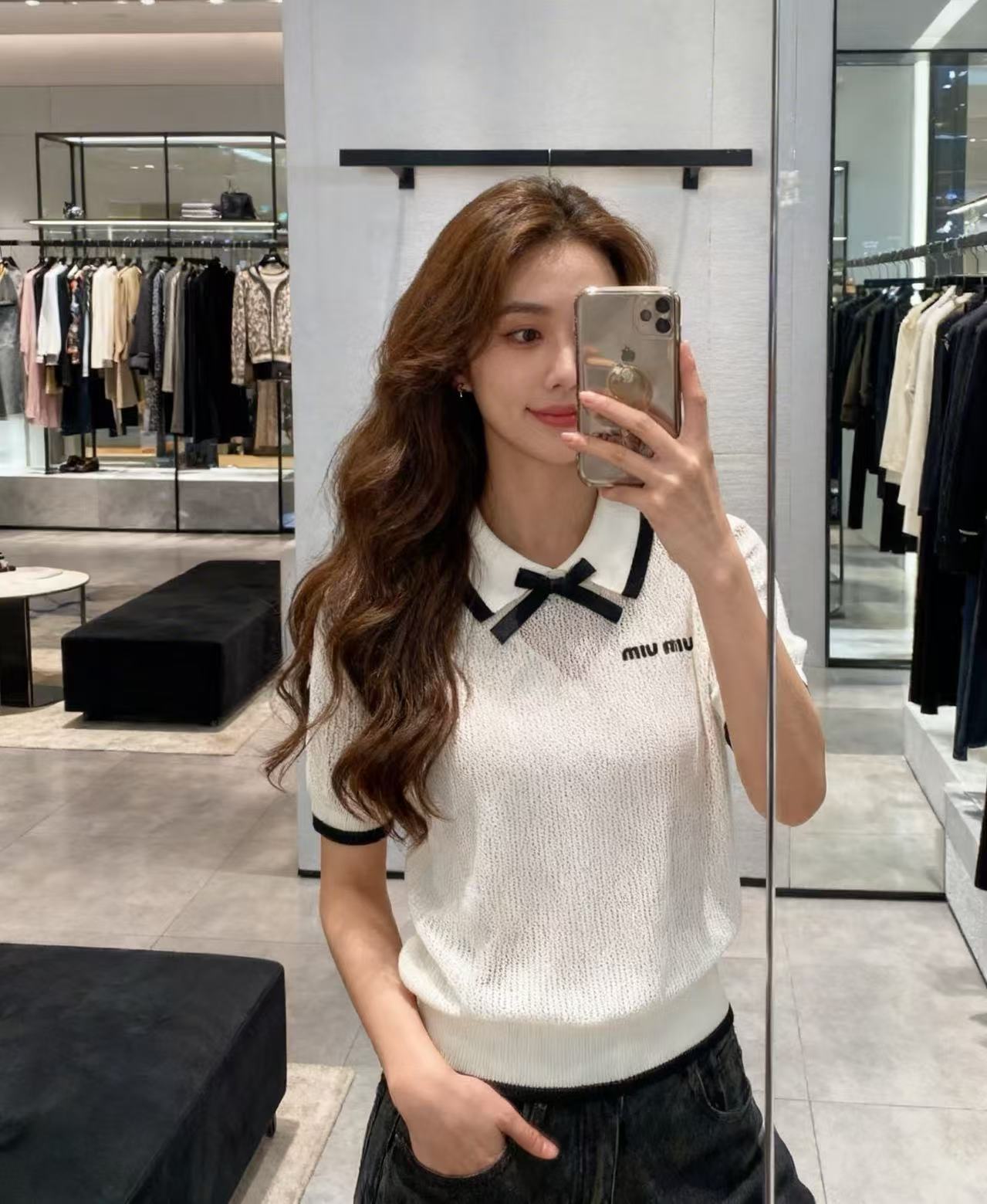 这款衣服是AAAAA 1:1 质量 (非常棒). 使用了和原版一模一样的材料. 商标部分也保持了和缪缪/Miu Miu一样. 图片拍摄是实物衣服拍摄, 您所收到的实物保证和我们图片一模一样.