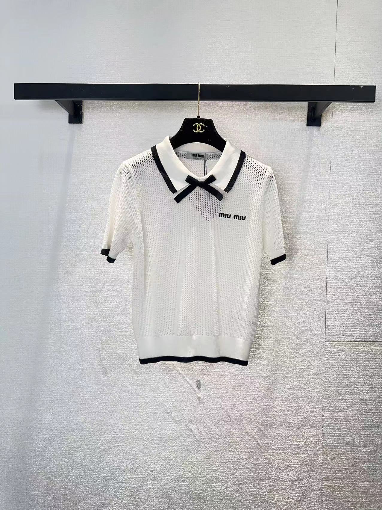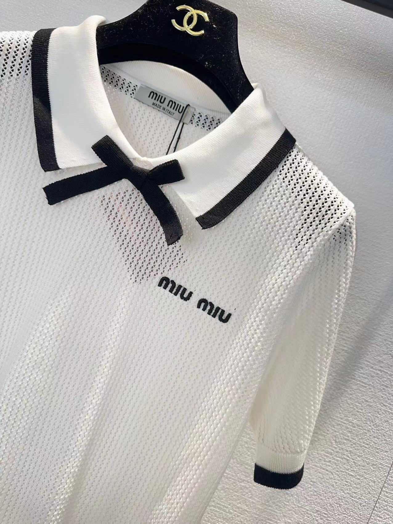 这款衣服是AAAAA 1:1 质量 (非常棒). 使用了和原版一模一样的材料. 商标部分也保持了和缪缪/Miu Miu一样. 图片拍摄是实物衣服拍摄, 您所收到的实物保证和我们图片一模一样.