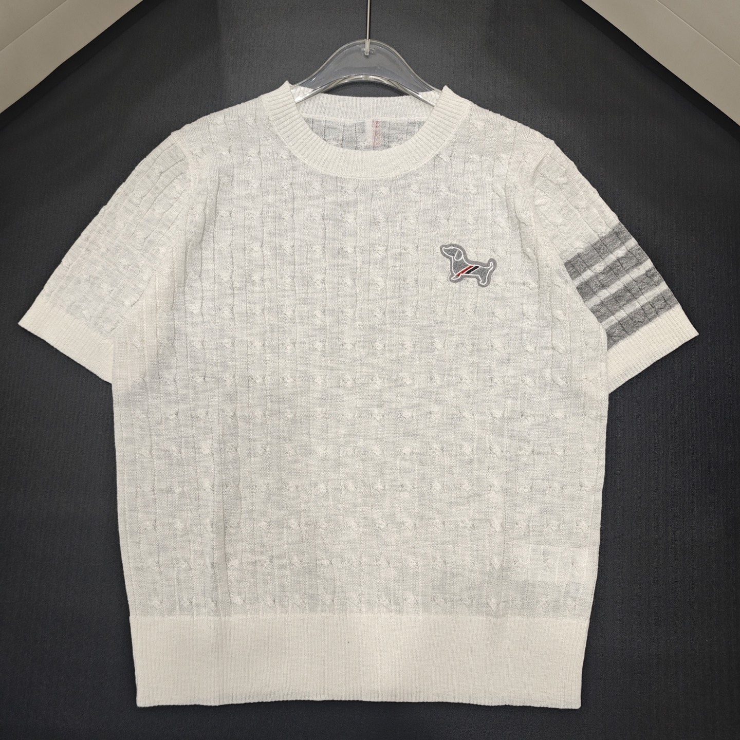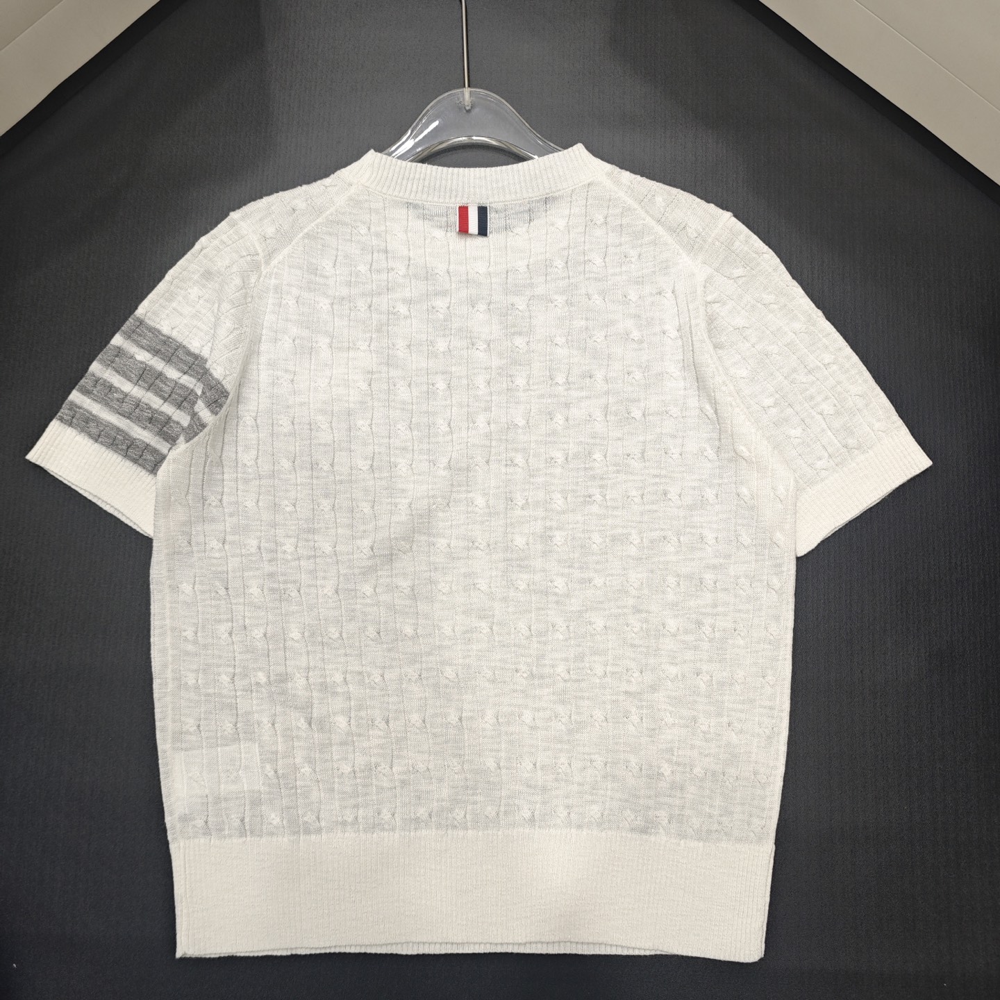 这款衣服是AAAAA 1:1 质量 (非常棒). 使用了和原版一模一样的材料. 商标部分也保持了和汤姆布朗/Thom Browne一样. 图片拍摄是实物衣服拍摄, 您所收到的实物保证和我们图片一模一样.