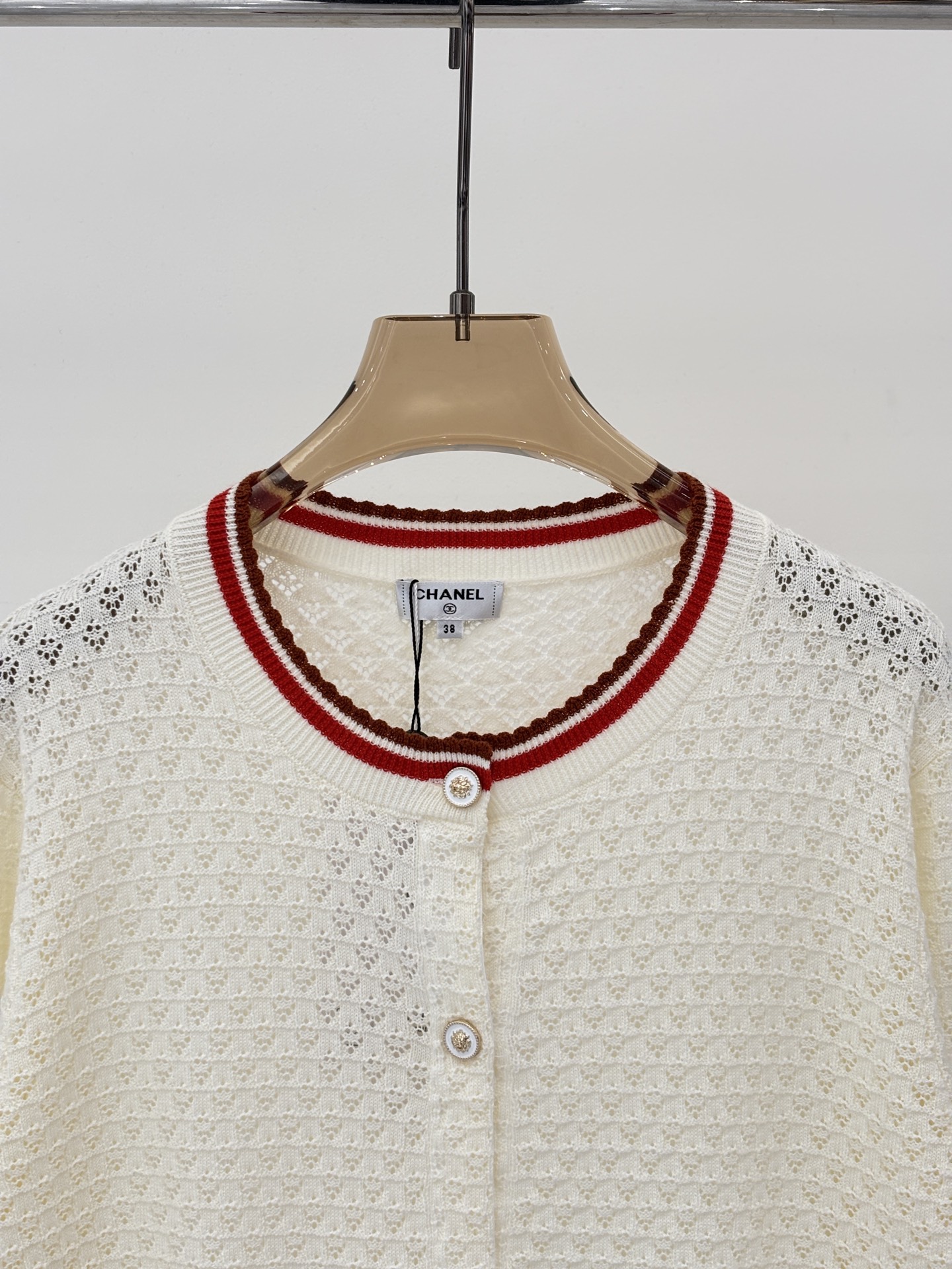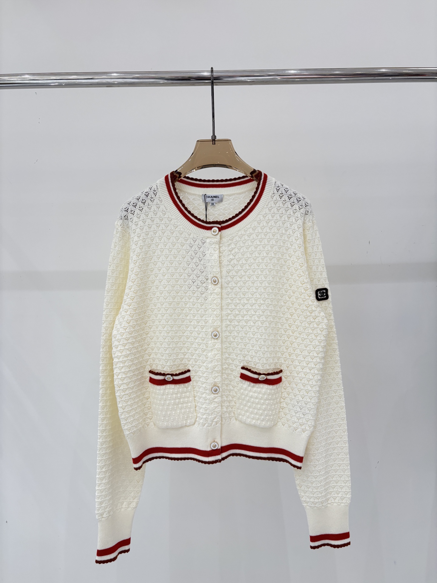 这款衣服是AAAAA 1:1 质量 (非常棒). 使用了和原版一模一样的材料. 商标部分也保持了和香奈儿/Chanel一样. 图片拍摄是实物衣服拍摄, 您所收到的实物保证和我们图片一模一样.