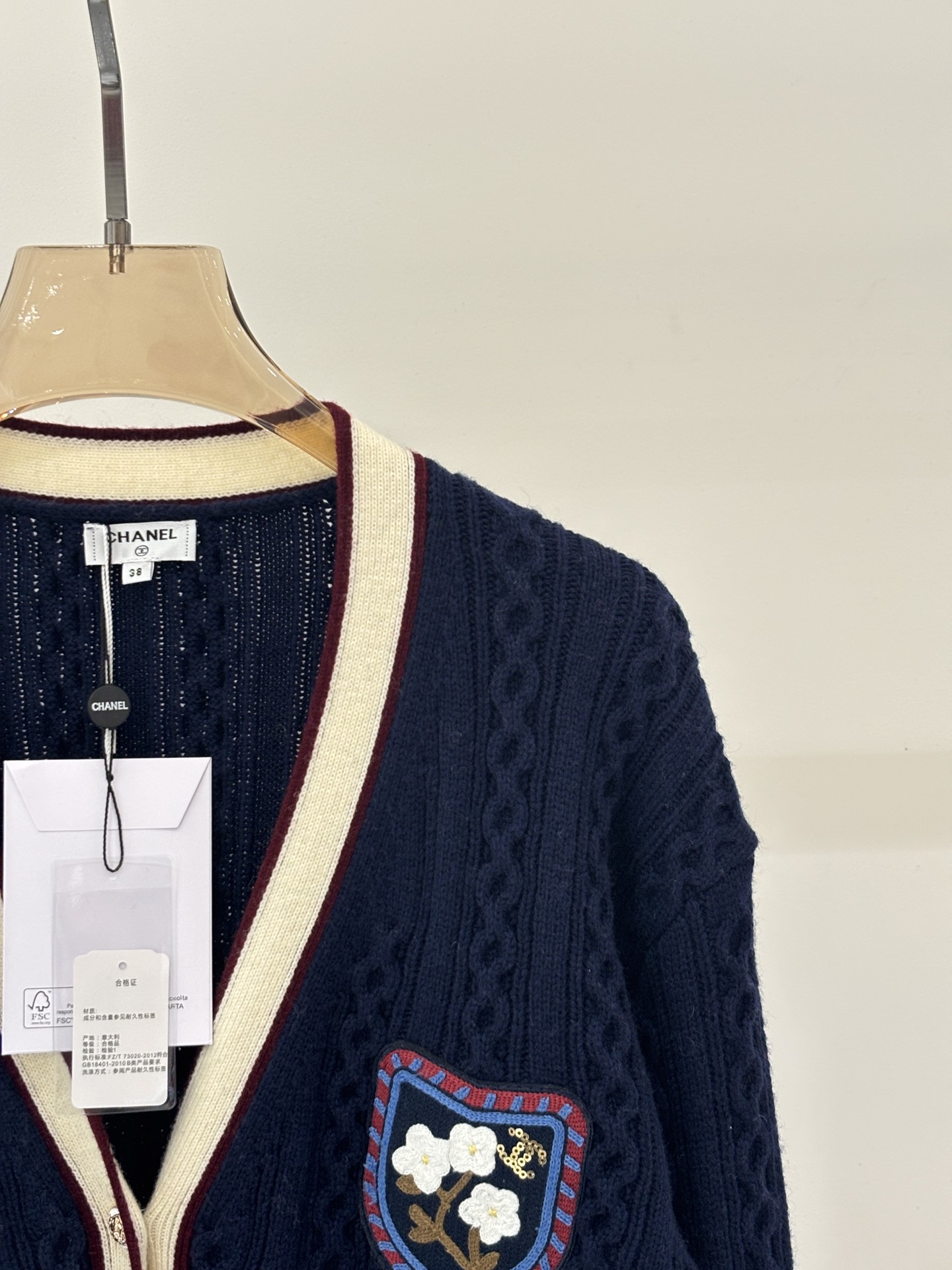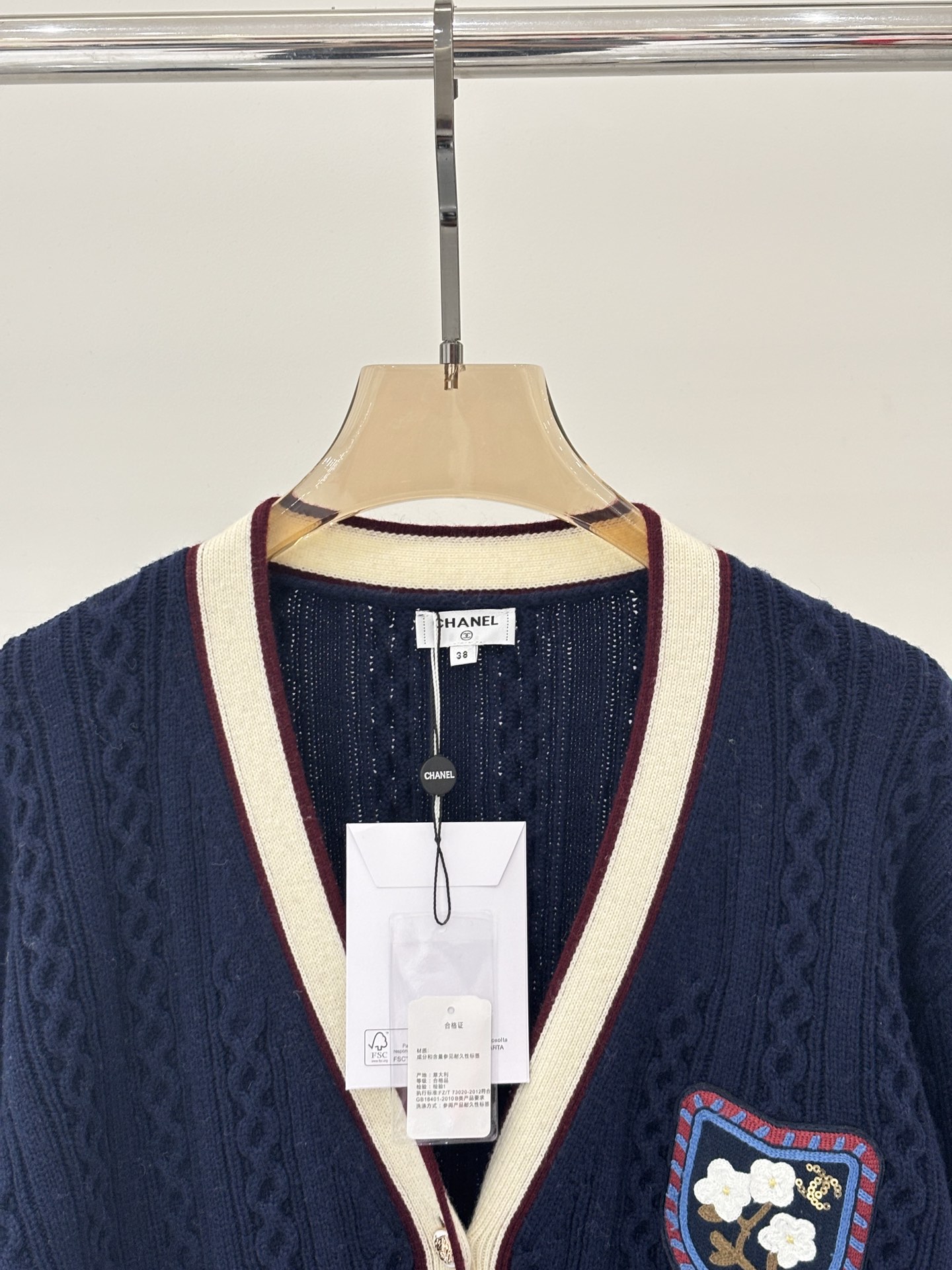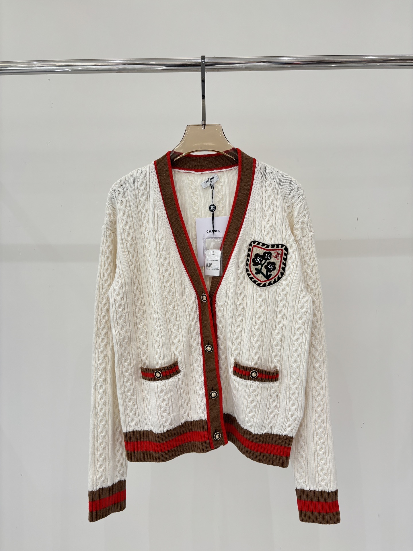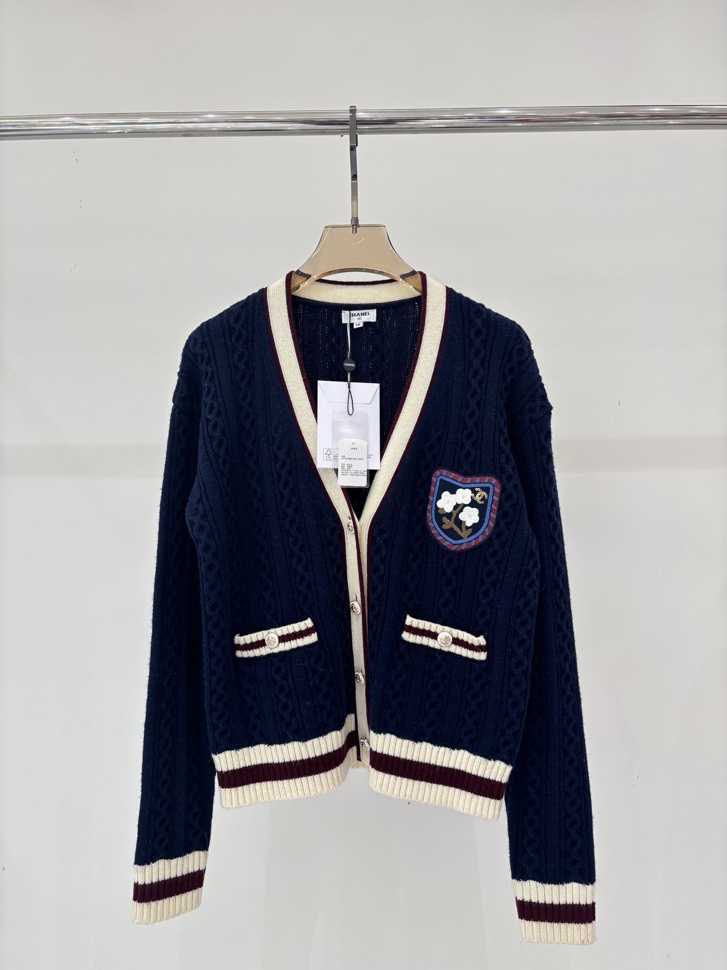 这款衣服是AAAAA 1:1 质量 (非常棒). 使用了和原版一模一样的材料. 商标部分也保持了和香奈儿/Chanel一样. 图片拍摄是实物衣服拍摄, 您所收到的实物保证和我们图片一模一样.