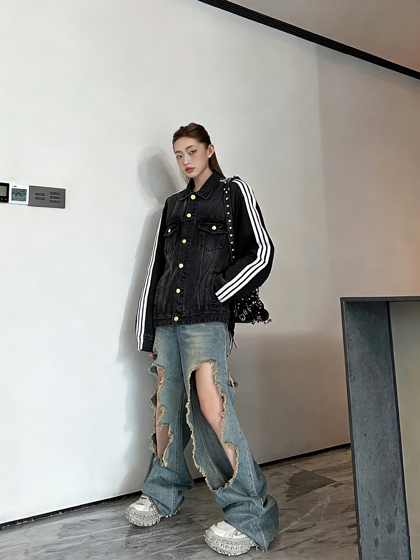 这款衣服是AAAAA 1:1 质量 (非常棒). 使用了和原版一模一样的材料. 商标部分也保持了和巴黎世家/Balenciaga一样. 图片拍摄是实物衣服拍摄, 您所收到的实物保证和我们图片一模一样.