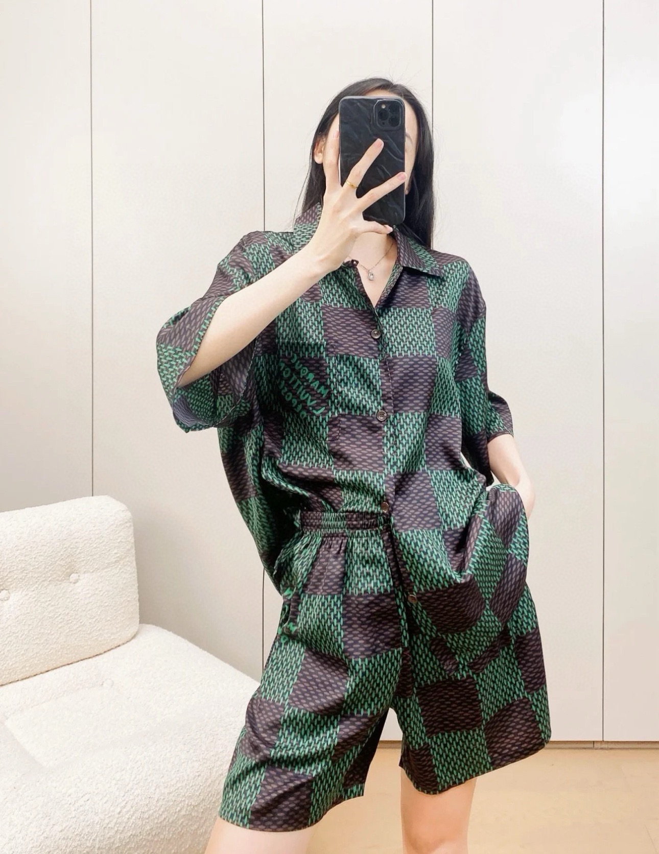 这款衣服是AAAAA 1:1 质量 (非常棒). 使用了和原版一模一样的材料. 商标部分也保持了和路易威登/Louis Vuitton一样. 图片拍摄是实物衣服拍摄, 您所收到的实物保证和我们图片一模一样.