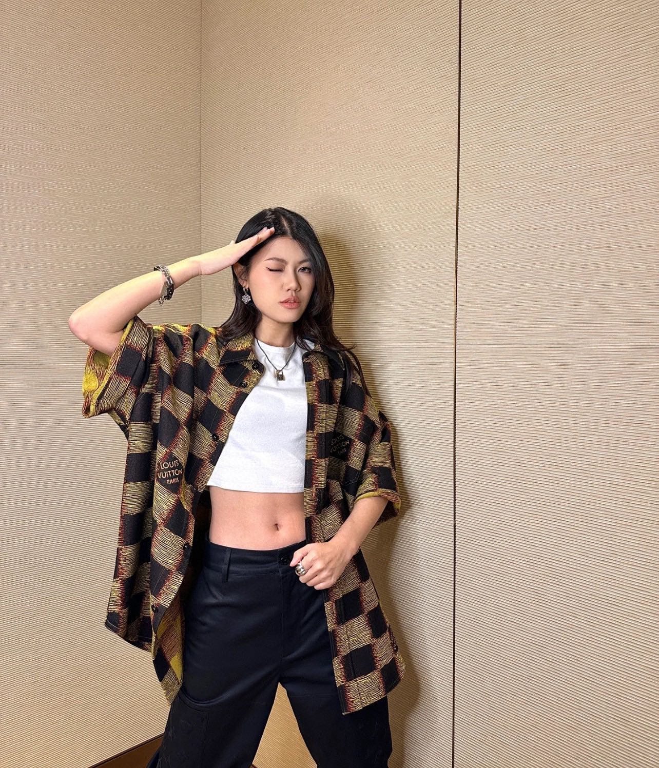 这款衣服是AAAAA 1:1 质量 (非常棒). 使用了和原版一模一样的材料. 商标部分也保持了和路易威登/Louis Vuitton一样. 图片拍摄是实物衣服拍摄, 您所收到的实物保证和我们图片一模一样.