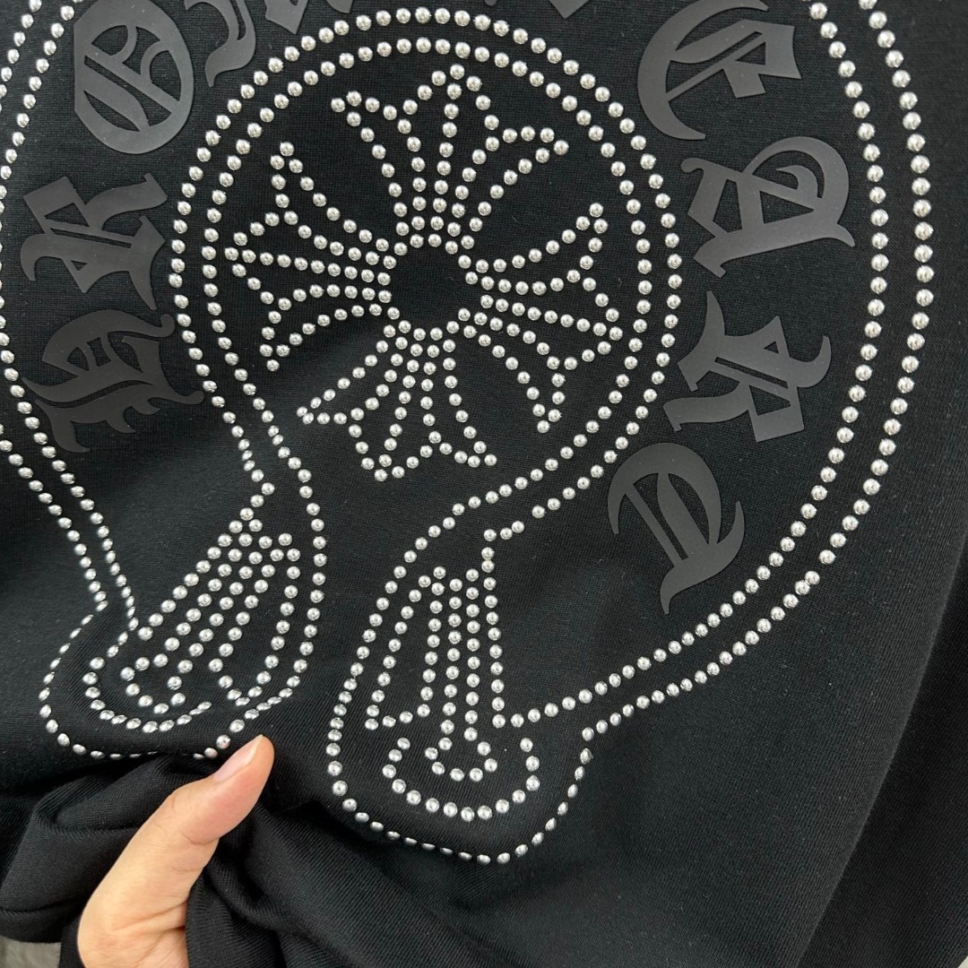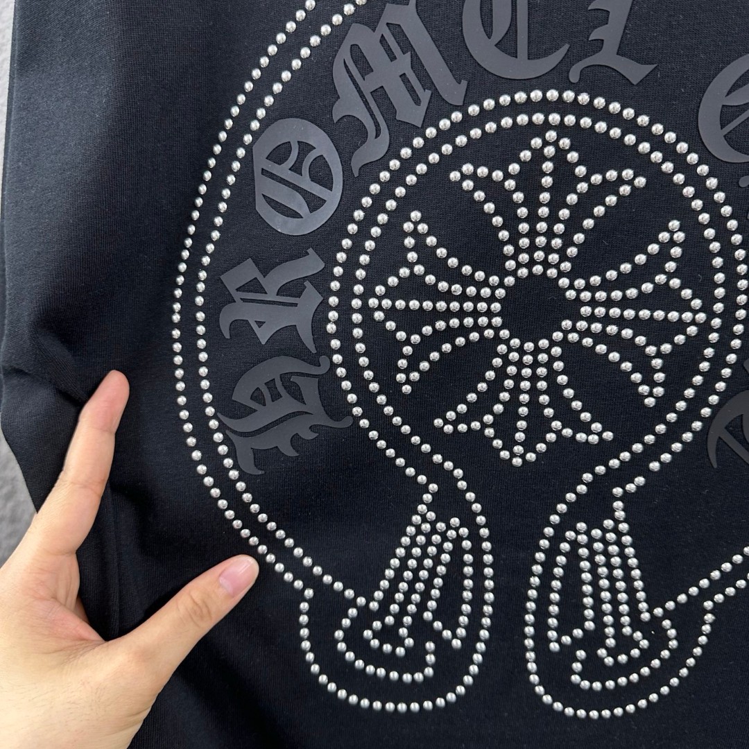 这款衣服是AAAAA 1:1 质量 (非常棒). 使用了和原版一模一样的材料. 商标部分也保持了和克罗心/Chrome Hearts一样. 图片拍摄是实物衣服拍摄, 您所收到的实物保证和我们图片一模一样.