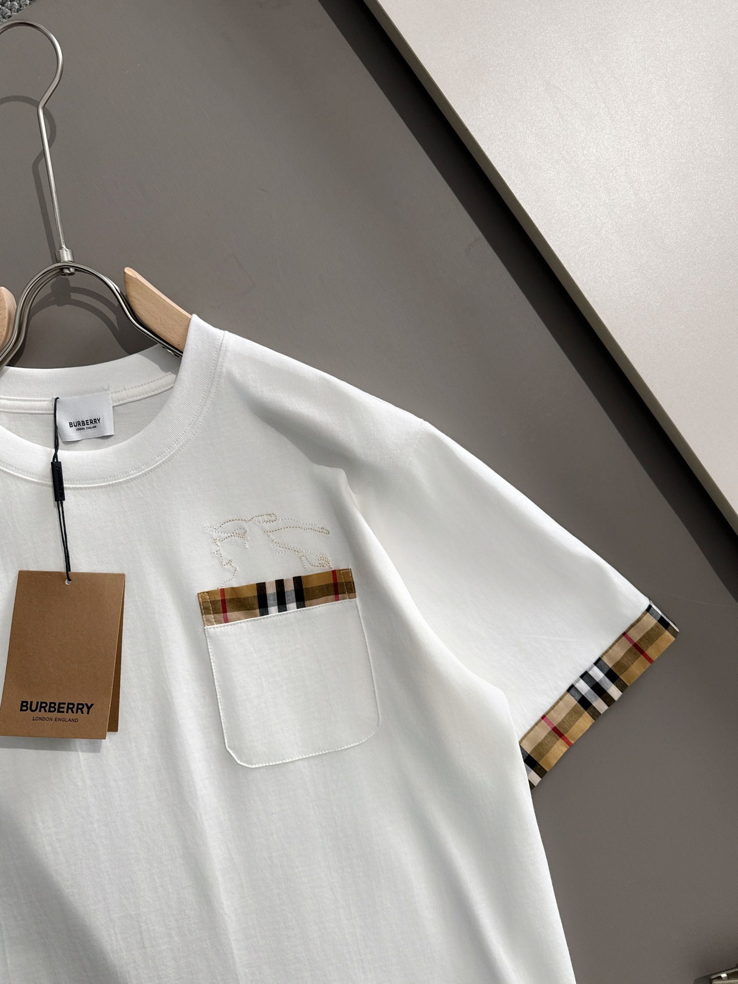 这款衣服是AAAAA 1:1 质量 (非常棒). 使用了和原版一模一样的材料. 商标部分也保持了和巴宝莉/Burberry一样. 图片拍摄是实物衣服拍摄, 您所收到的实物保证和我们图片一模一样.