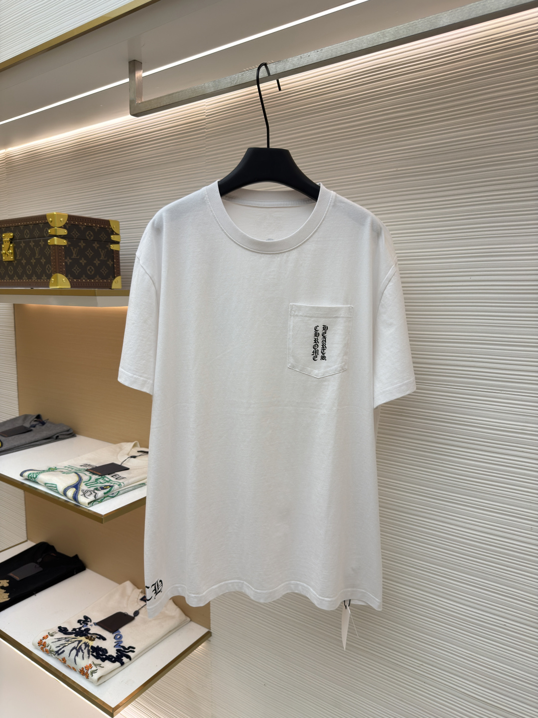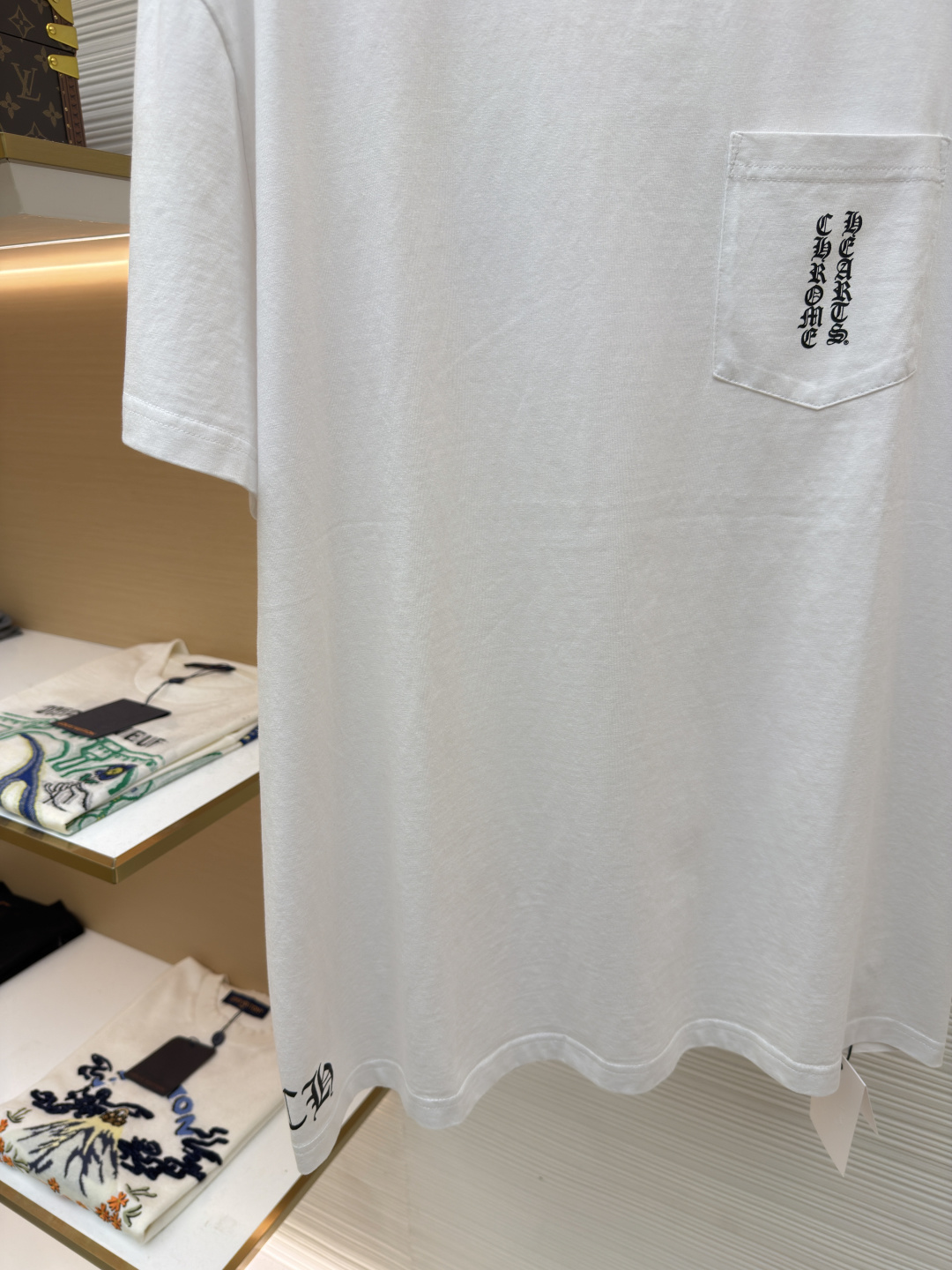 这款衣服是AAAAA 1:1 质量 (非常棒). 使用了和原版一模一样的材料. 商标部分也保持了和克罗心/Chrome Hearts一样. 图片拍摄是实物衣服拍摄, 您所收到的实物保证和我们图片一模一样.