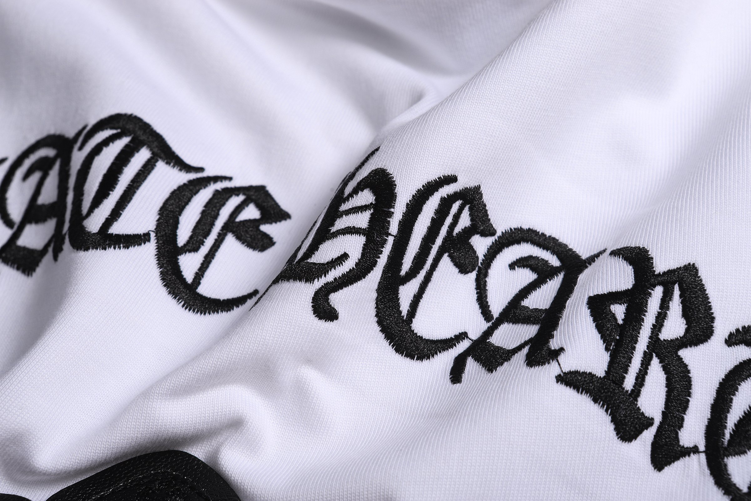 这款衣服是AAAAA 1:1 质量 (非常棒). 使用了和原版一模一样的材料. 商标部分也保持了和克罗心/Chrome Hearts一样. 图片拍摄是实物衣服拍摄, 您所收到的实物保证和我们图片一模一样.