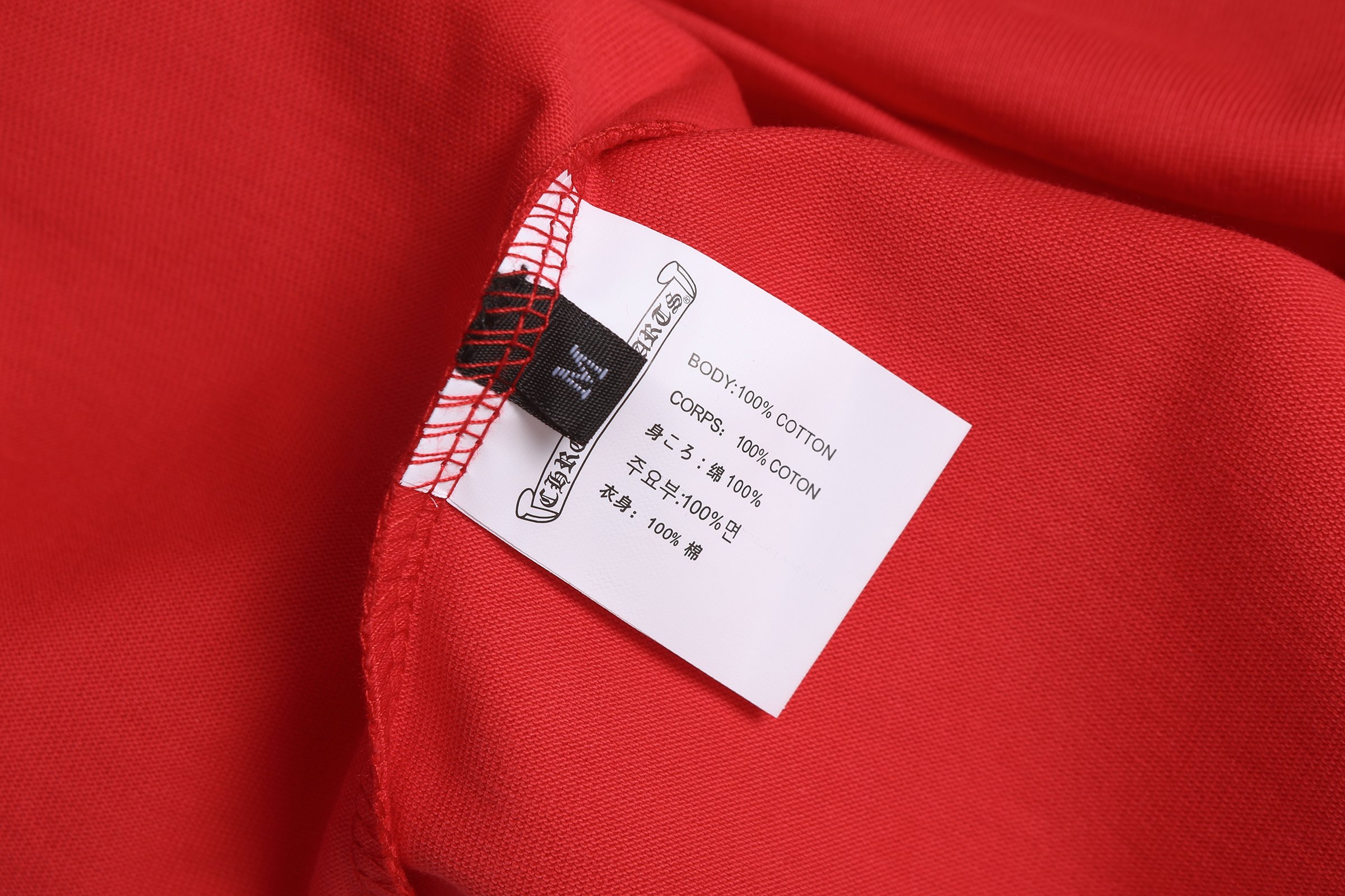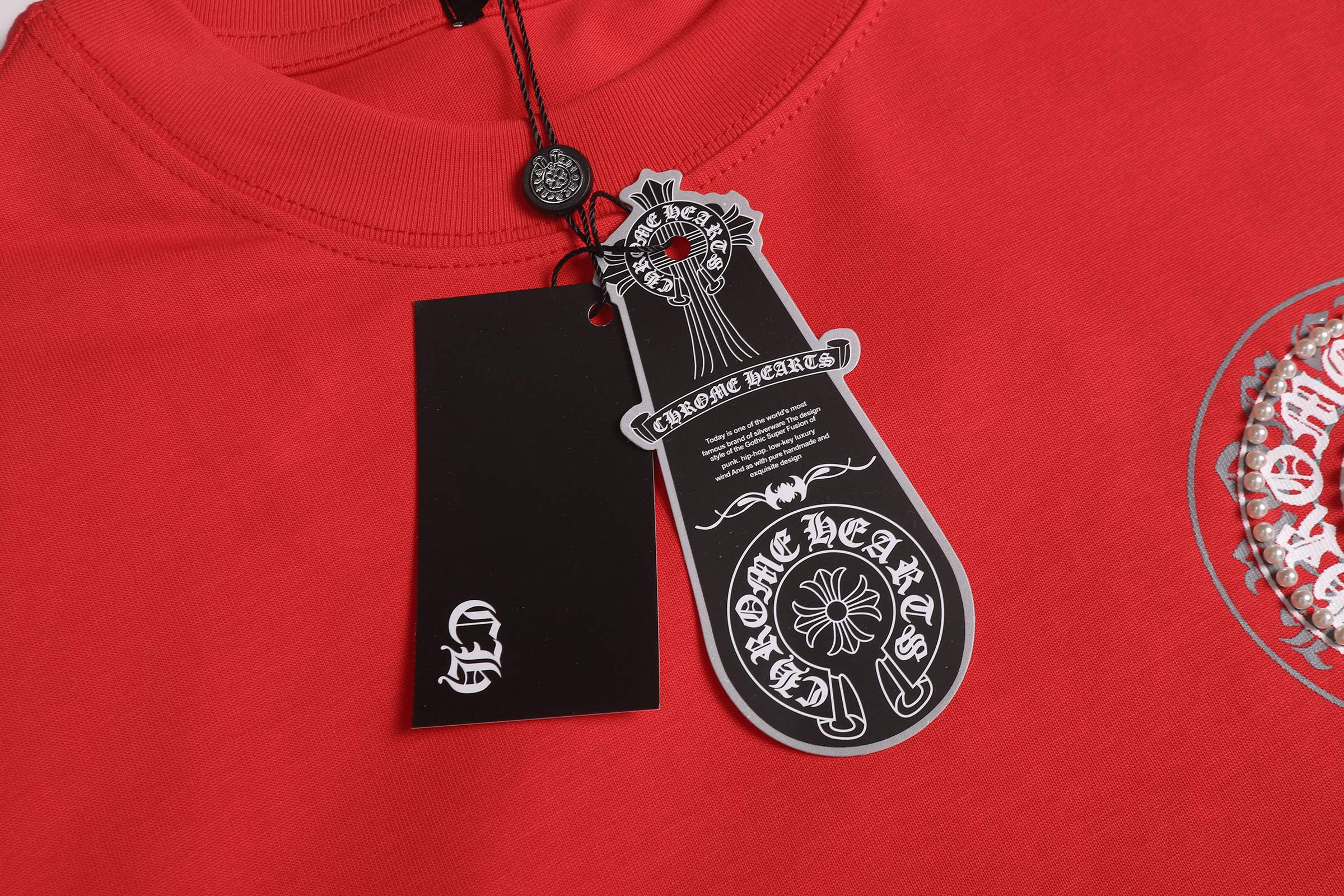 这款衣服是AAAAA 1:1 质量 (非常棒). 使用了和原版一模一样的材料. 商标部分也保持了和克罗心/Chrome Hearts一样. 图片拍摄是实物衣服拍摄, 您所收到的实物保证和我们图片一模一样.