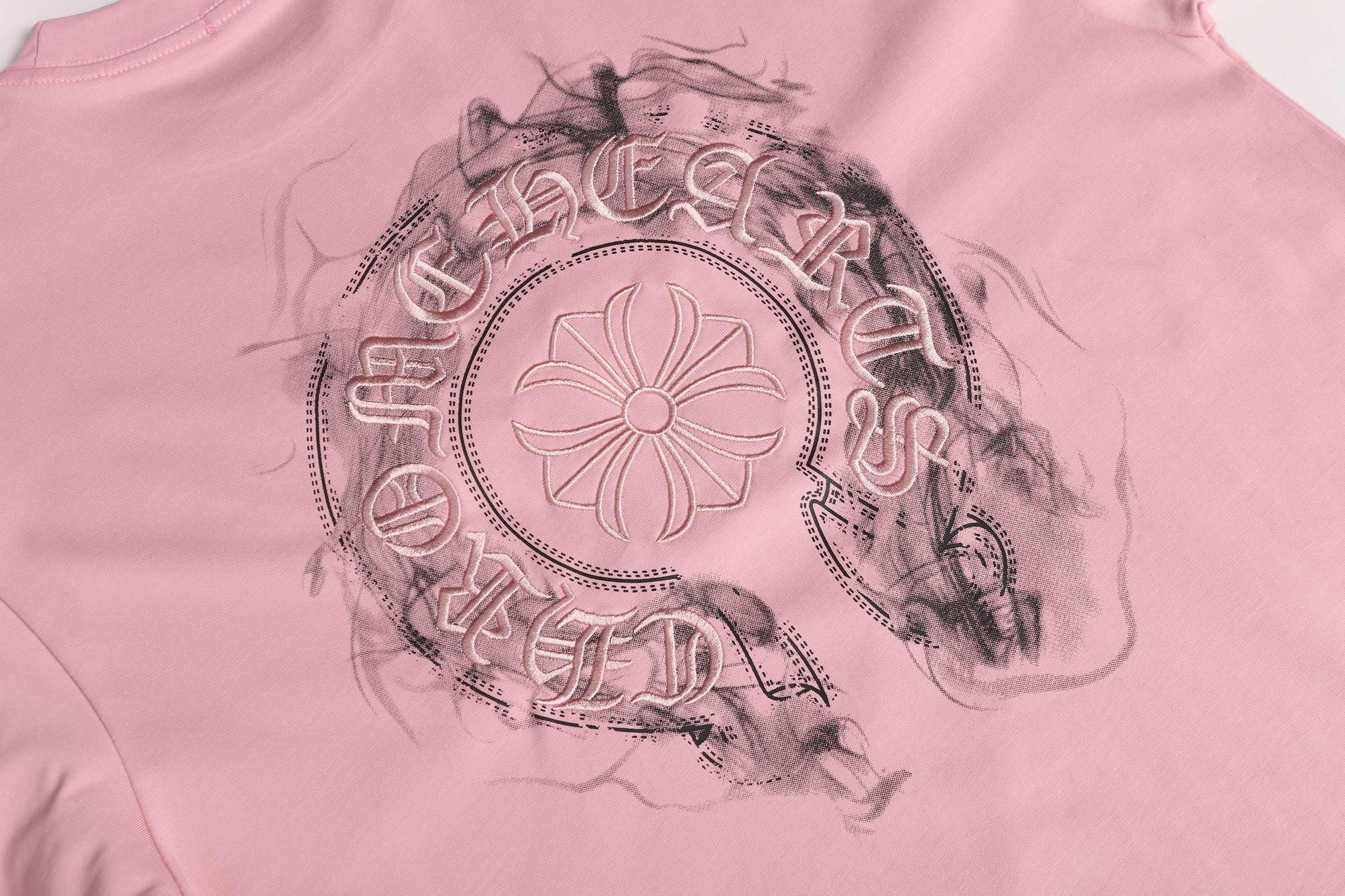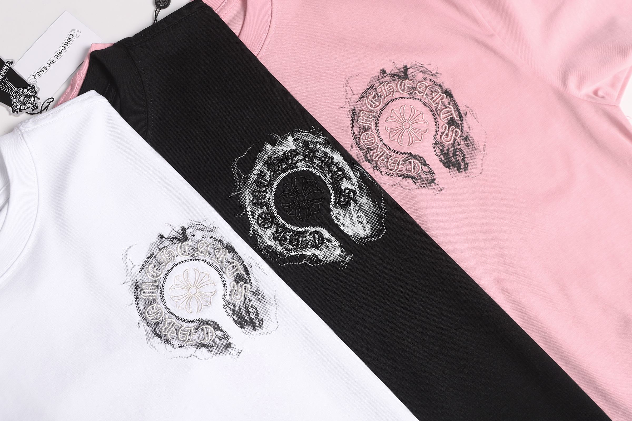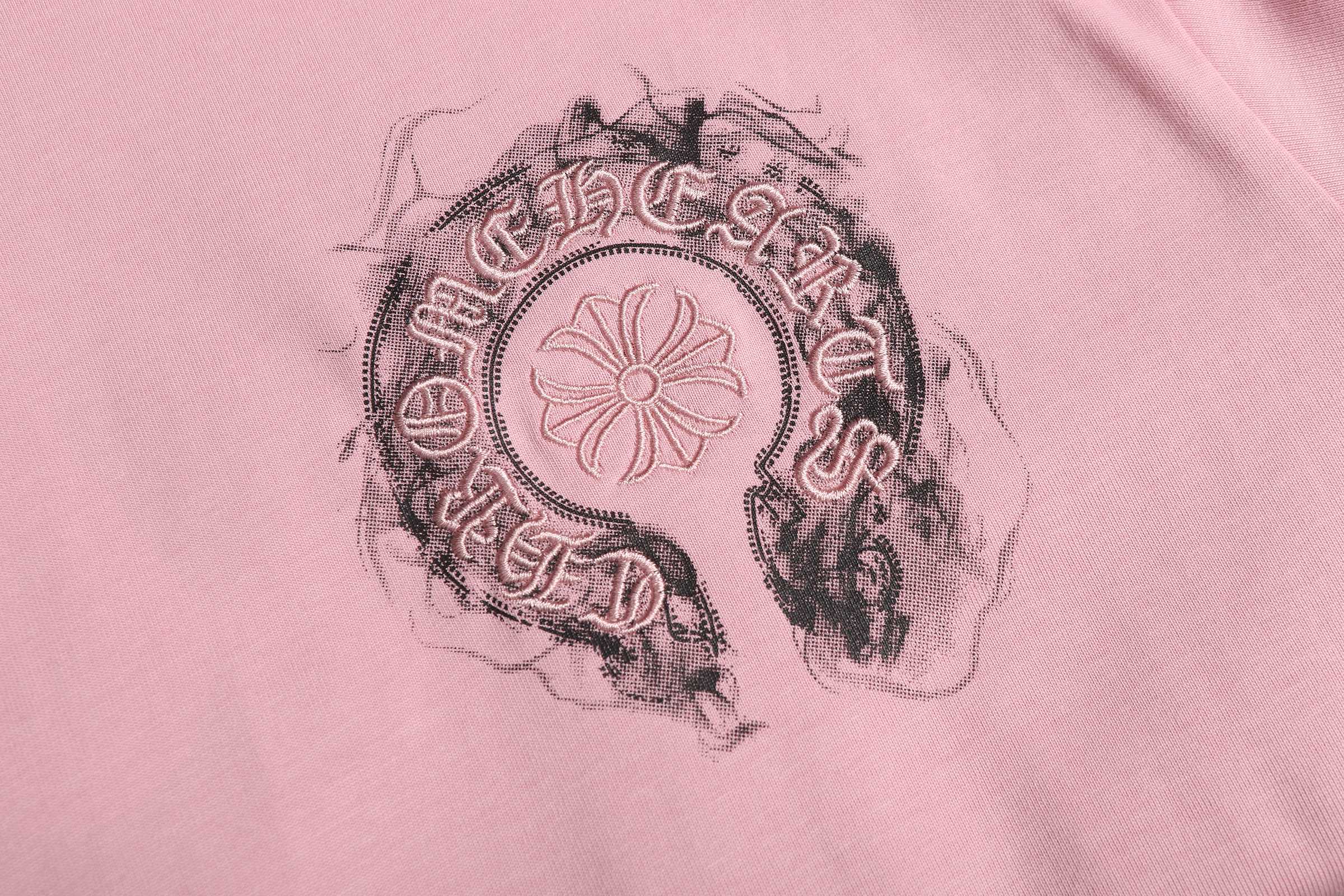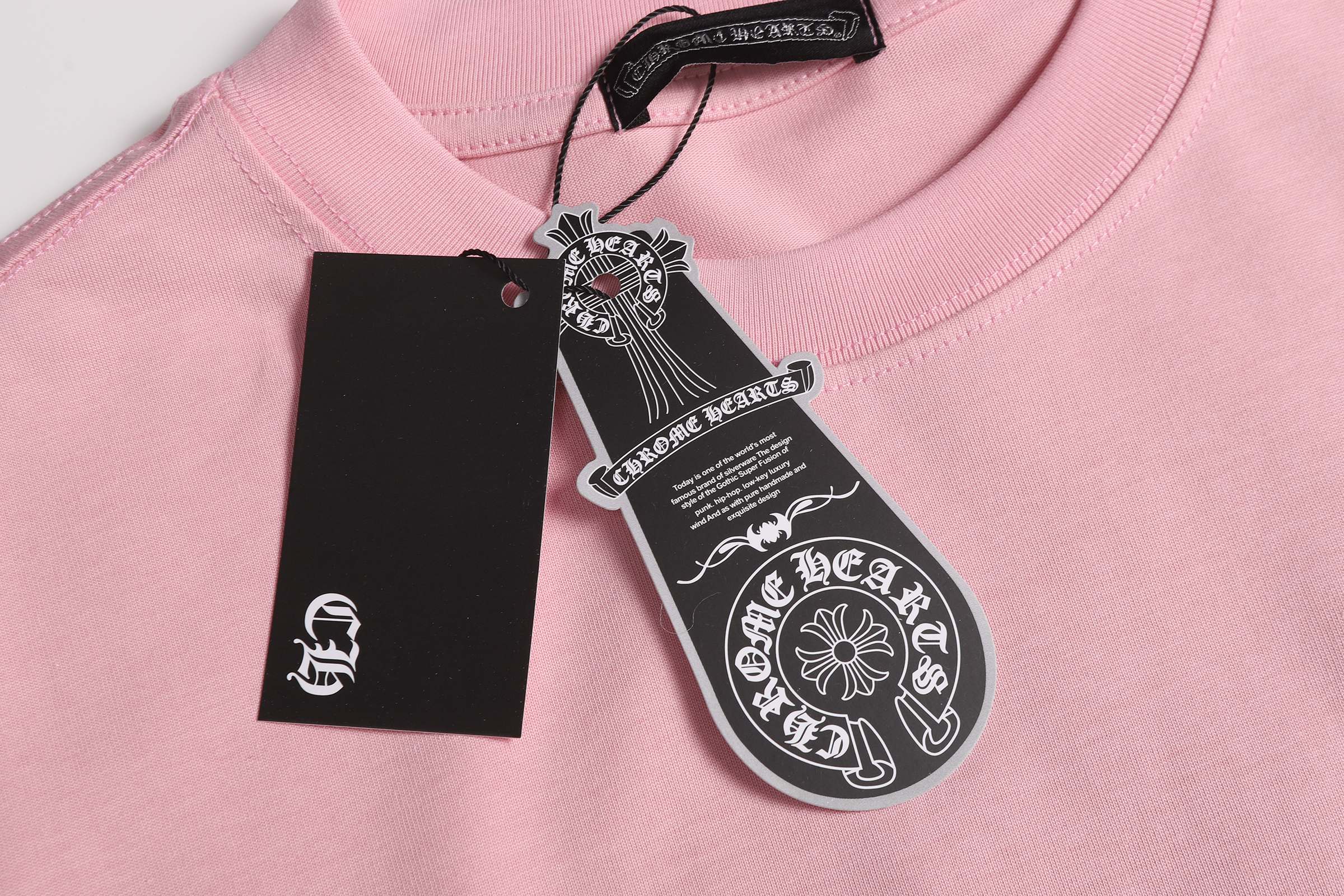 这款衣服是AAAAA 1:1 质量 (非常棒). 使用了和原版一模一样的材料. 商标部分也保持了和克罗心/Chrome Hearts一样. 图片拍摄是实物衣服拍摄, 您所收到的实物保证和我们图片一模一样.