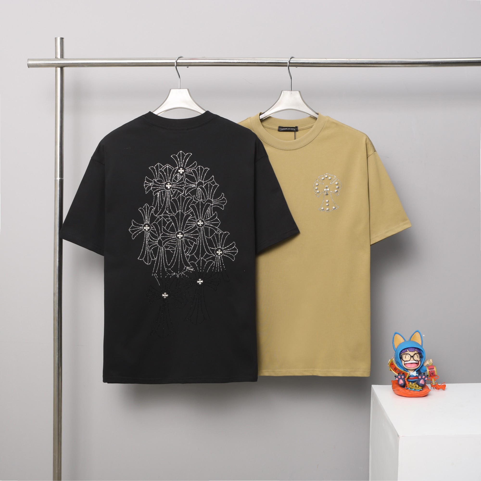 这款衣服是AAAAA 1:1 质量 (非常棒). 使用了和原版一模一样的材料. 商标部分也保持了和克罗心/Chrome Hearts一样. 图片拍摄是实物衣服拍摄, 您所收到的实物保证和我们图片一模一样.