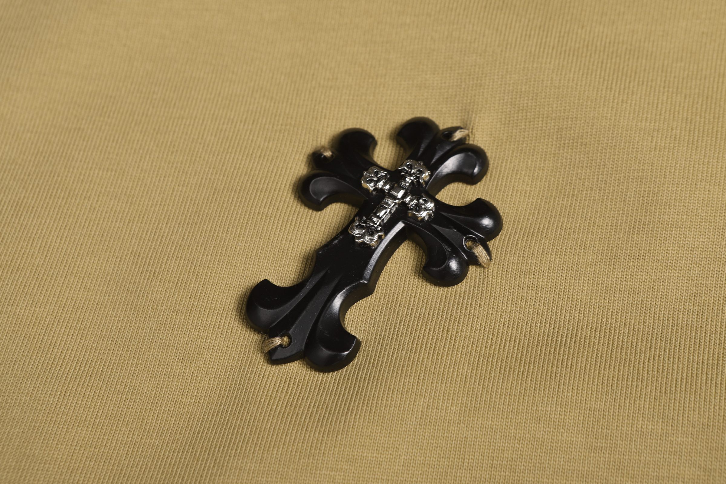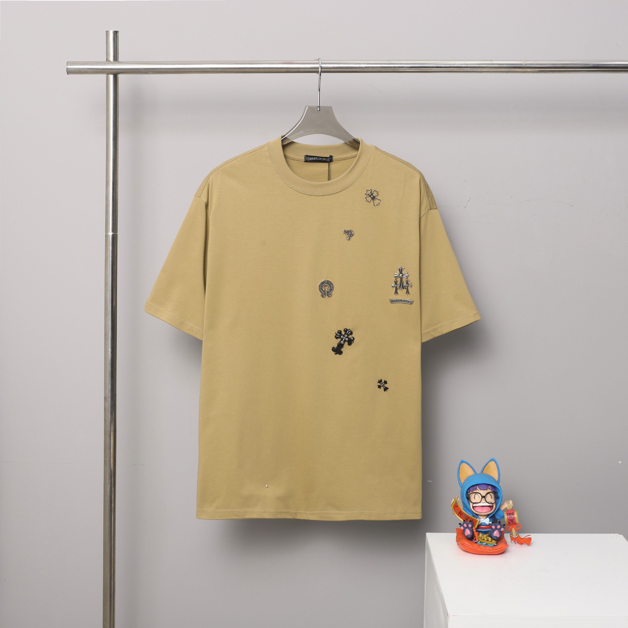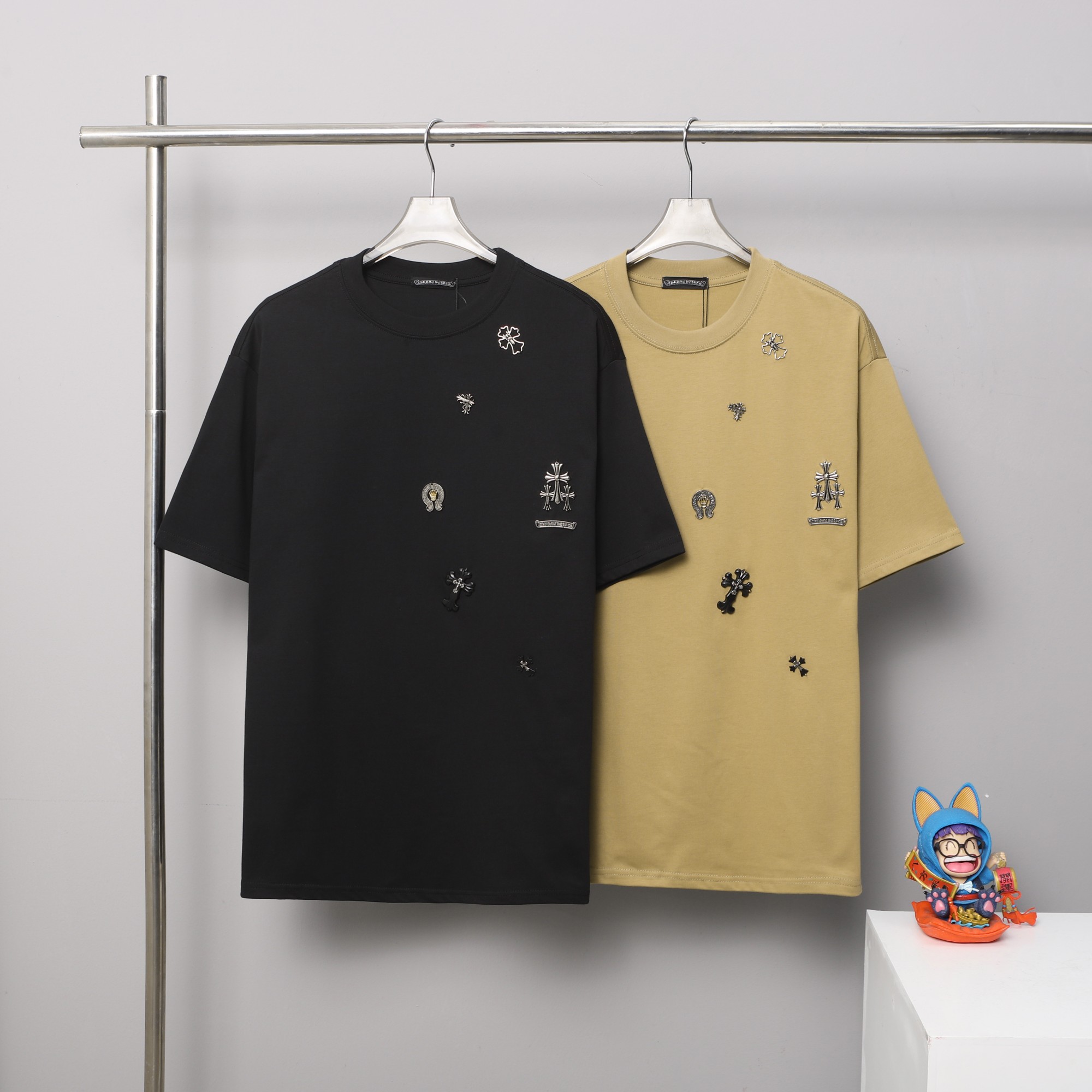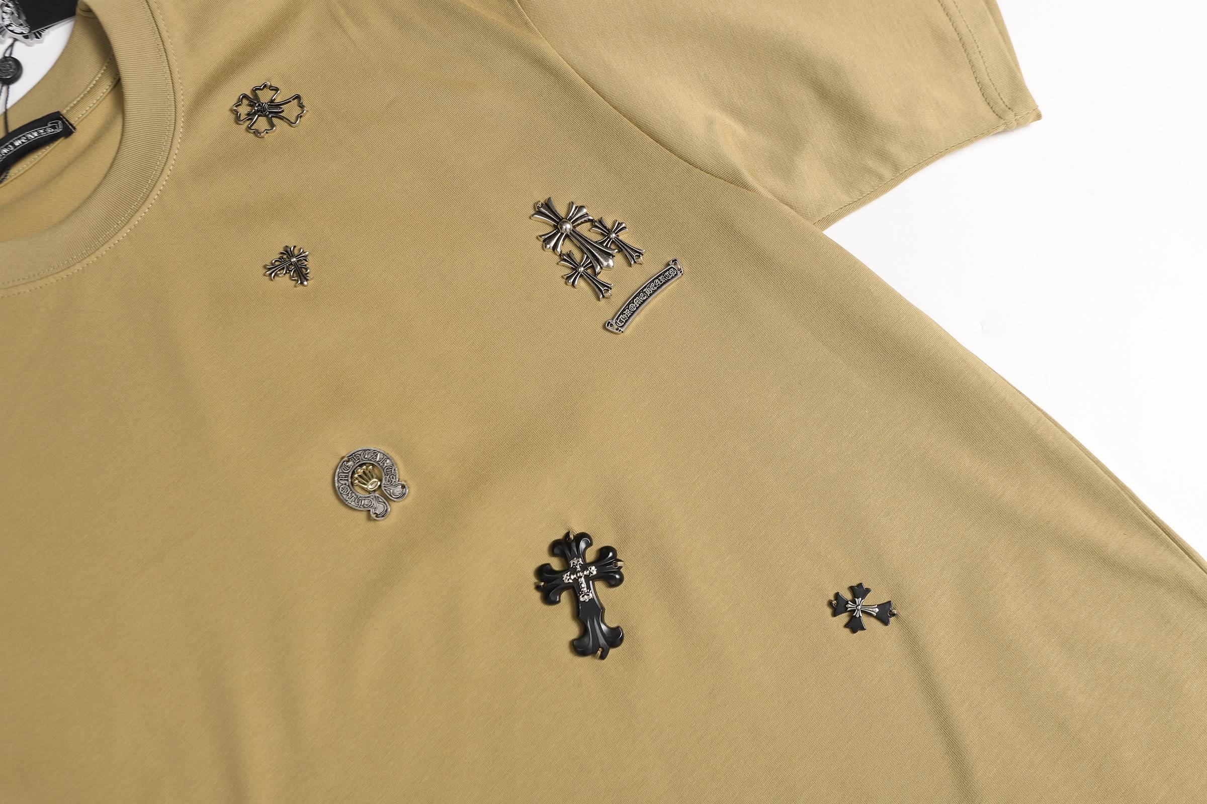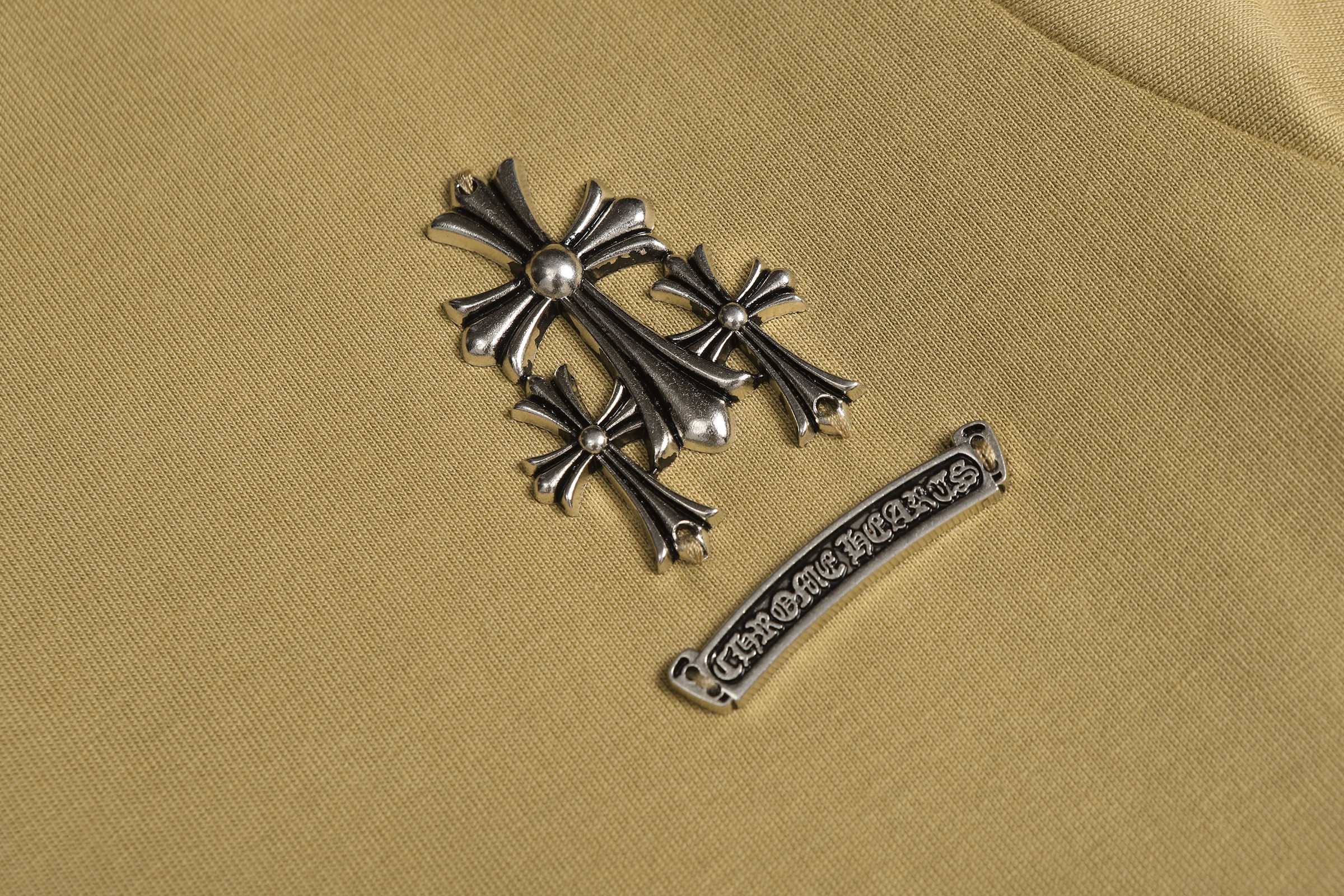 这款衣服是AAAAA 1:1 质量 (非常棒). 使用了和原版一模一样的材料. 商标部分也保持了和克罗心/Chrome Hearts一样. 图片拍摄是实物衣服拍摄, 您所收到的实物保证和我们图片一模一样.