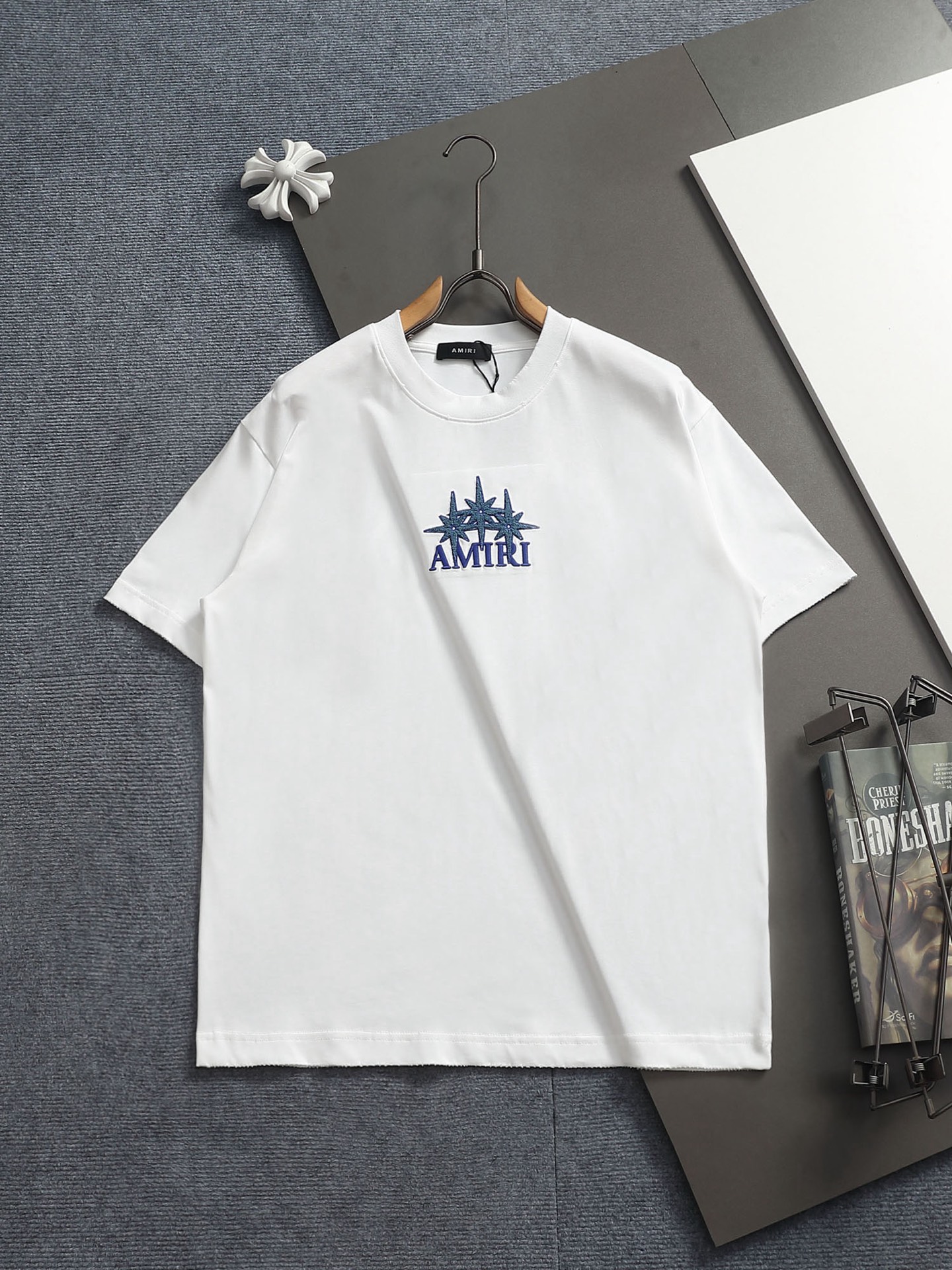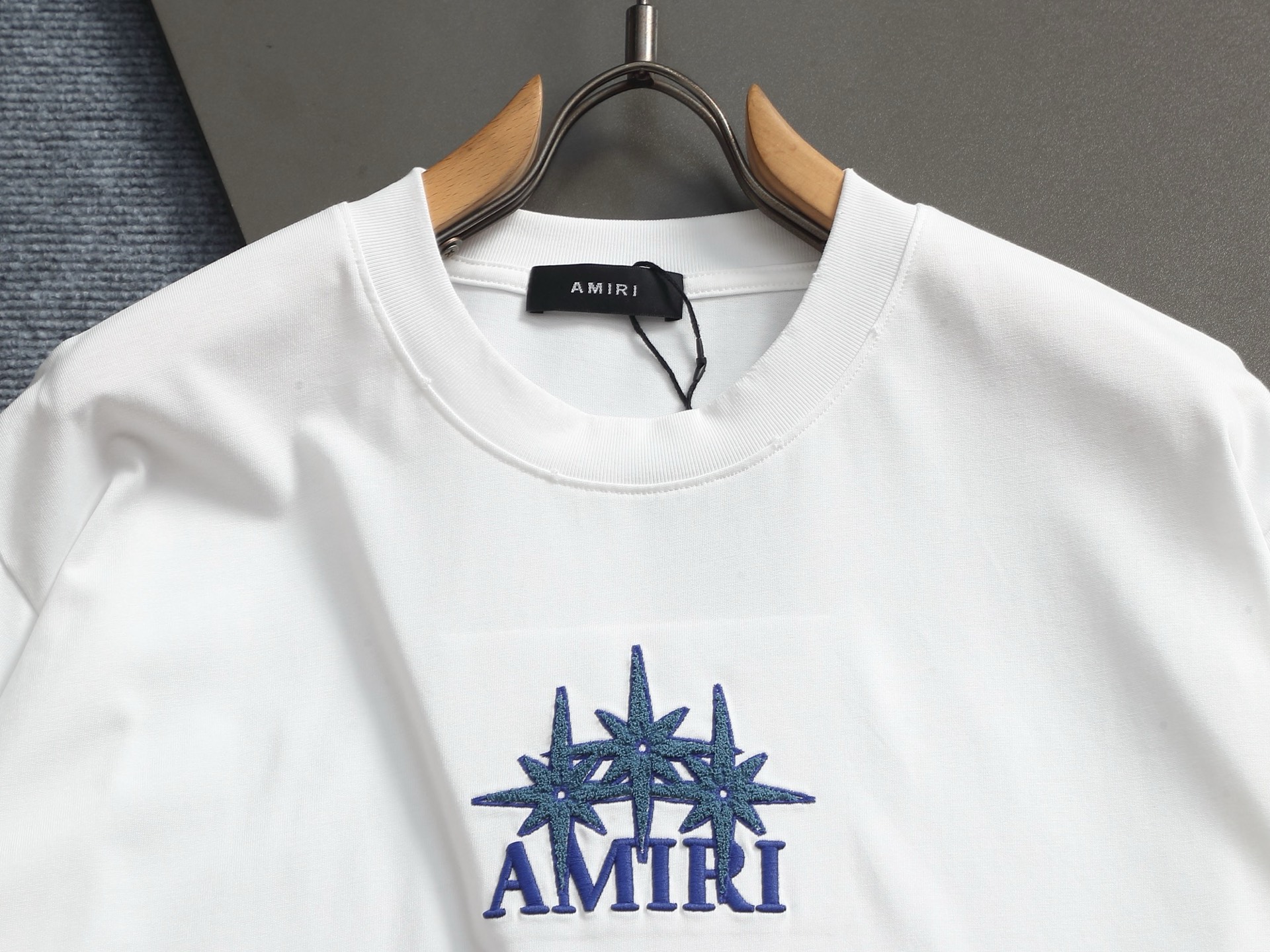 这款衣服是AAAAA 1:1 质量 (非常棒). 使用了和原版一模一样的材料. 商标部分也保持了和AMIRI一样. 图片拍摄是实物衣服拍摄, 您所收到的实物保证和我们图片一模一样.