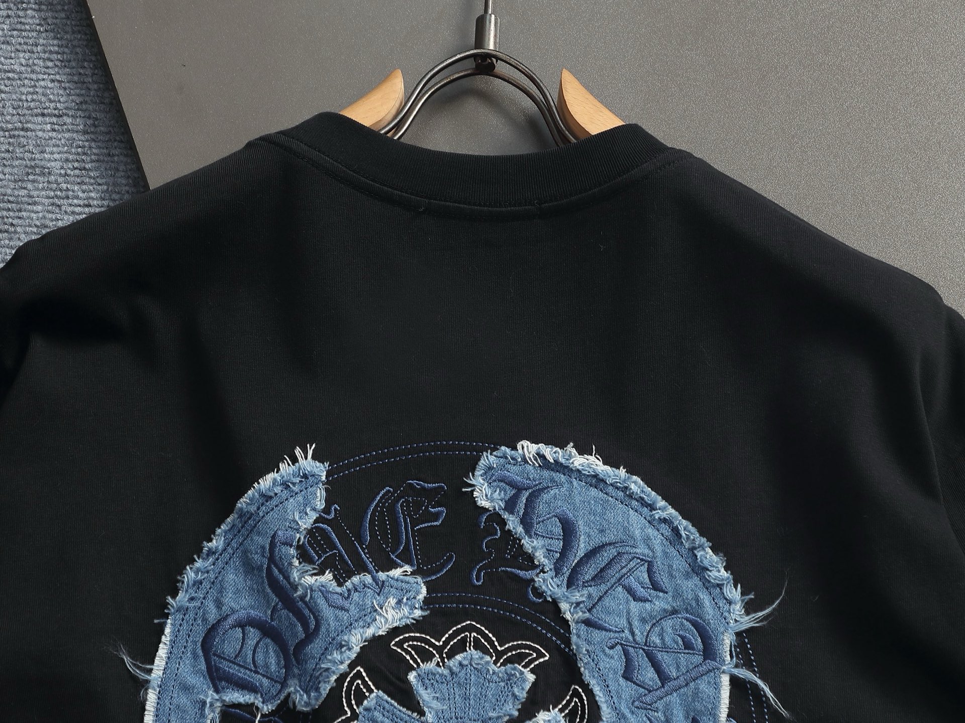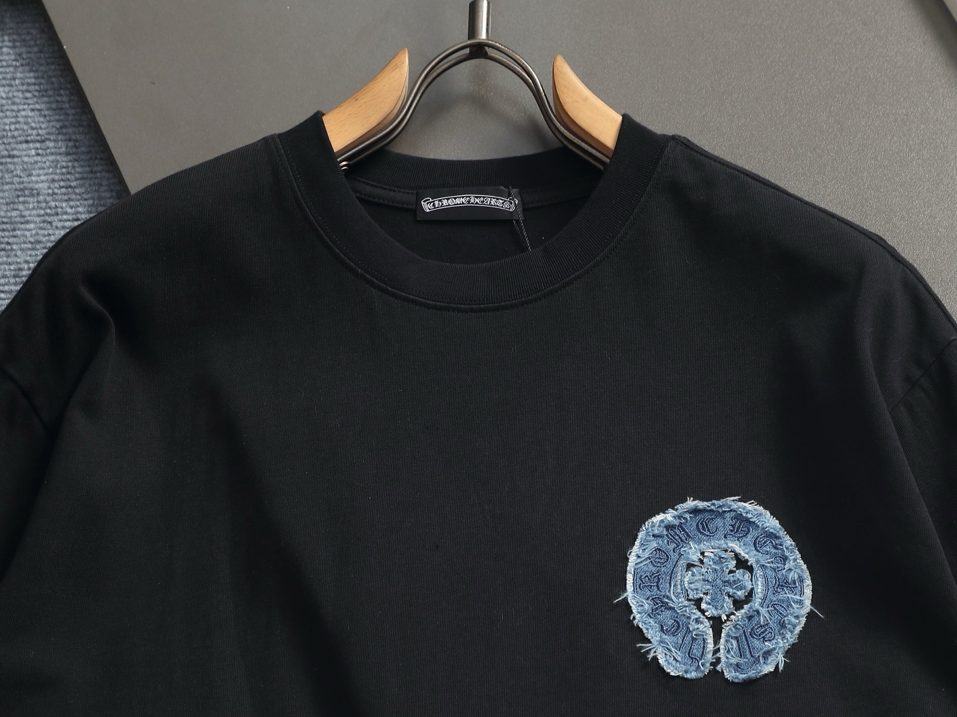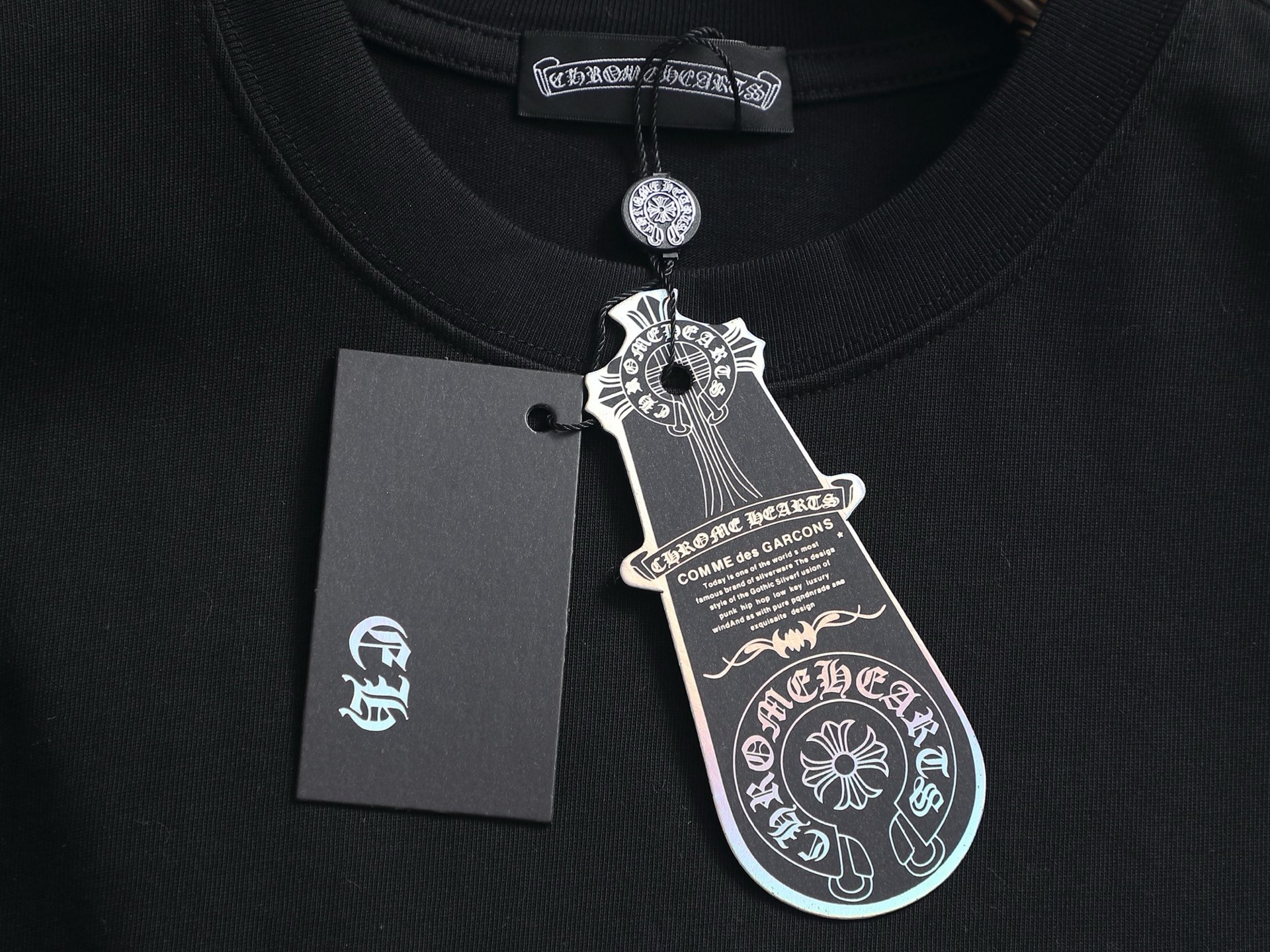 这款衣服是AAAAA 1:1 质量 (非常棒). 使用了和原版一模一样的材料. 商标部分也保持了和克罗心/Chrome Hearts一样. 图片拍摄是实物衣服拍摄, 您所收到的实物保证和我们图片一模一样.