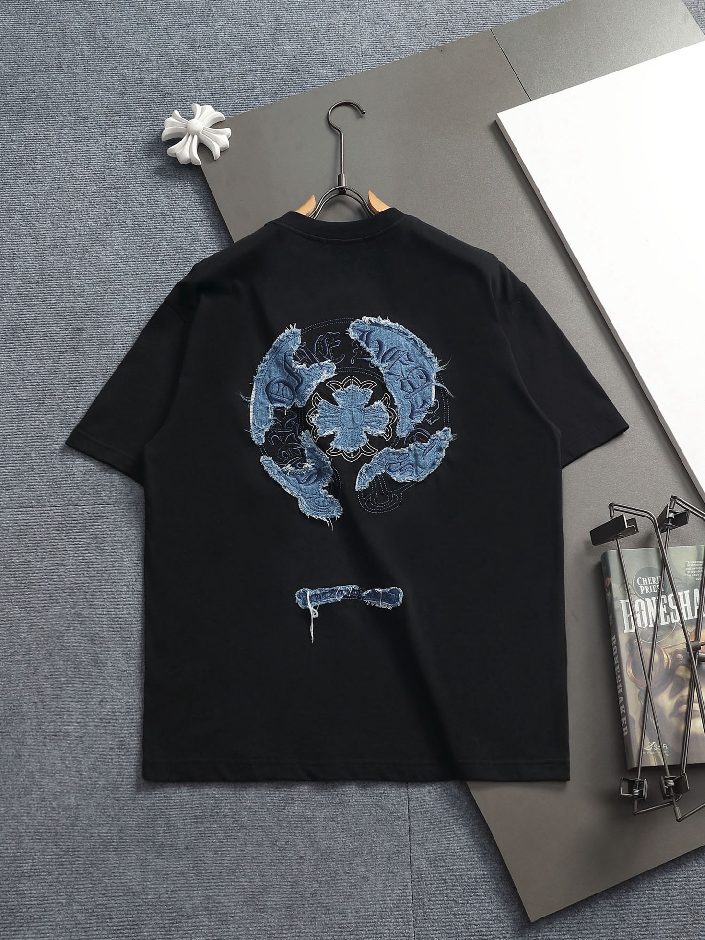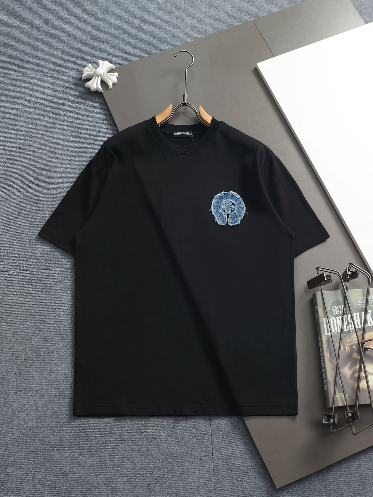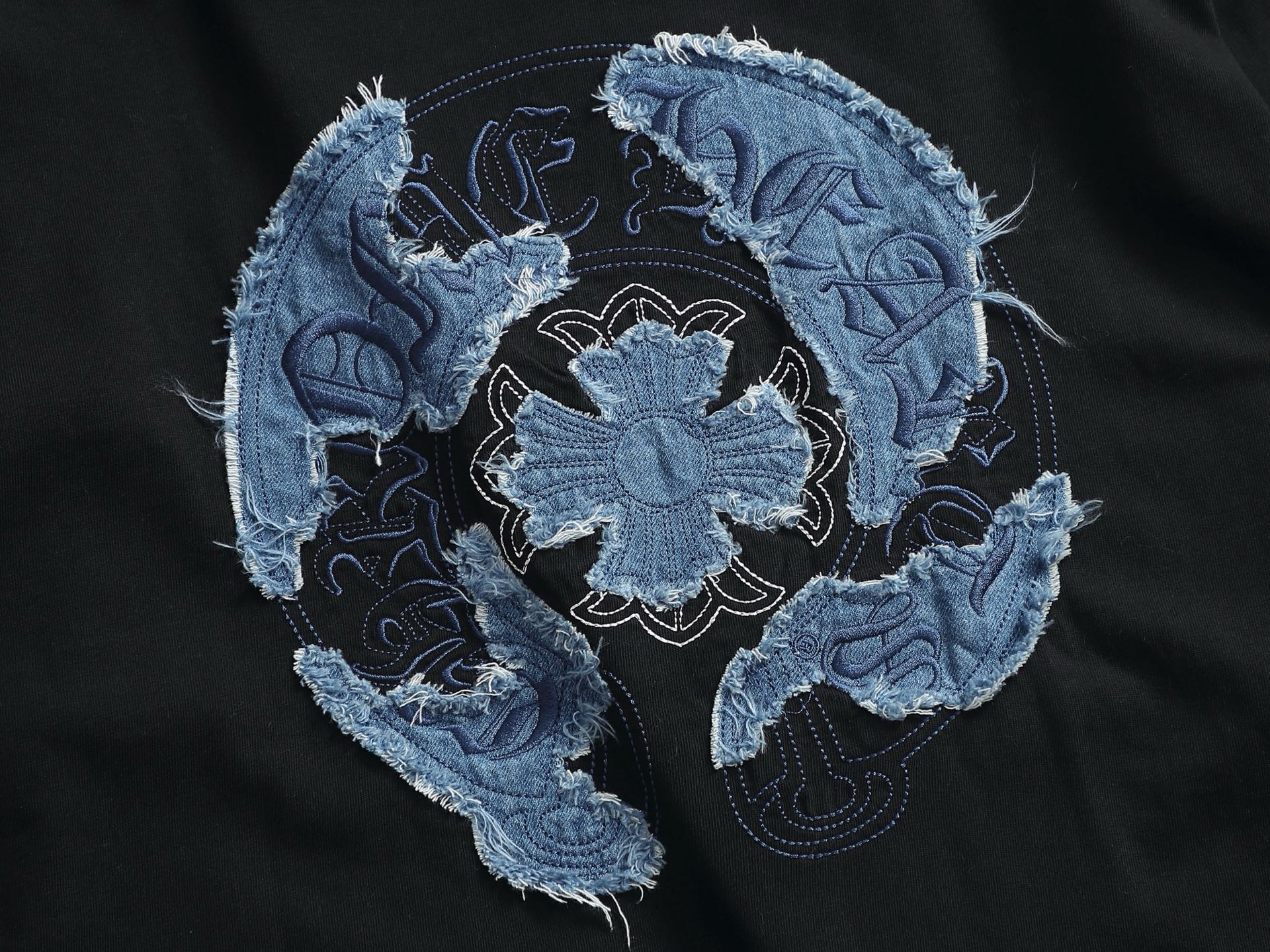 这款衣服是AAAAA 1:1 质量 (非常棒). 使用了和原版一模一样的材料. 商标部分也保持了和克罗心/Chrome Hearts一样. 图片拍摄是实物衣服拍摄, 您所收到的实物保证和我们图片一模一样.
