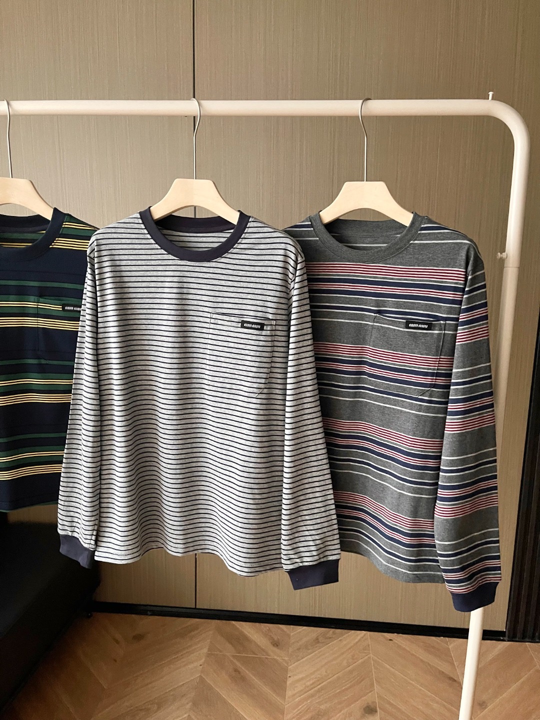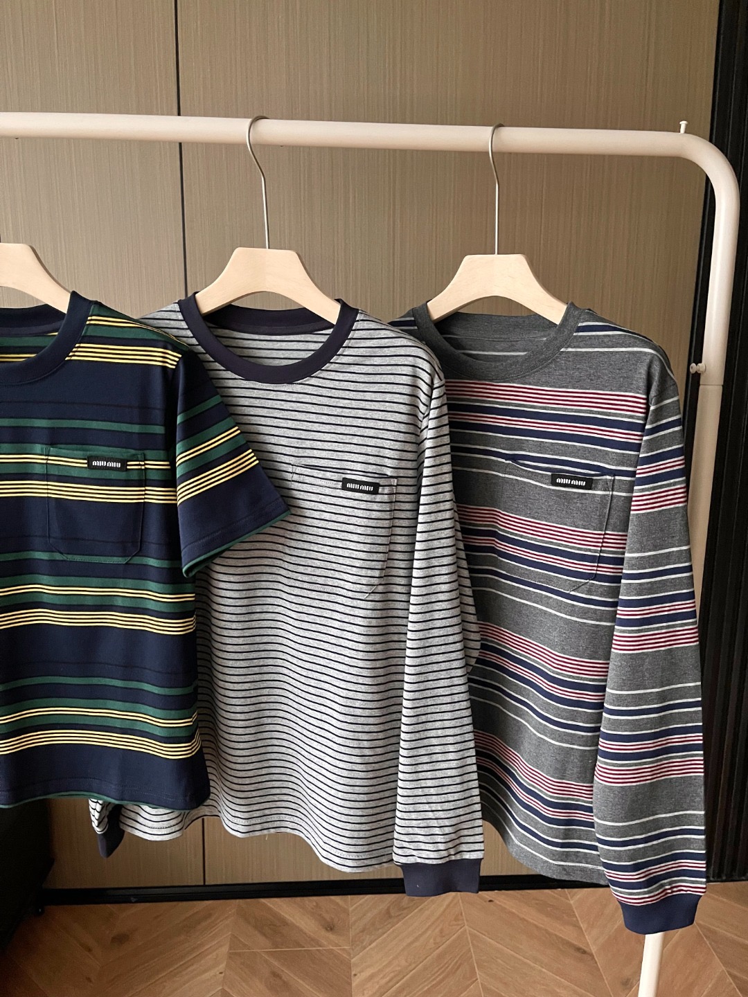 这款衣服是AAAAA 1:1 质量 (非常棒). 使用了和原版一模一样的材料. 商标部分也保持了和缪缪/Miu Miu一样. 图片拍摄是实物衣服拍摄, 您所收到的实物保证和我们图片一模一样.