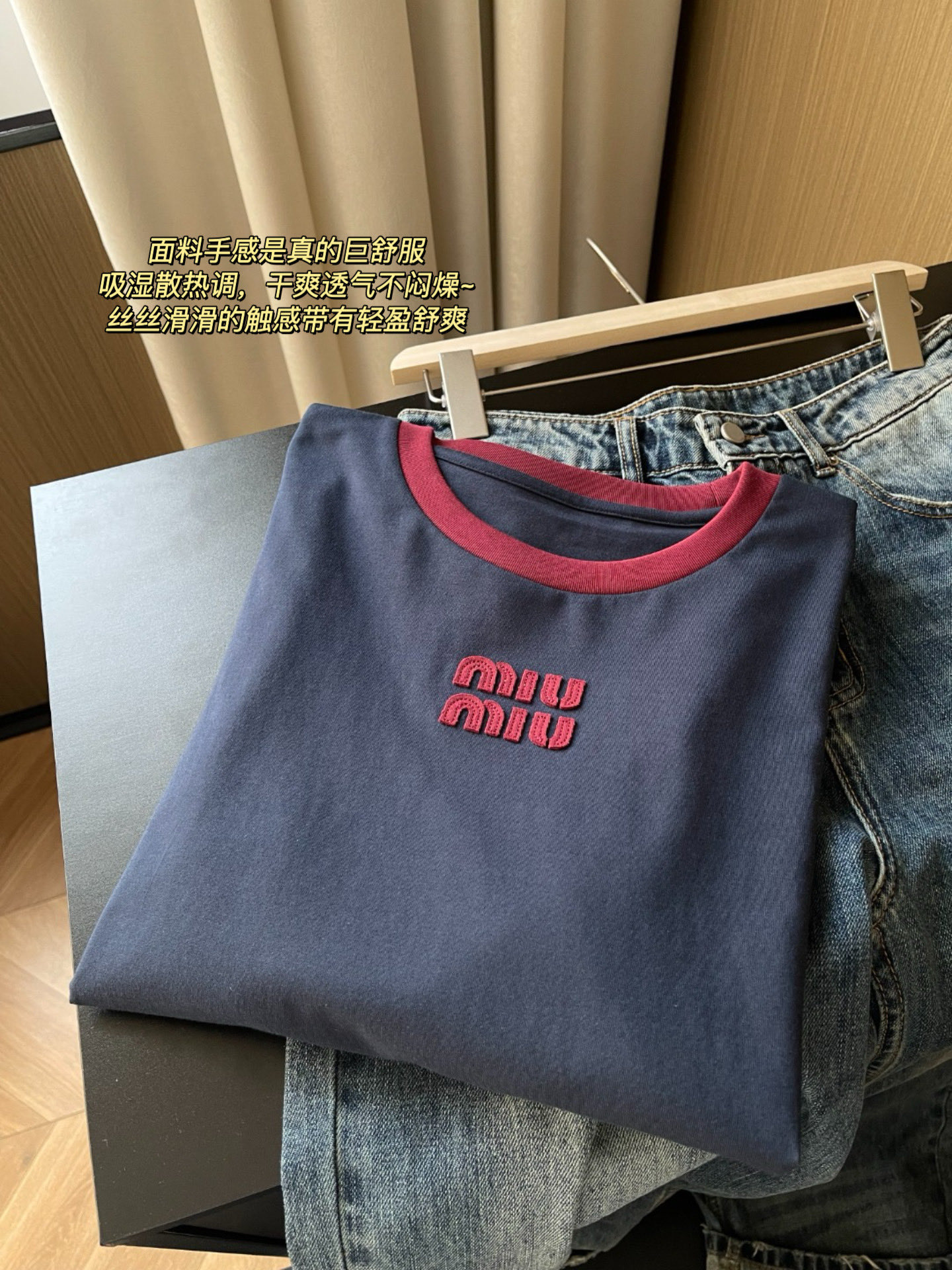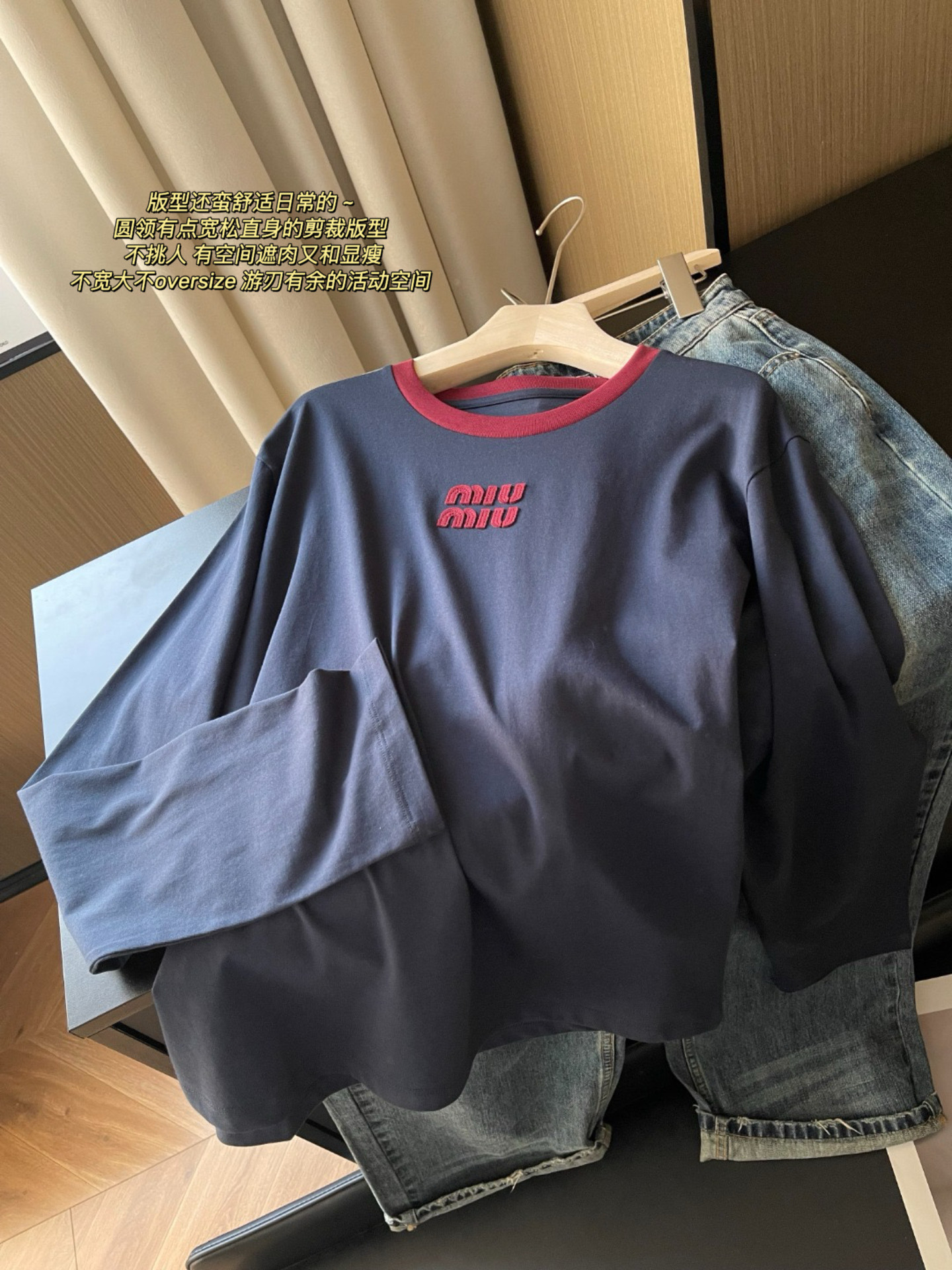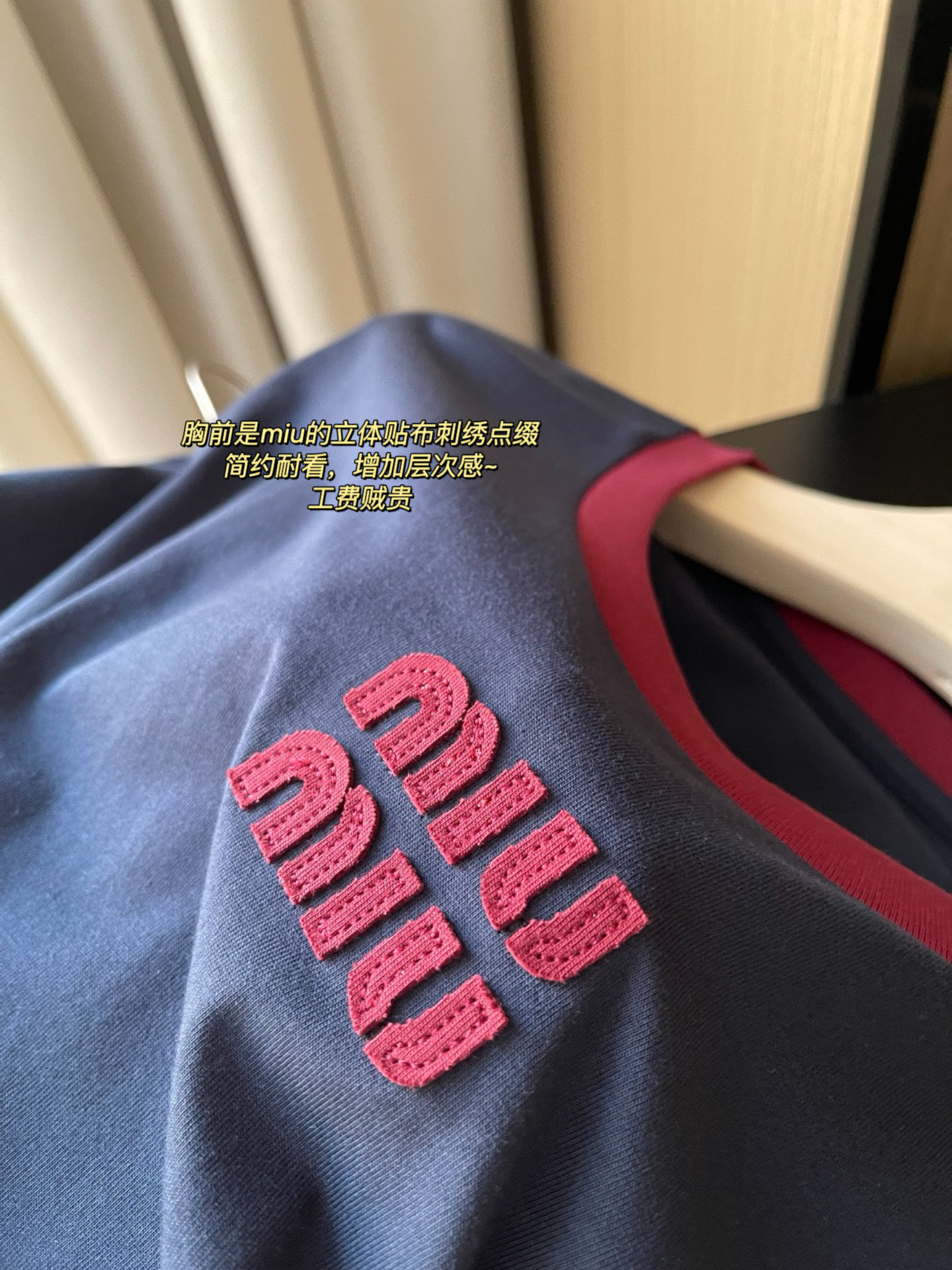 这款衣服是AAAAA 1:1 质量 (非常棒). 使用了和原版一模一样的材料. 商标部分也保持了和缪缪/Miu Miu一样. 图片拍摄是实物衣服拍摄, 您所收到的实物保证和我们图片一模一样.