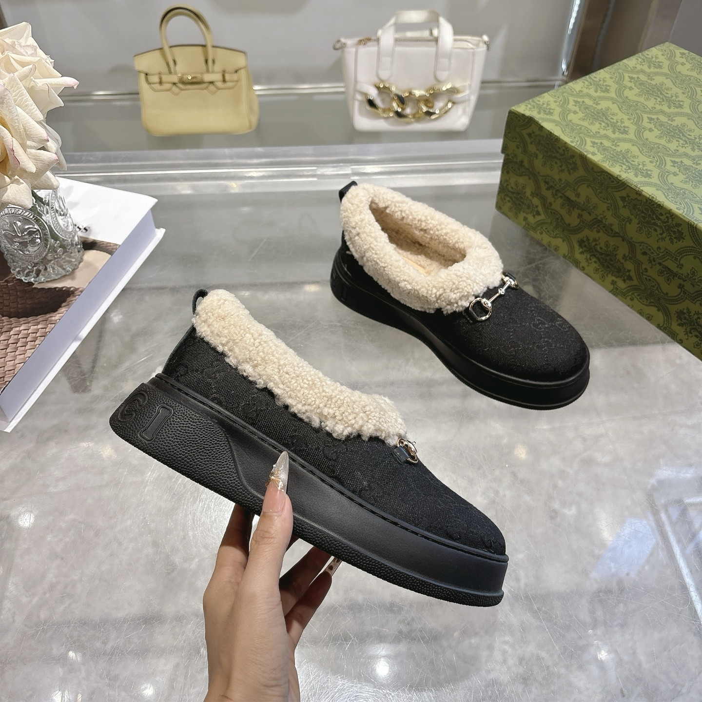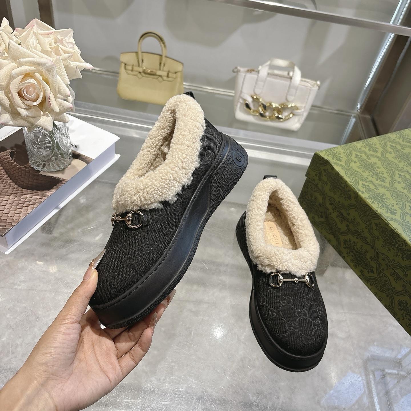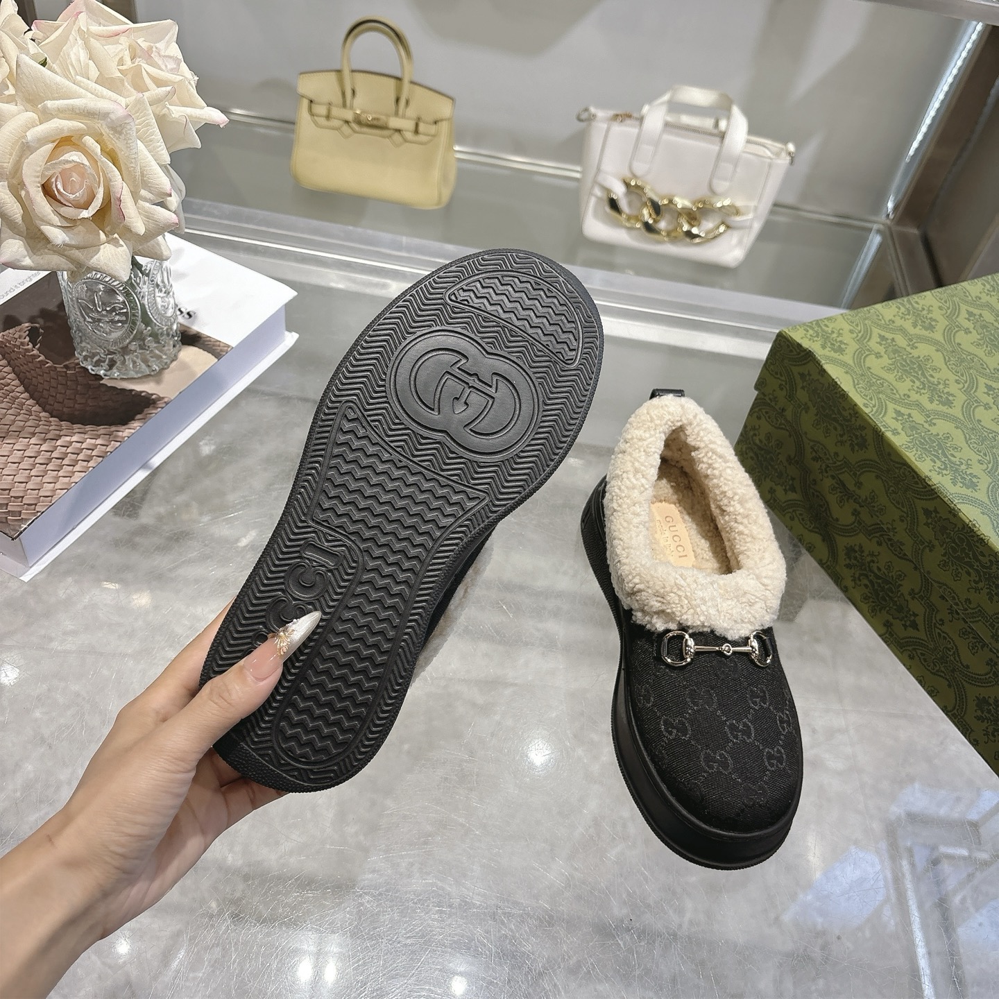 这款鞋子是AAAAA 1:1 质量 (非常棒). 使用了和原版一模一样的材料. 商标部分也保持了和古奇/Gucci一样. 图片拍摄是实物鞋子拍摄, 您所收到的实物保证和我们图片一模一样.