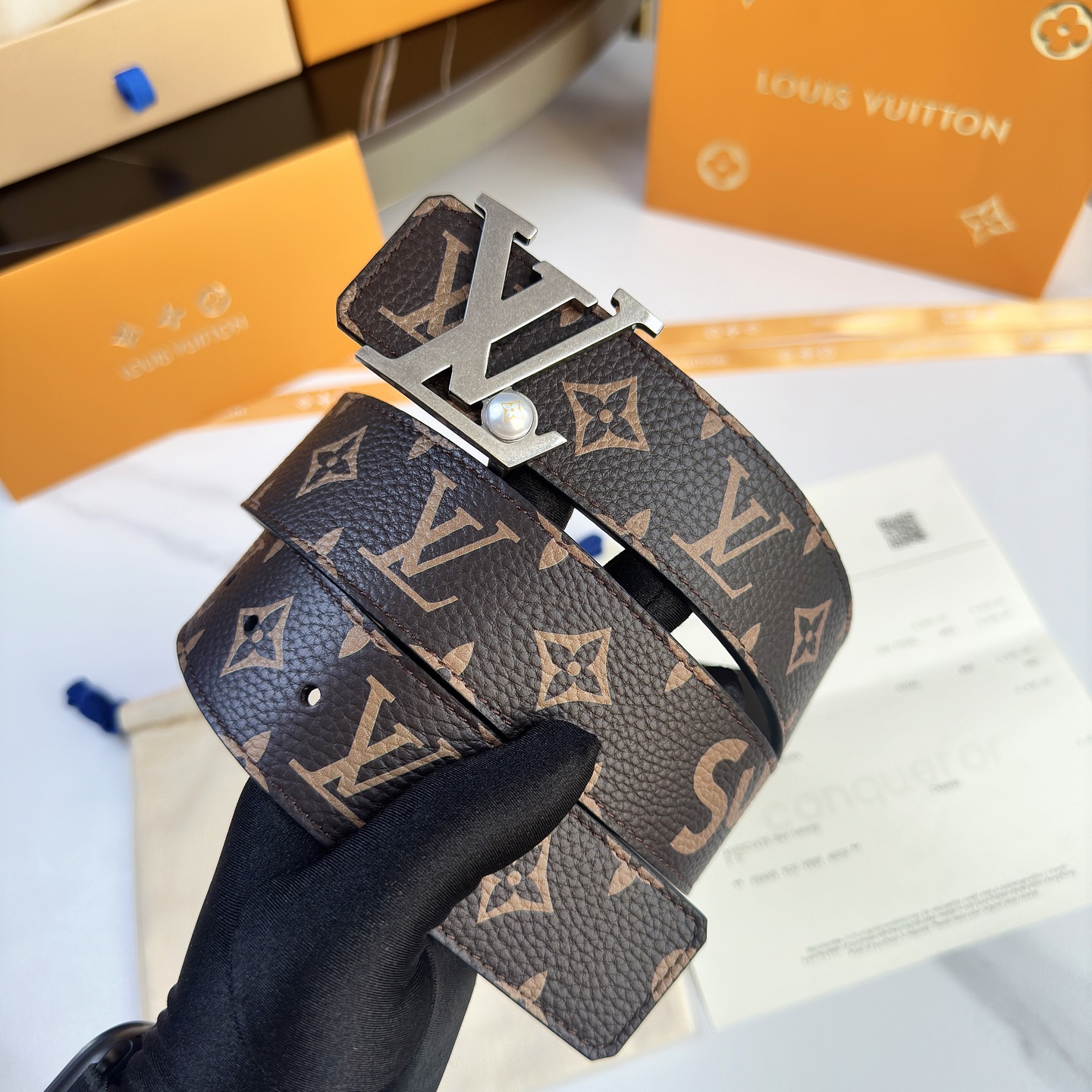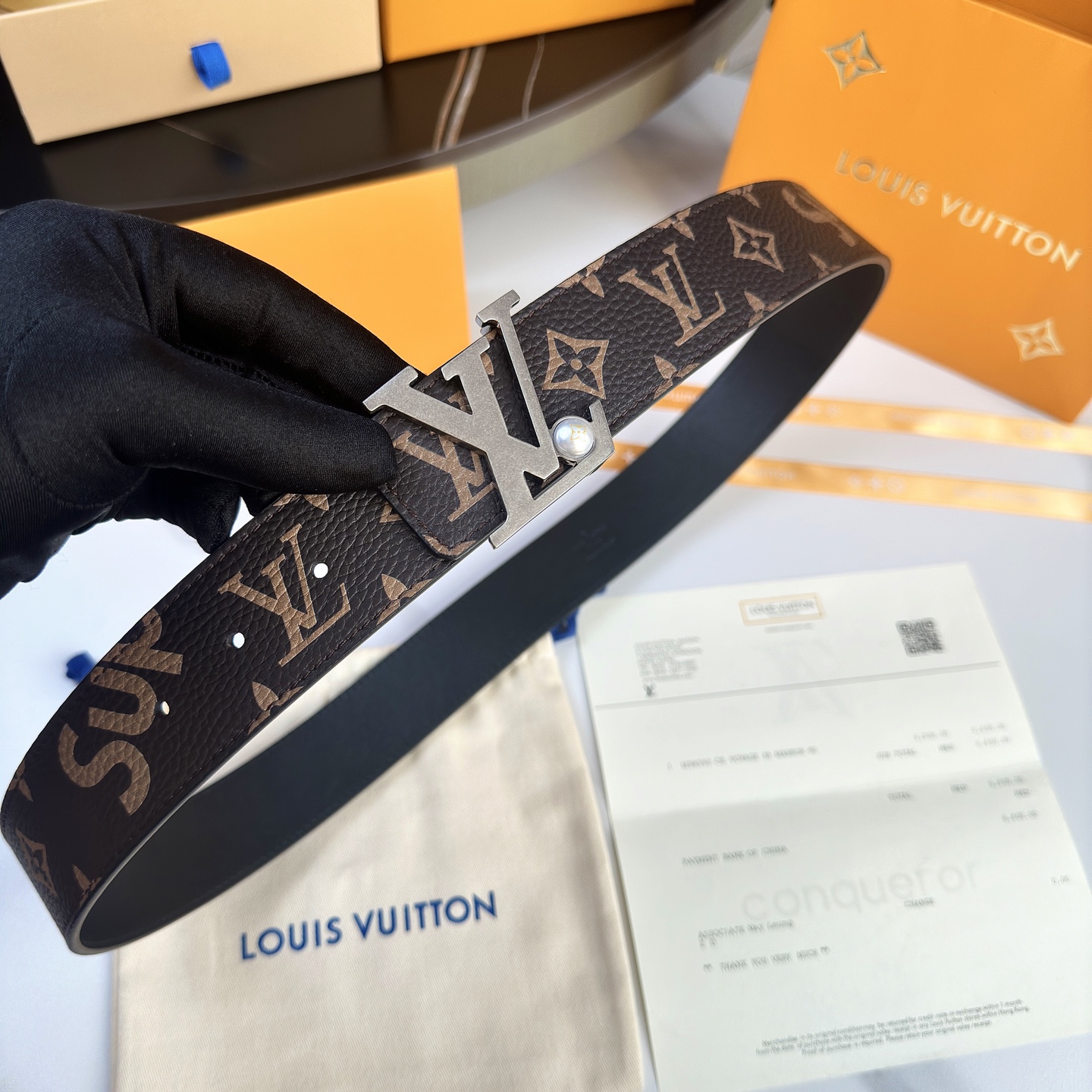 这款皮带是AAAAA 1:1 质量 (非常棒). 使用了和原版一模一样的材料. 商标部分也保持了和一样. 图片拍摄是实物皮带拍摄, 您所收到的实物保证和我们图片一模一样.