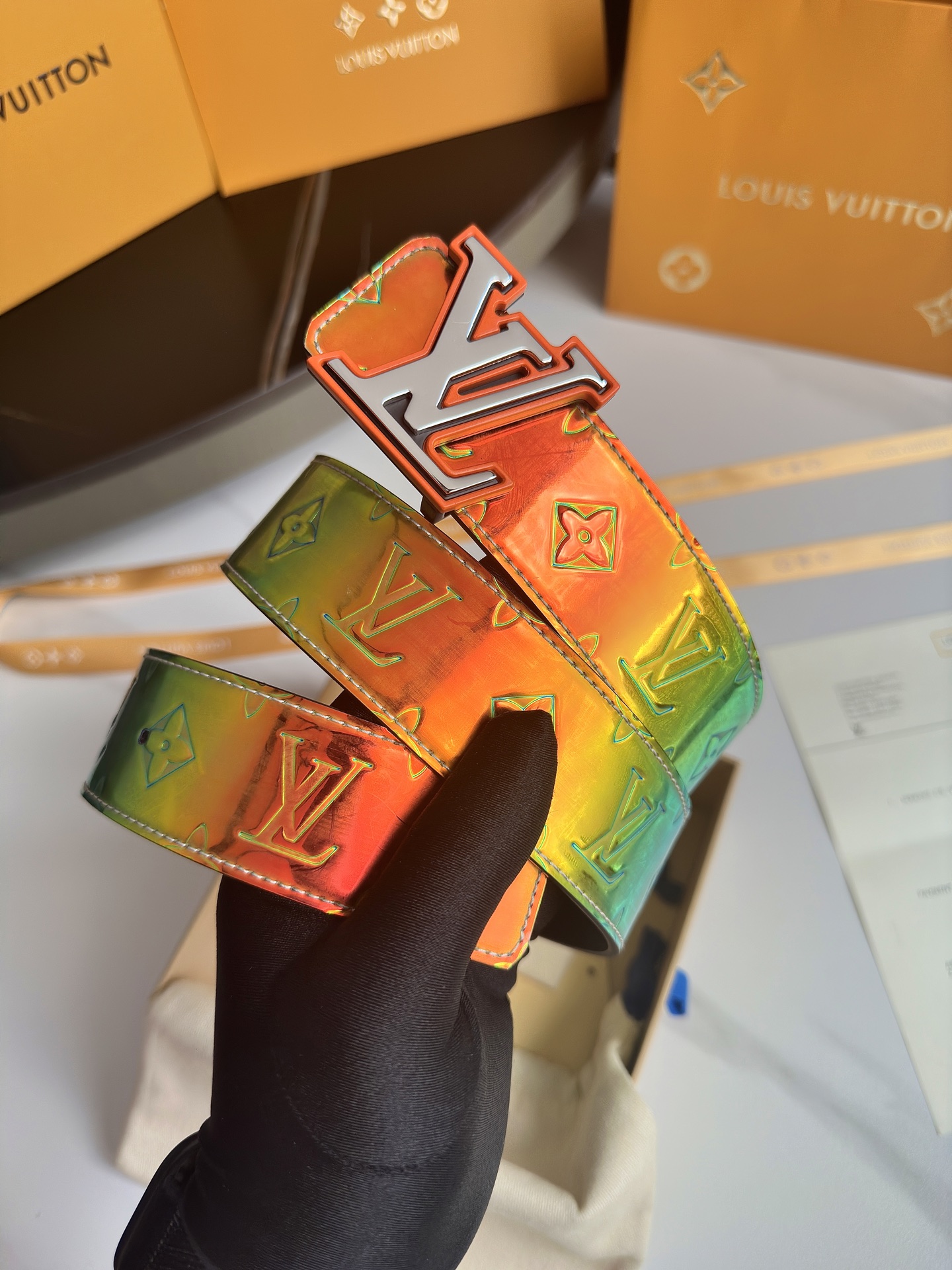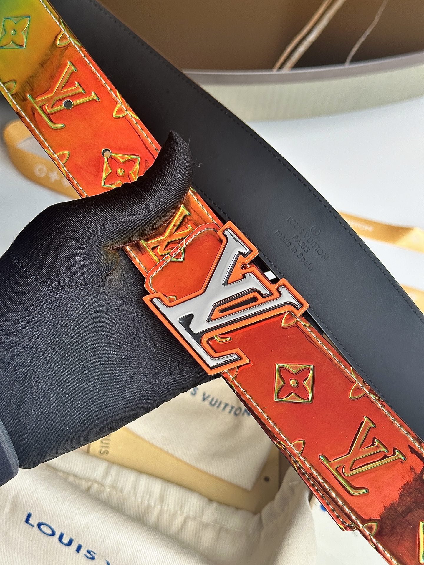 这款皮带是AAAAA 1:1 质量 (非常棒). 使用了和原版一模一样的材料. 商标部分也保持了和一样. 图片拍摄是实物皮带拍摄, 您所收到的实物保证和我们图片一模一样.