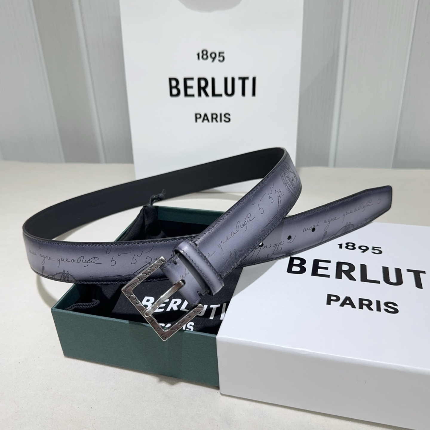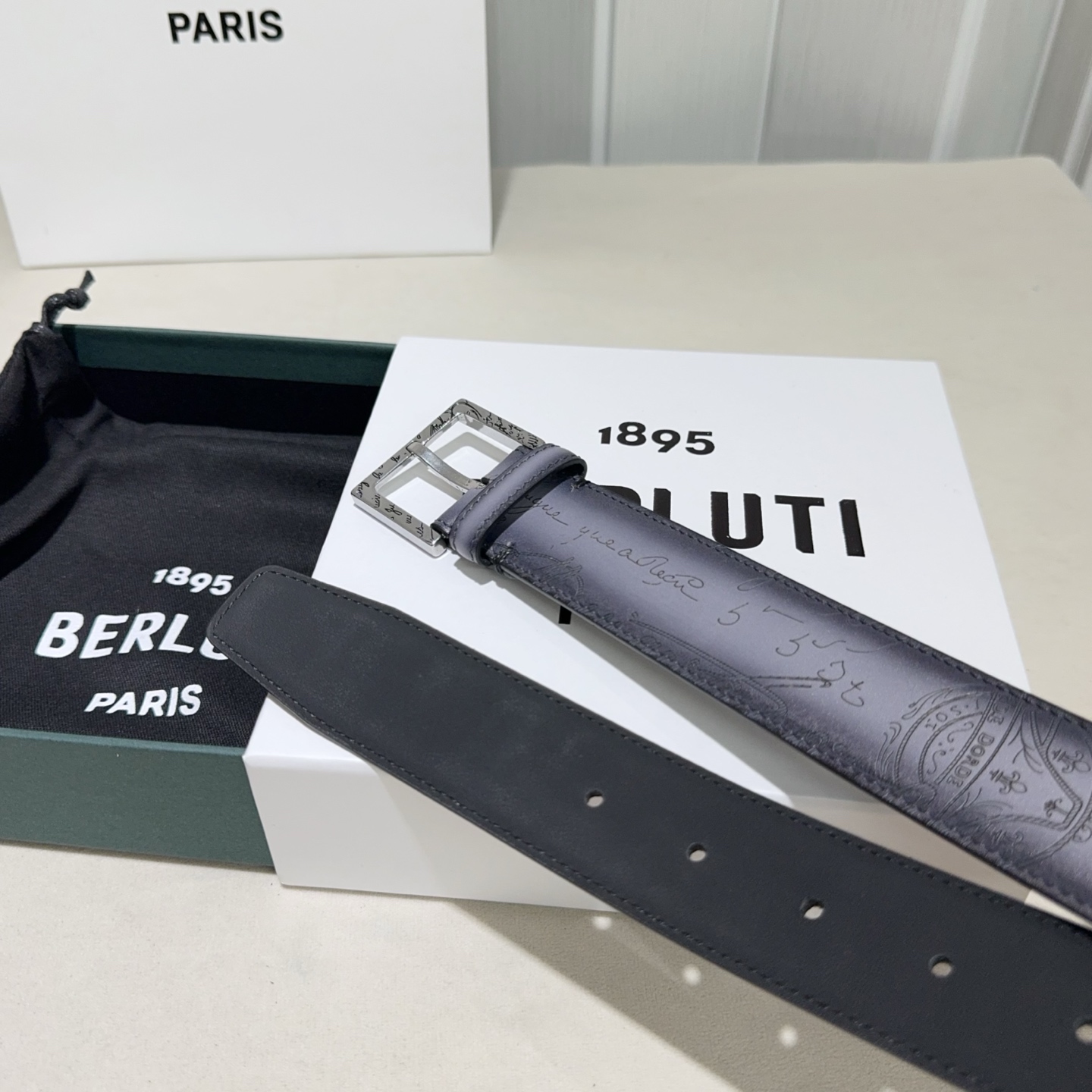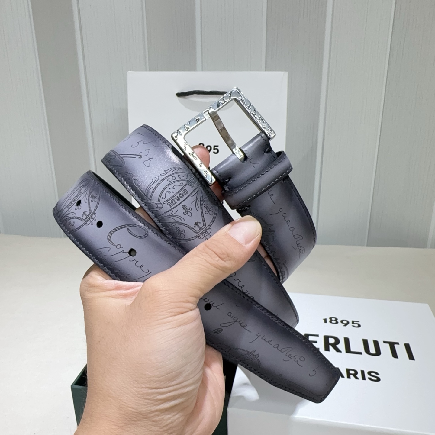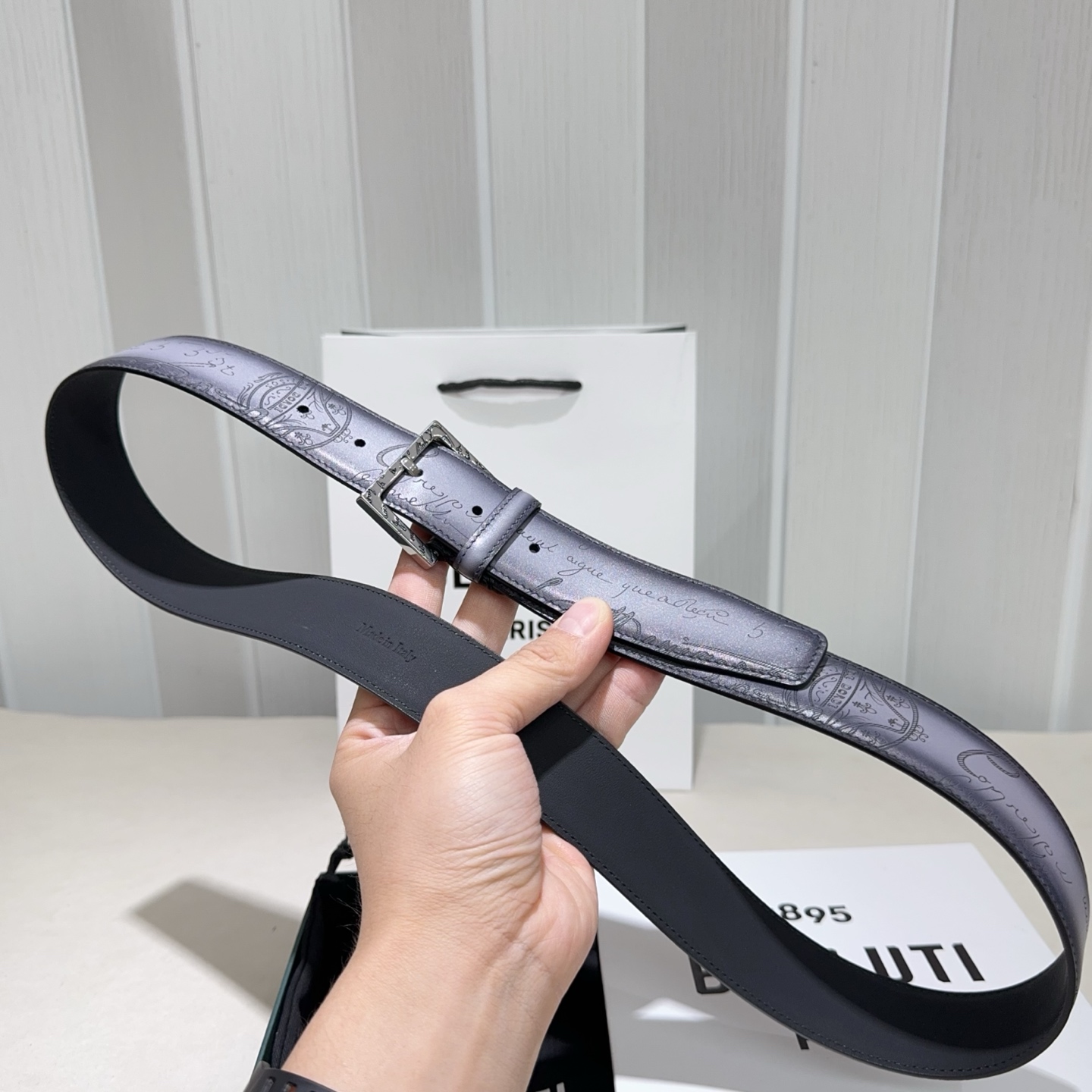 这款皮带是AAAAA 1:1 质量 (非常棒). 使用了和原版一模一样的材料. 商标部分也保持了和Berluti一样. 图片拍摄是实物皮带拍摄, 您所收到的实物保证和我们图片一模一样.
