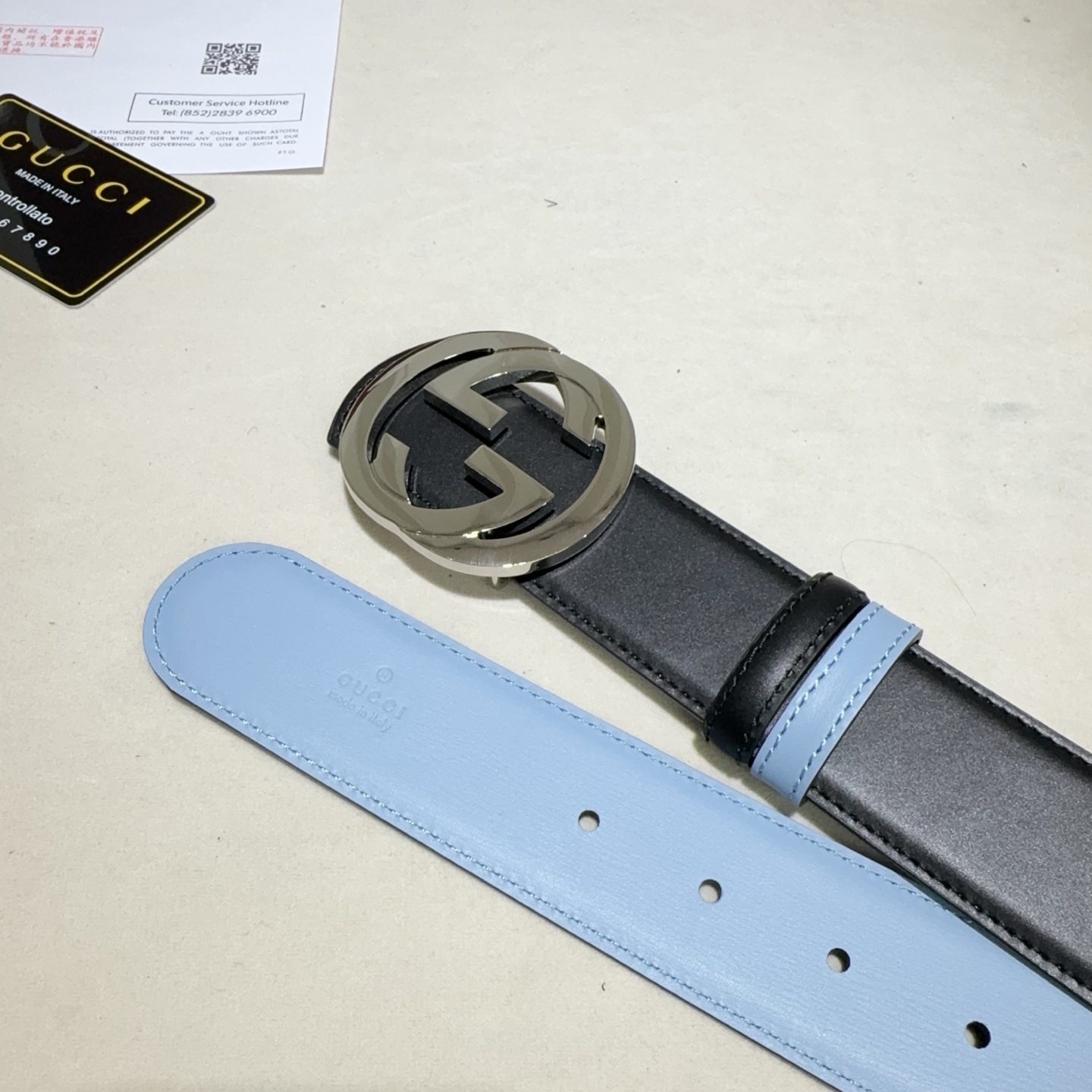 这款皮带是AAAAA 1:1 质量 (非常棒). 使用了和原版一模一样的材料. 商标部分也保持了和古奇/Gucci一样. 图片拍摄是实物皮带拍摄, 您所收到的实物保证和我们图片一模一样.