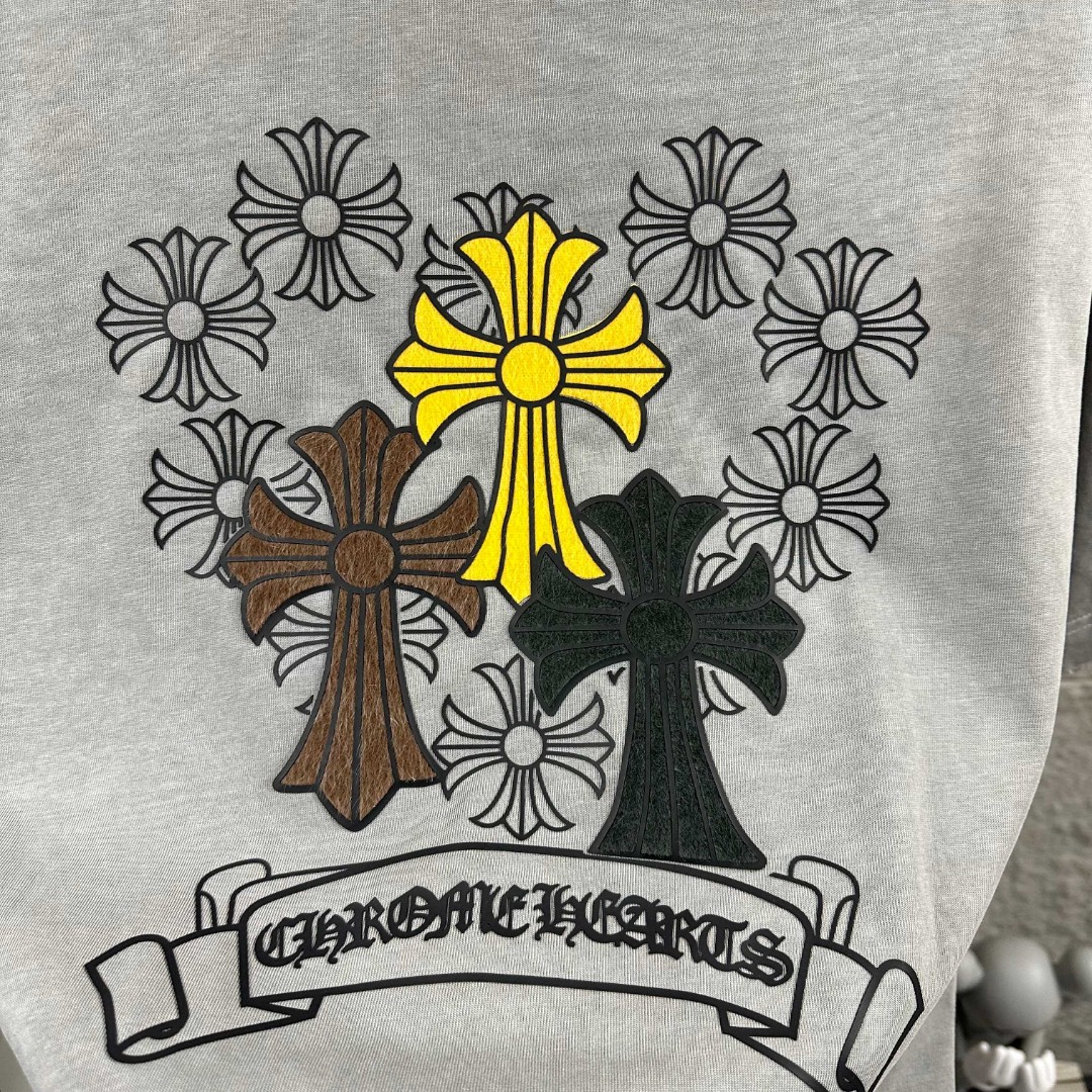 这款衣服是AAAAA 1:1 质量 (非常棒). 使用了和原版一模一样的材料. 商标部分也保持了和克罗心/Chrome Hearts一样. 图片拍摄是实物衣服拍摄, 您所收到的实物保证和我们图片一模一样.