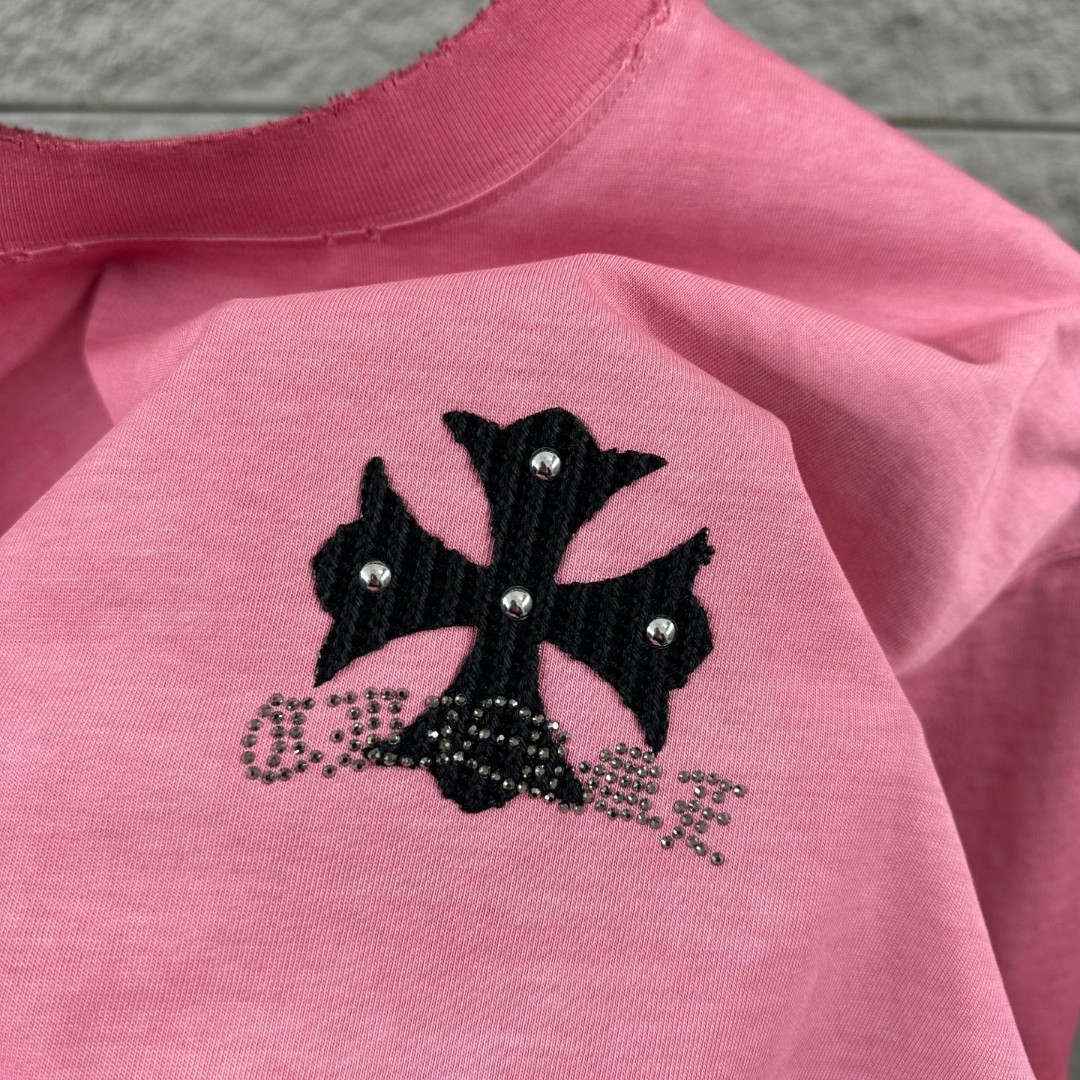 这款衣服是AAAAA 1:1 质量 (非常棒). 使用了和原版一模一样的材料. 商标部分也保持了和克罗心/Chrome Hearts一样. 图片拍摄是实物衣服拍摄, 您所收到的实物保证和我们图片一模一样.