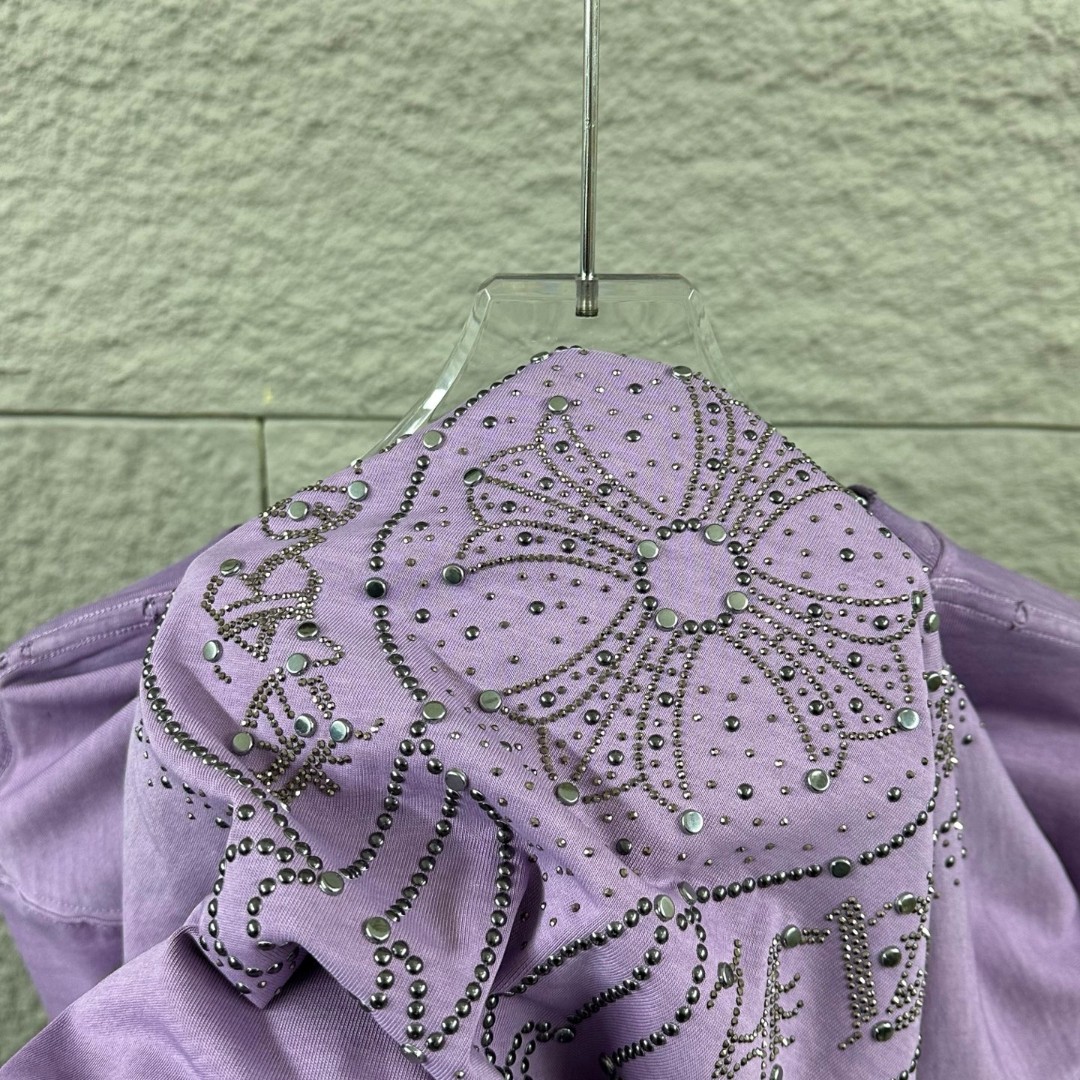 这款衣服是AAAAA 1:1 质量 (非常棒). 使用了和原版一模一样的材料. 商标部分也保持了和克罗心/Chrome Hearts一样. 图片拍摄是实物衣服拍摄, 您所收到的实物保证和我们图片一模一样.