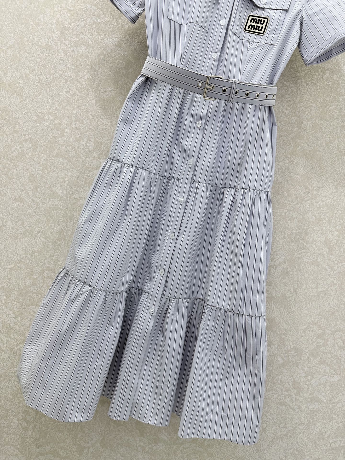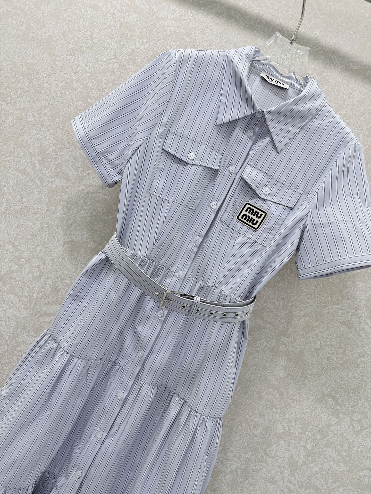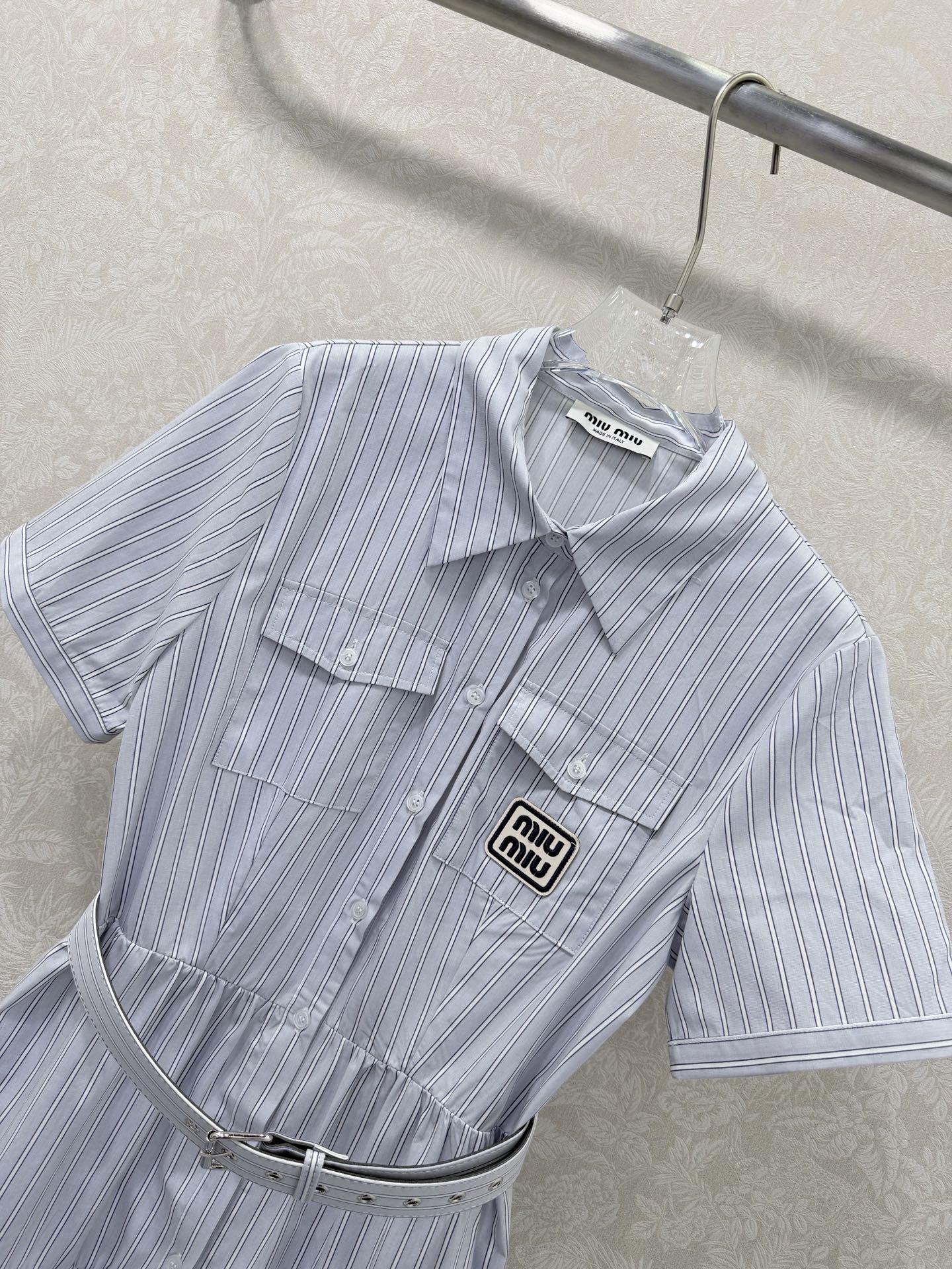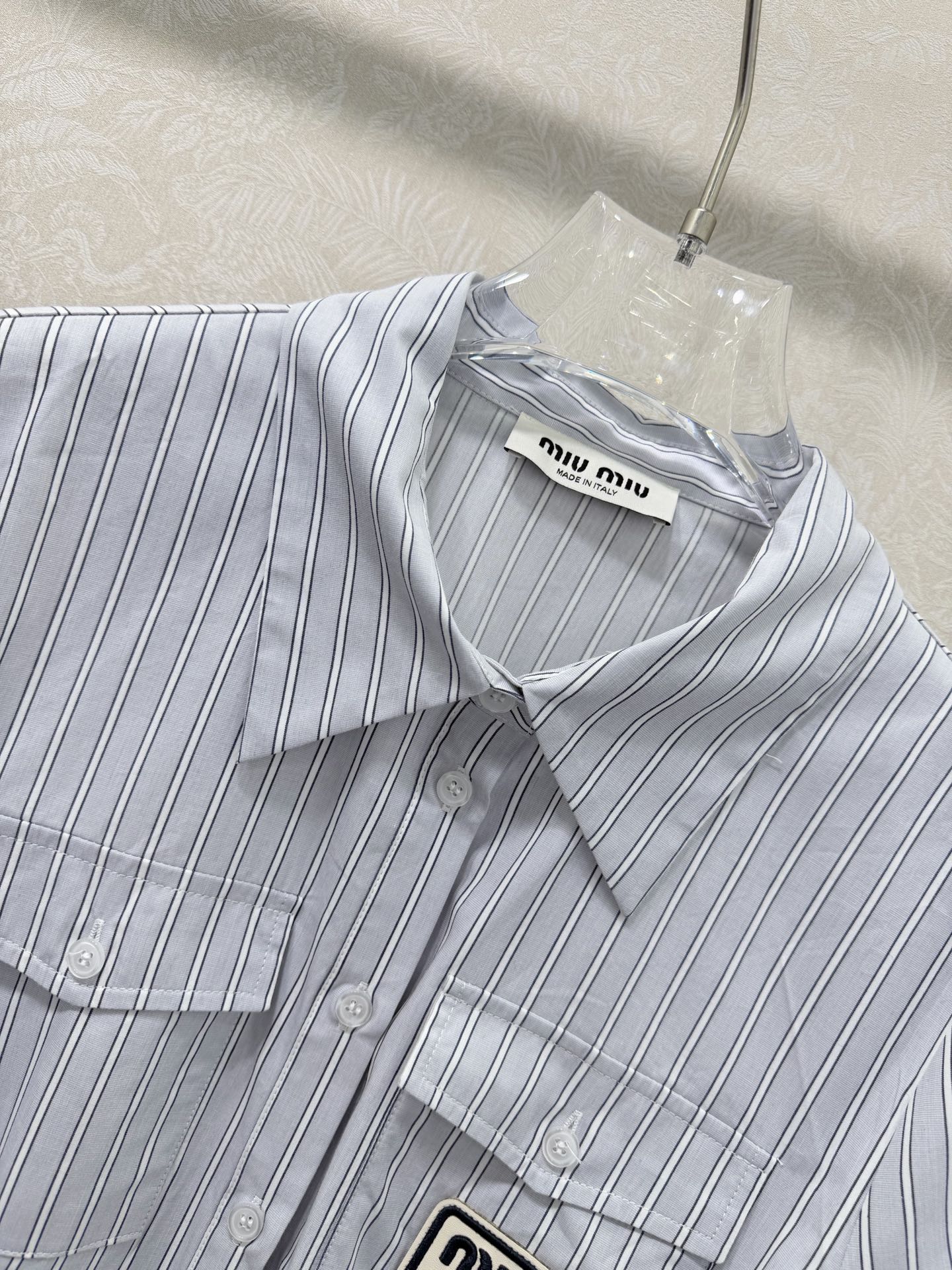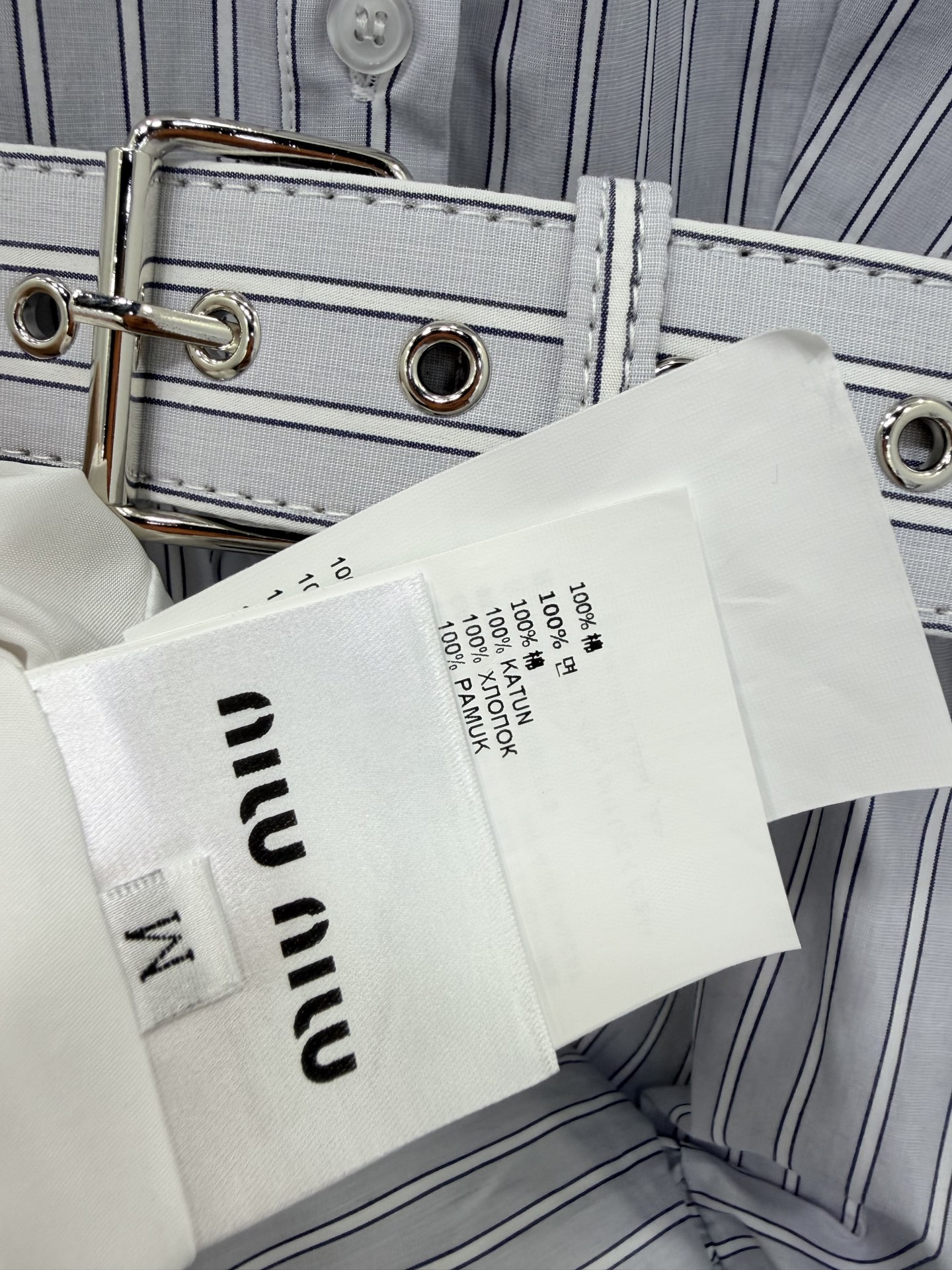这款衣服是AAAAA 1:1 质量 (非常棒). 使用了和原版一模一样的材料. 商标部分也保持了和缪缪/Miu Miu一样. 图片拍摄是实物衣服拍摄, 您所收到的实物保证和我们图片一模一样.