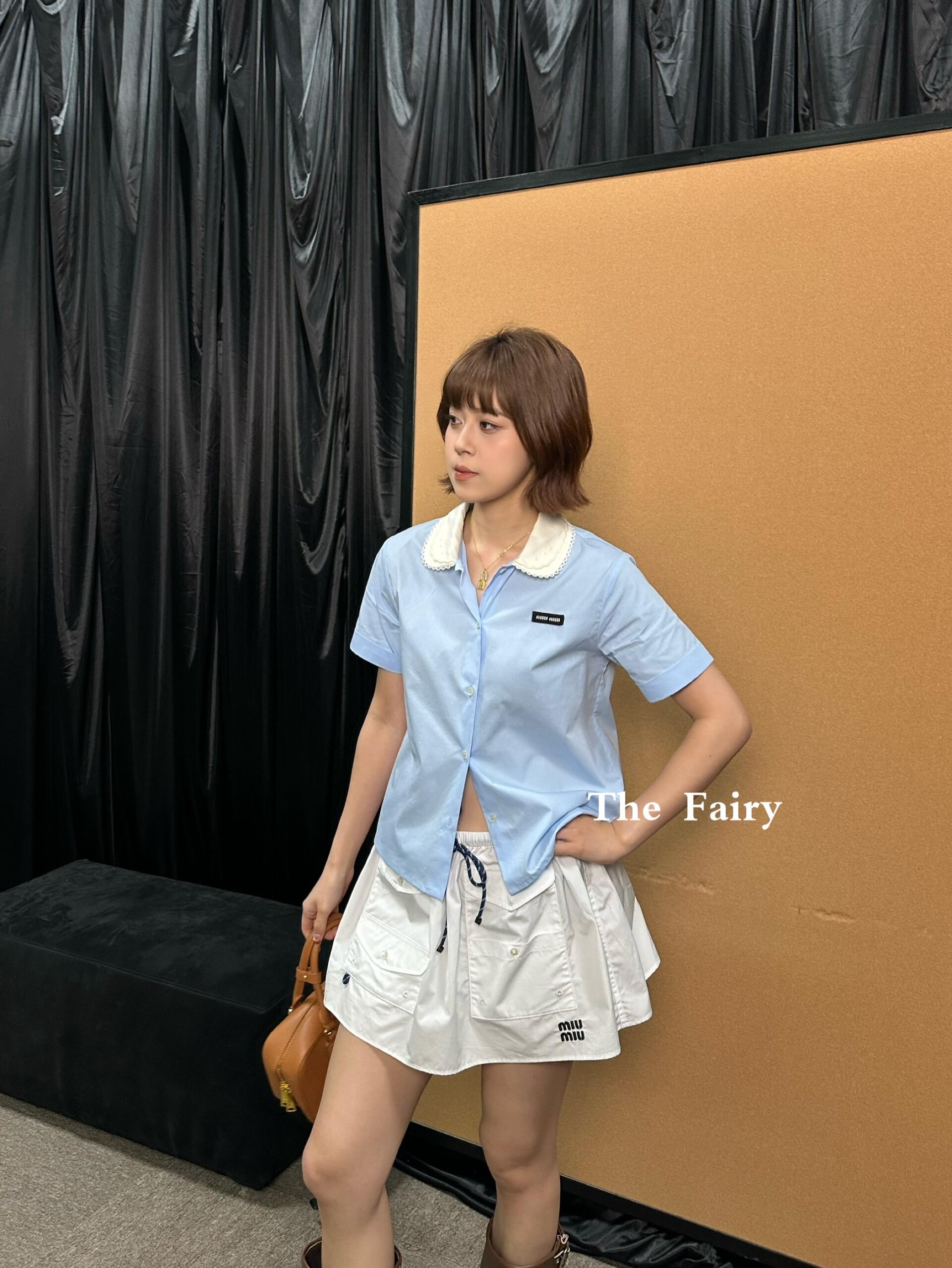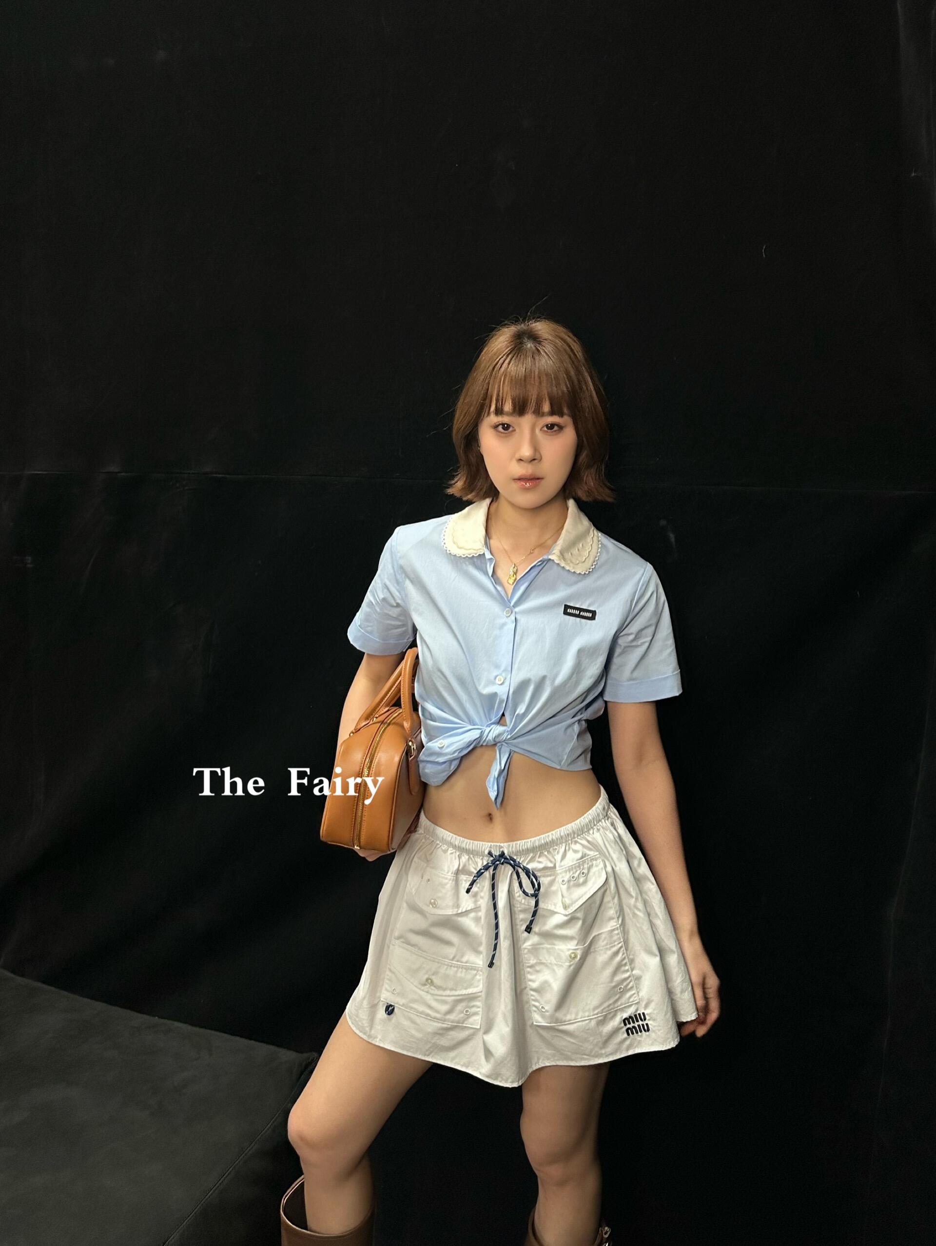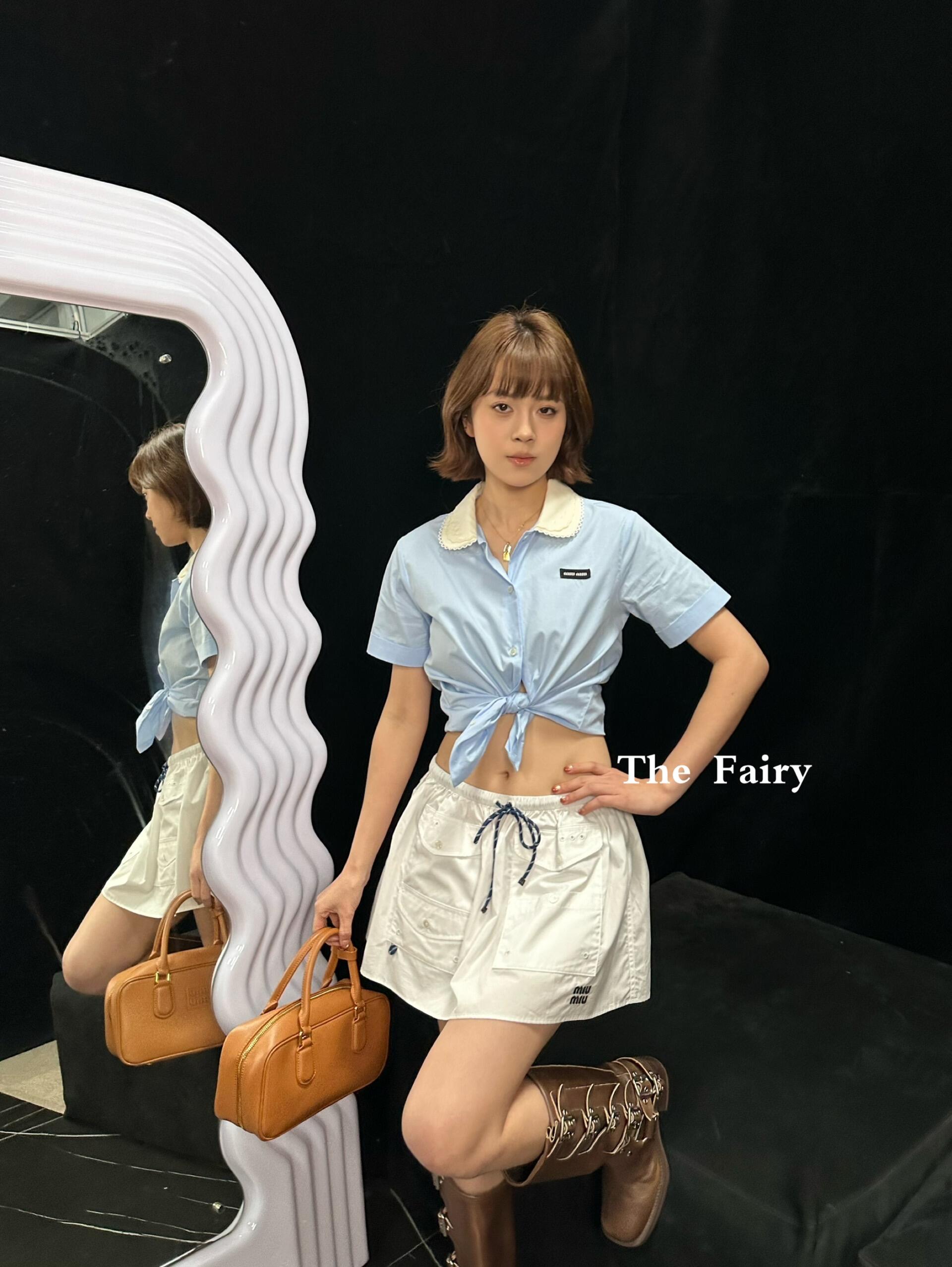 这款衣服是AAAAA 1:1 质量 (非常棒). 使用了和原版一模一样的材料. 商标部分也保持了和缪缪/Miu Miu一样. 图片拍摄是实物衣服拍摄, 您所收到的实物保证和我们图片一模一样.