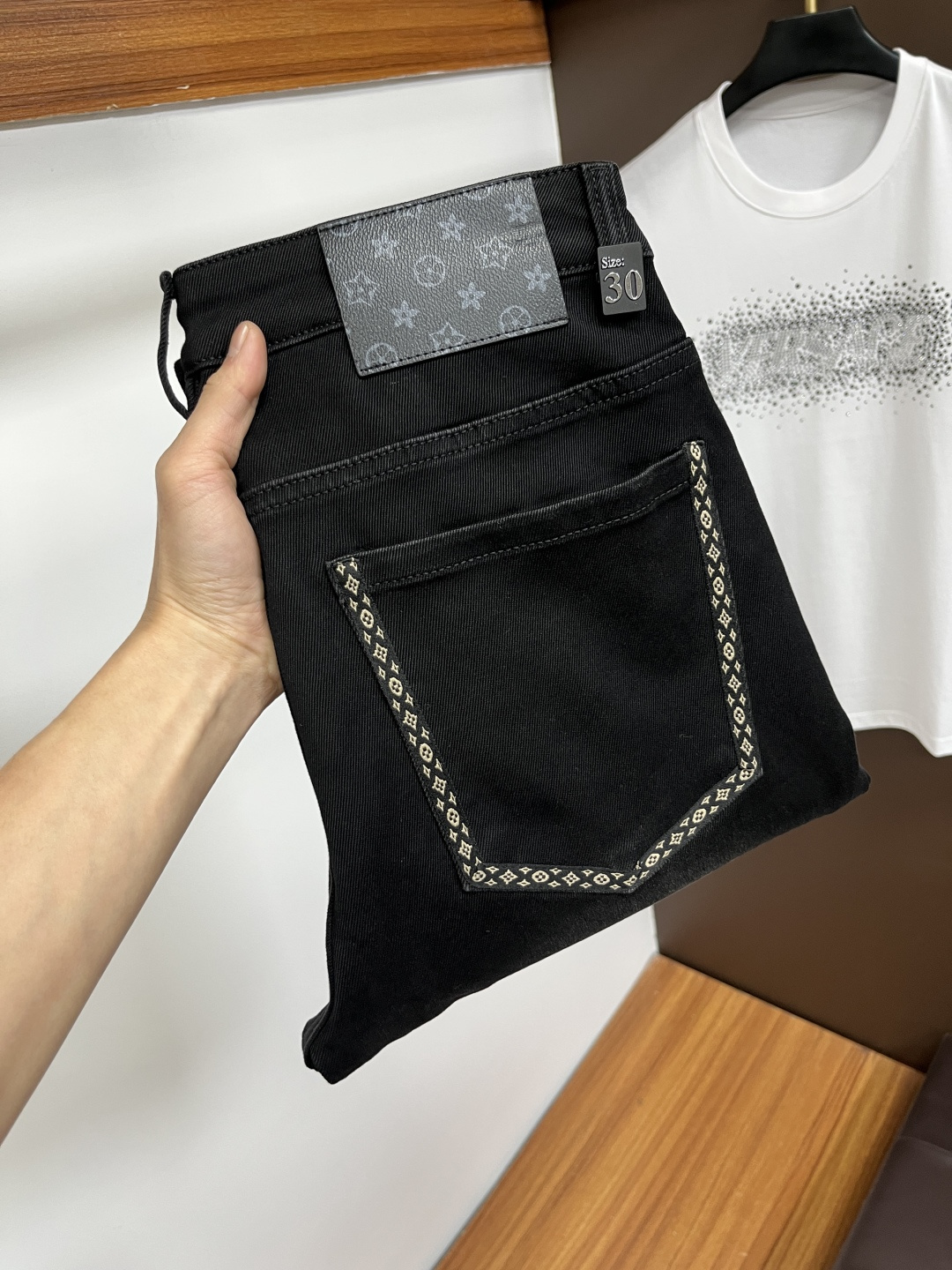 这款衣服是AAAAA 1:1 质量 (非常棒). 使用了和原版一模一样的材料. 商标部分也保持了和路易威登/Louis Vuitton一样. 图片拍摄是实物衣服拍摄, 您所收到的实物保证和我们图片一模一样.