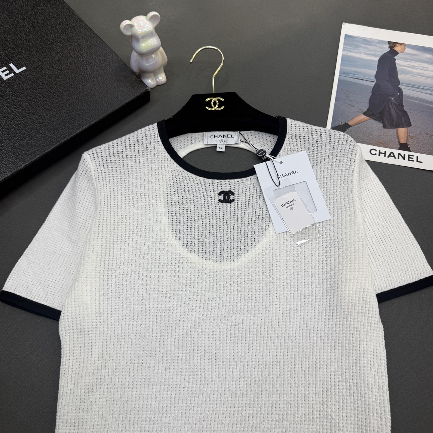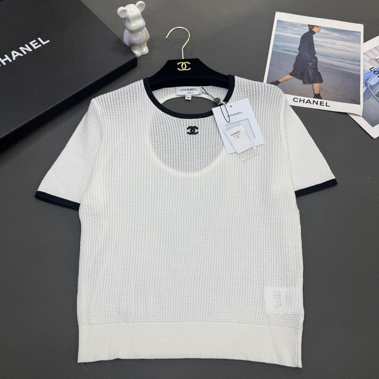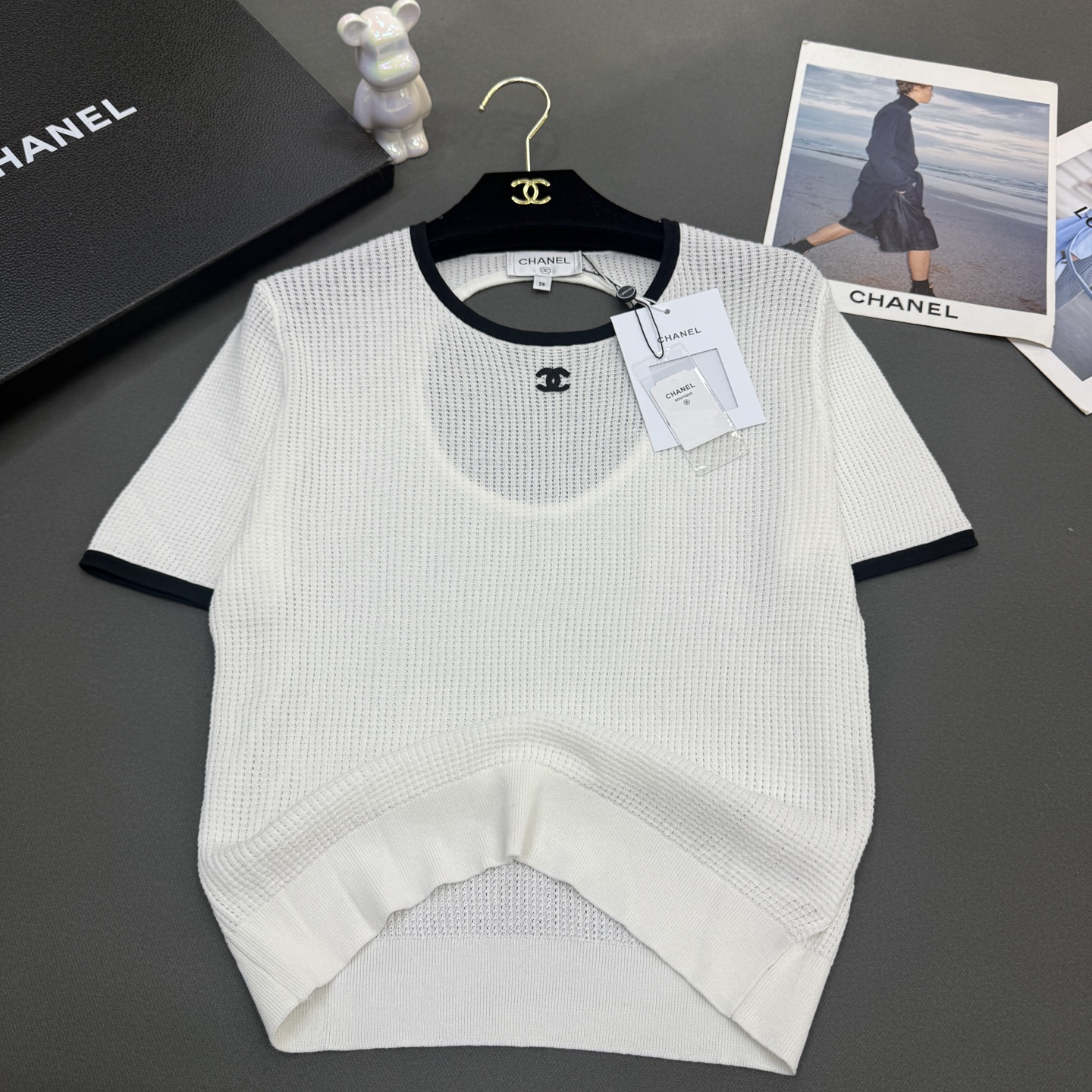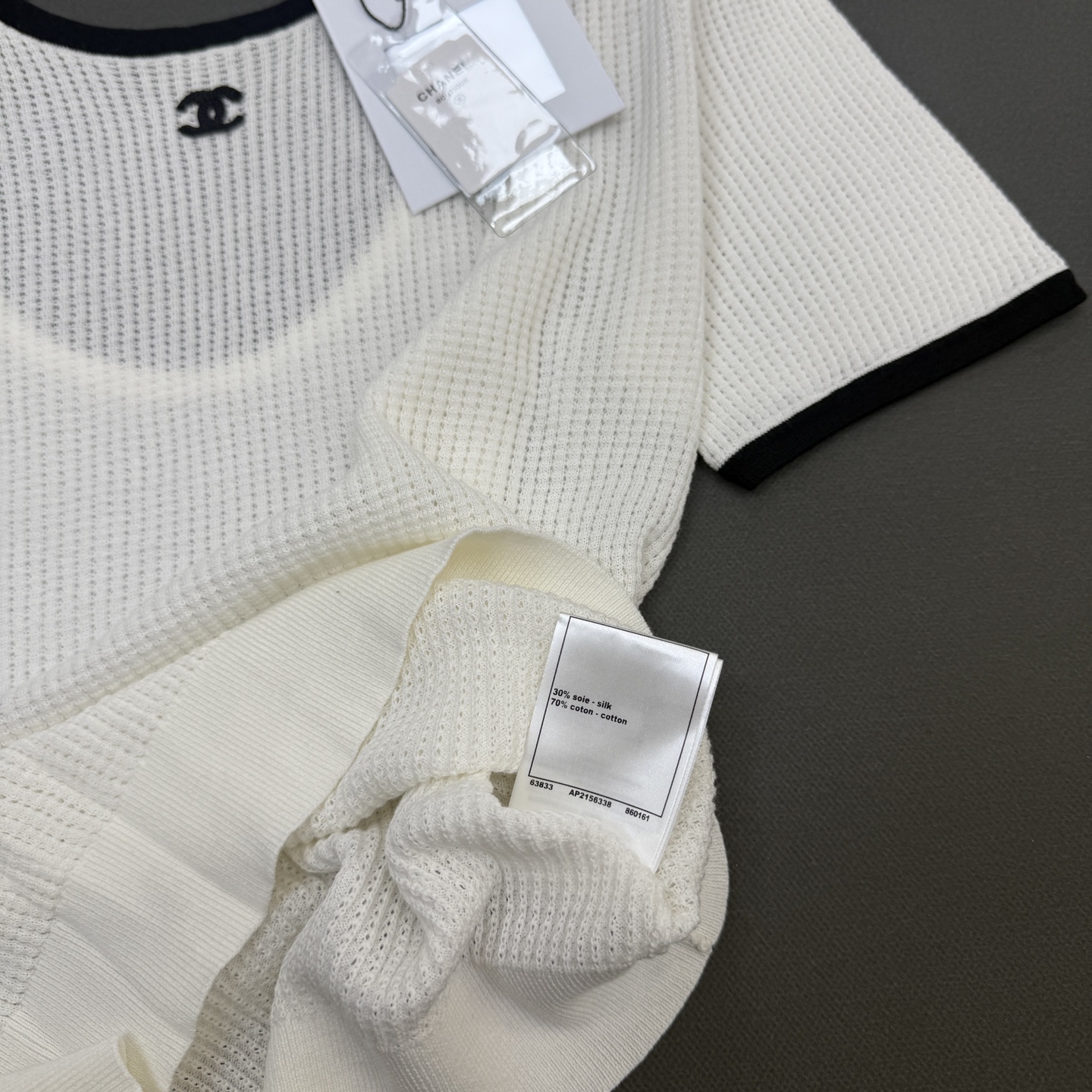 这款衣服是AAAAA 1:1 质量 (非常棒). 使用了和原版一模一样的材料. 商标部分也保持了和香奈儿/Chanel一样. 图片拍摄是实物衣服拍摄, 您所收到的实物保证和我们图片一模一样.