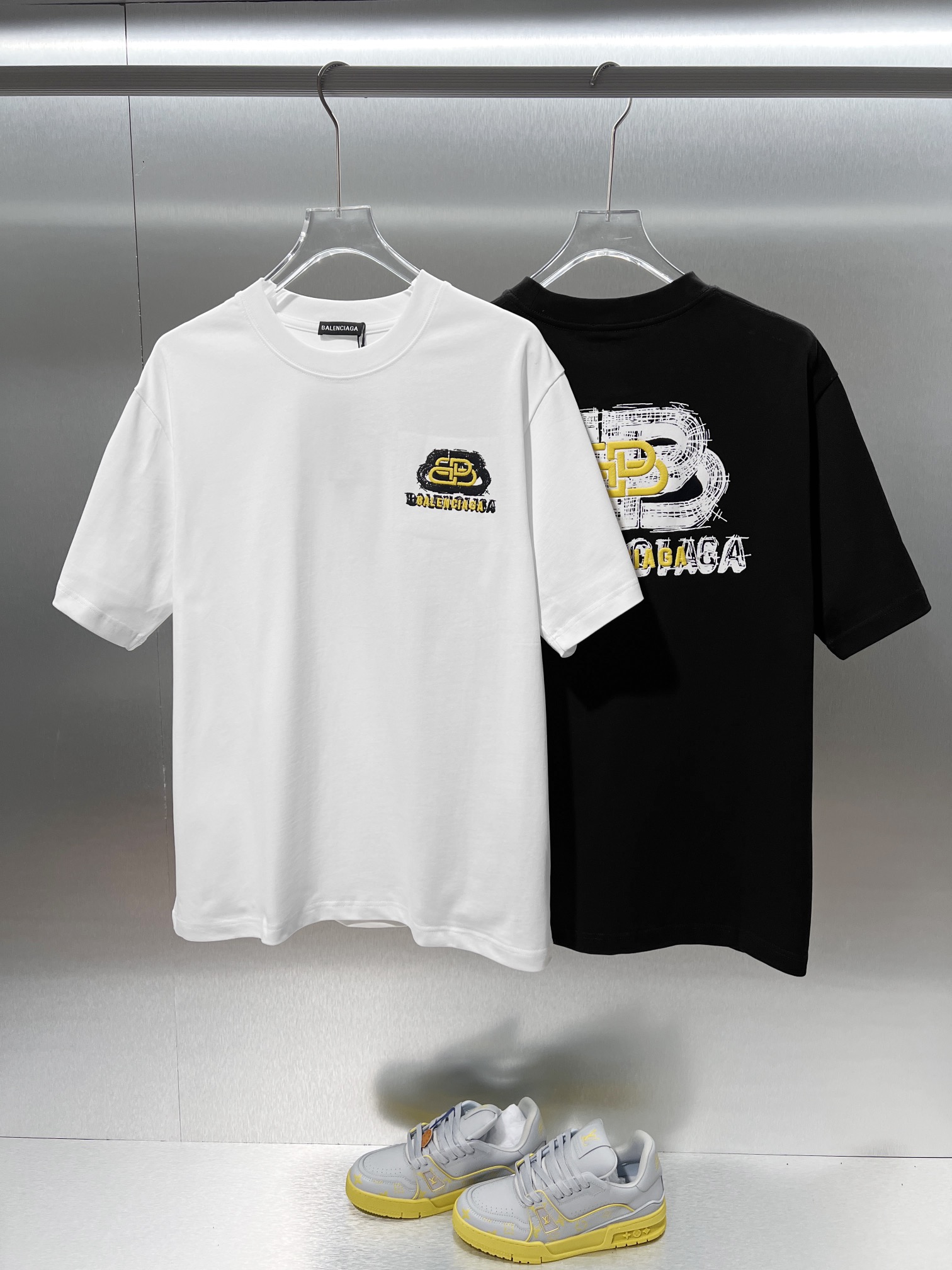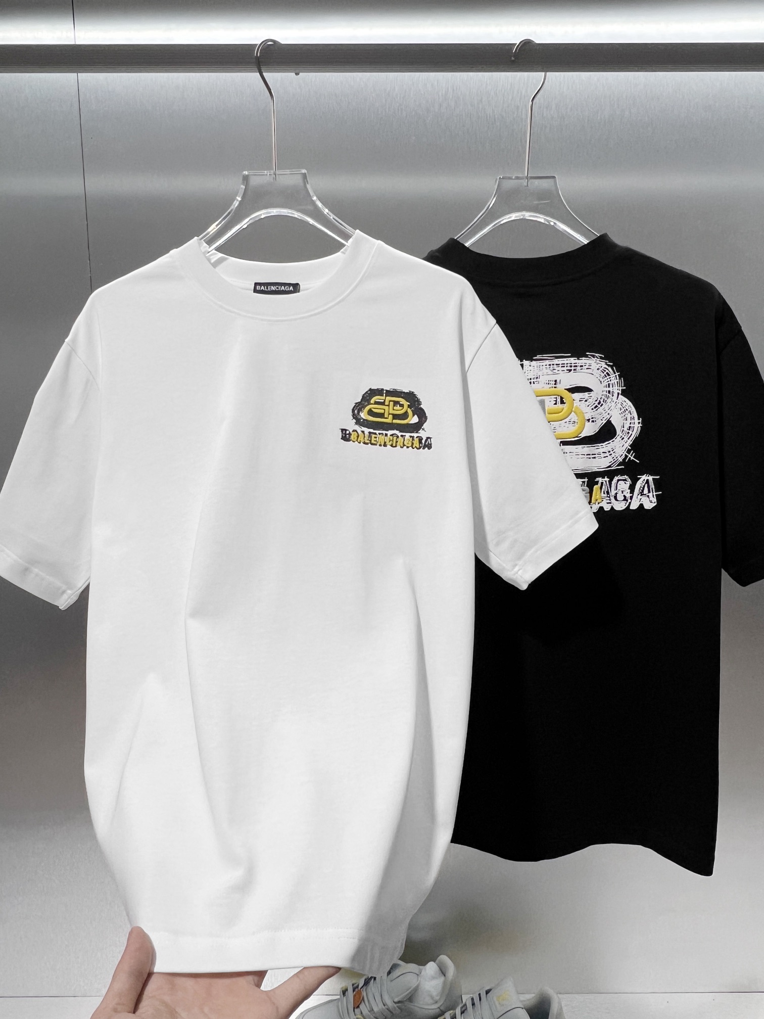 这款衣服是AAAAA 1:1 质量 (非常棒). 使用了和原版一模一样的材料. 商标部分也保持了和巴黎世家/Balenciaga一样. 图片拍摄是实物衣服拍摄, 您所收到的实物保证和我们图片一模一样.