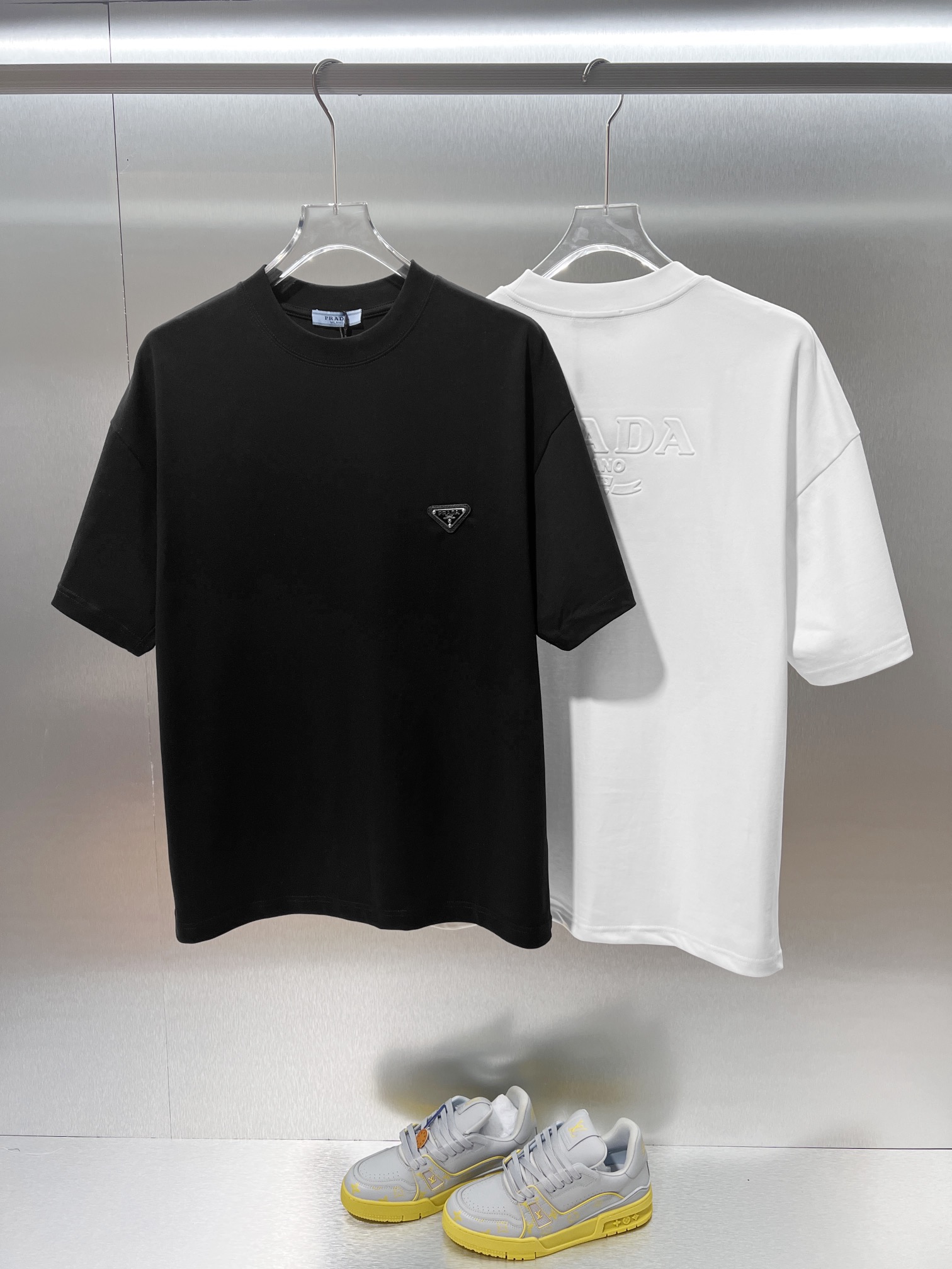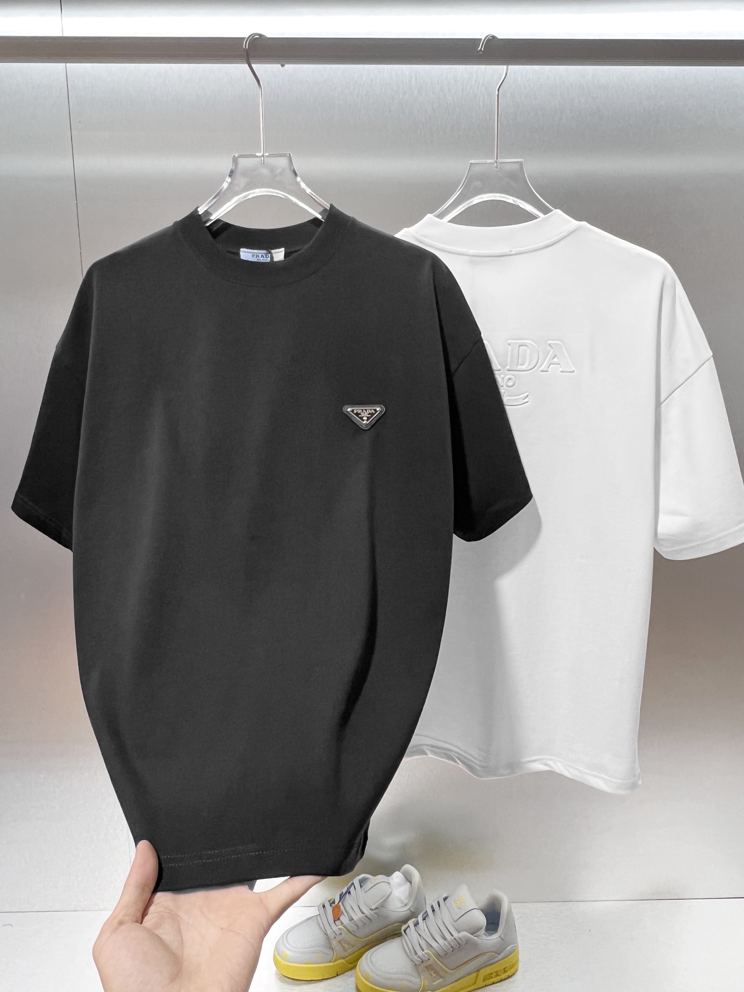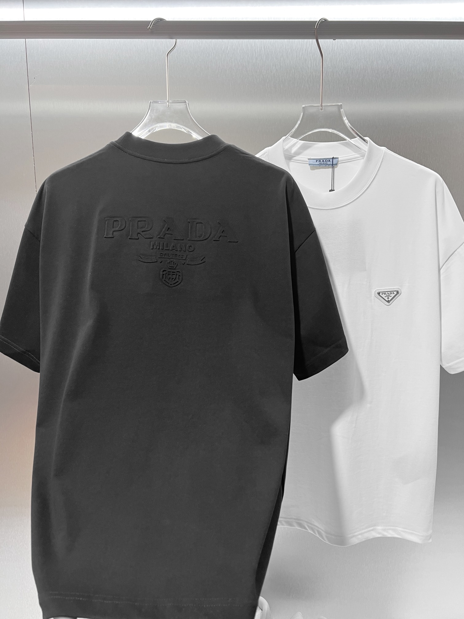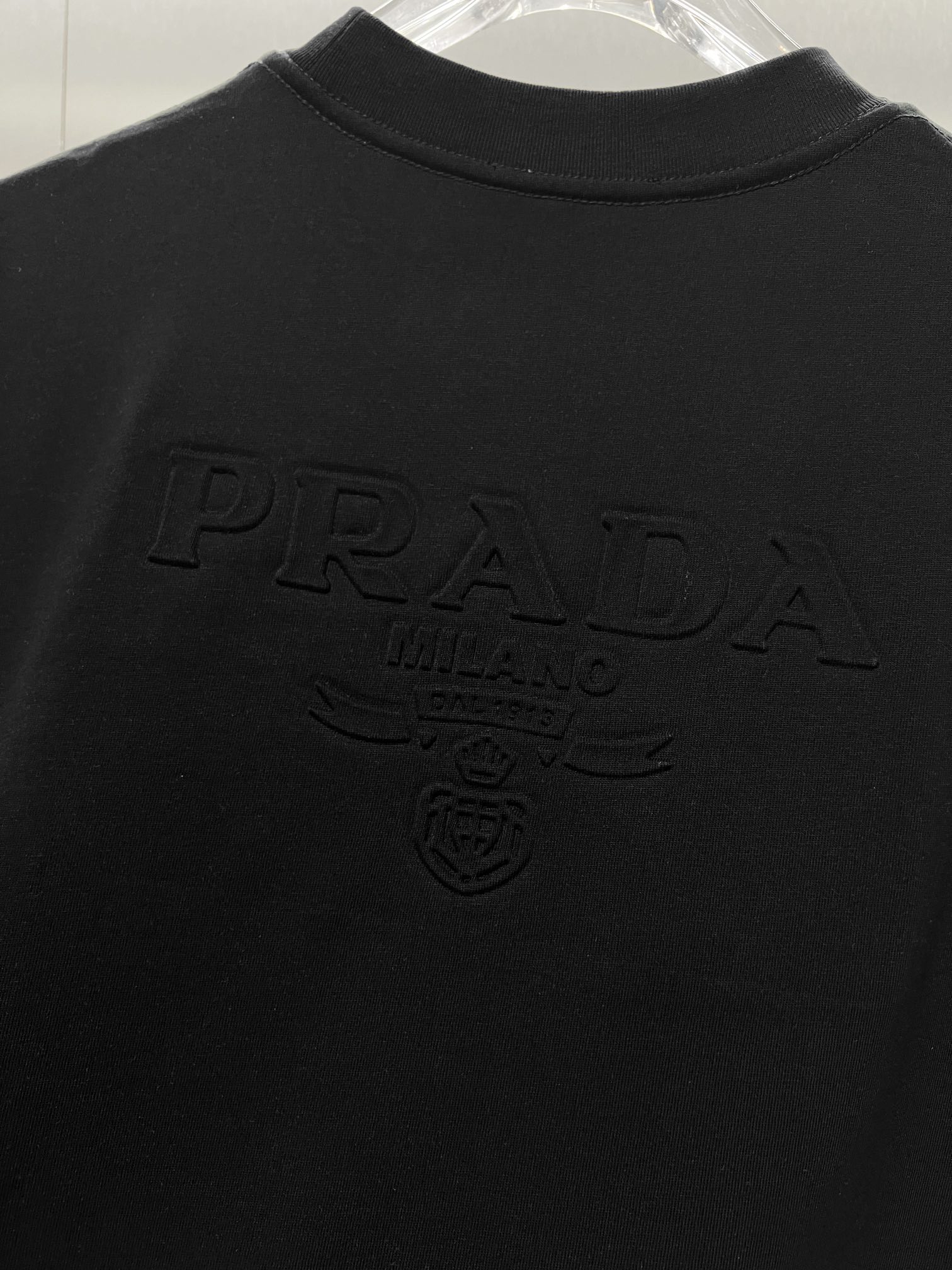 这款衣服是AAAAA 1:1 质量 (非常棒). 使用了和原版一模一样的材料. 商标部分也保持了和普拉达/Prada一样. 图片拍摄是实物衣服拍摄, 您所收到的实物保证和我们图片一模一样.