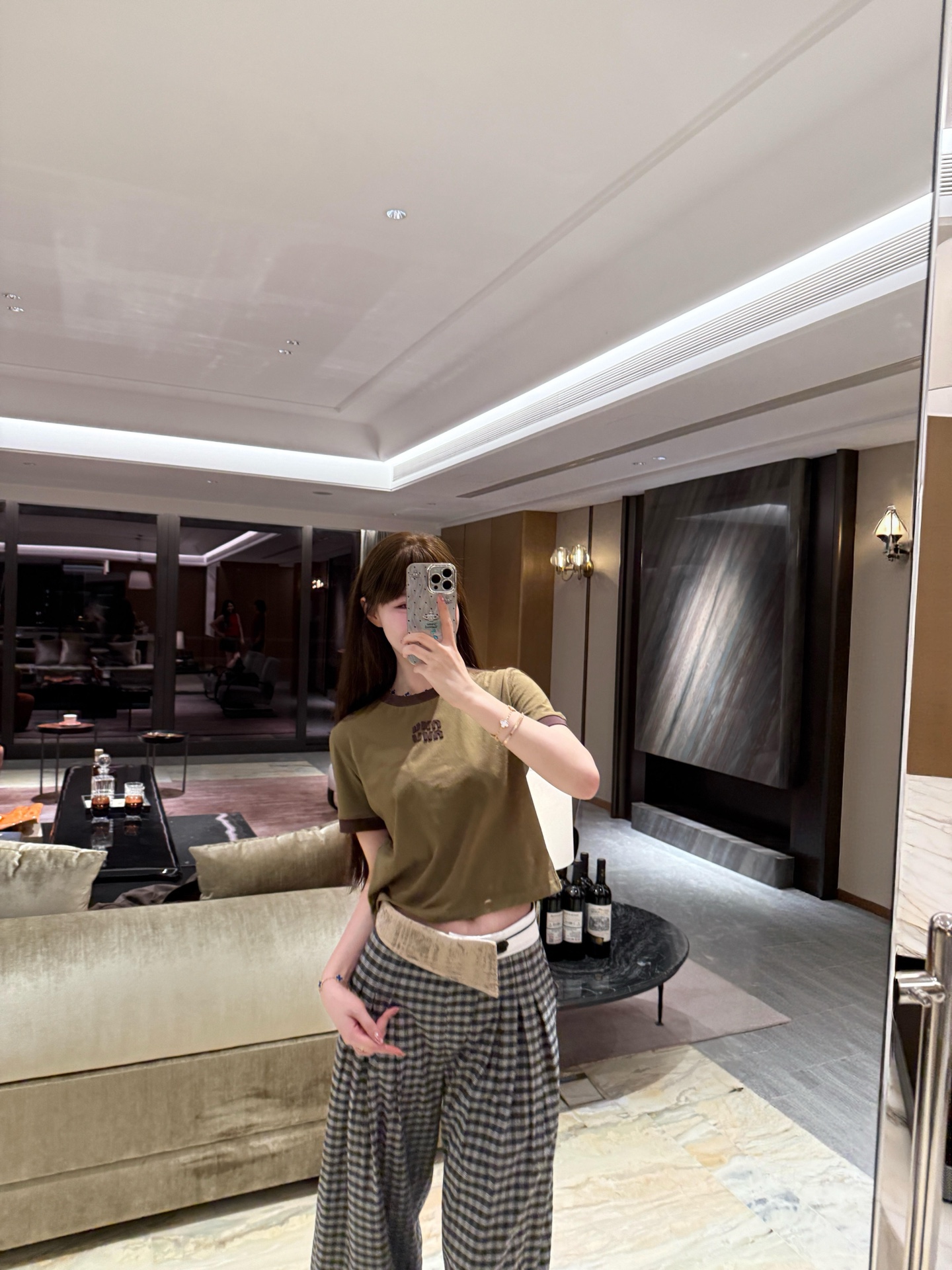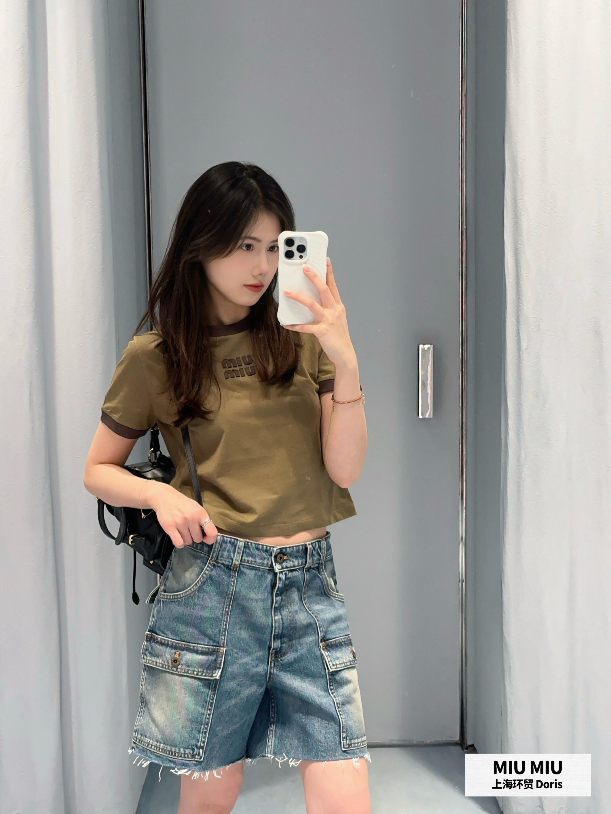 这款衣服是AAAAA 1:1 质量 (非常棒). 使用了和原版一模一样的材料. 商标部分也保持了和缪缪/Miu Miu一样. 图片拍摄是实物衣服拍摄, 您所收到的实物保证和我们图片一模一样.