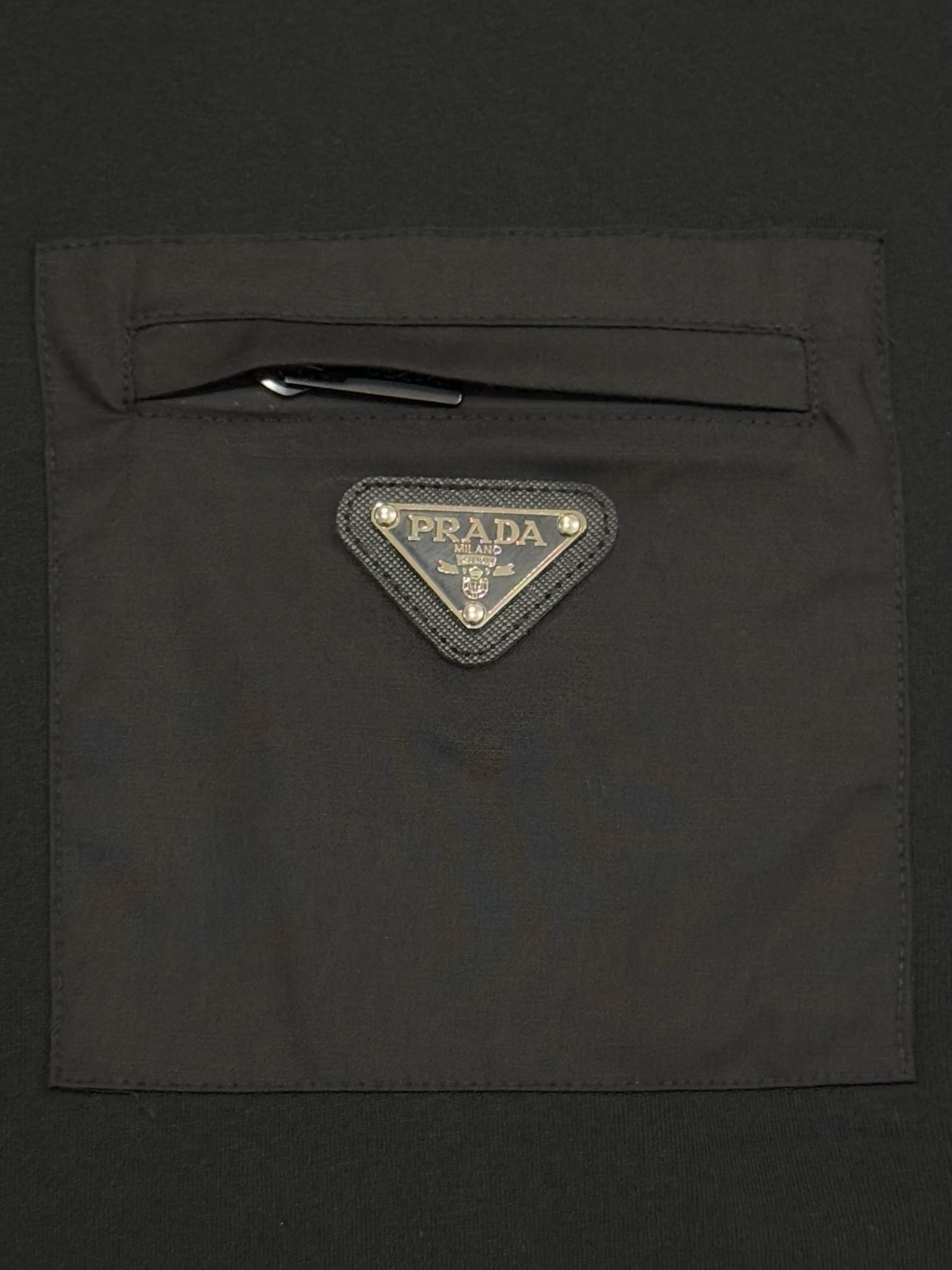 这款衣服是AAAAA 1:1 质量 (非常棒). 使用了和原版一模一样的材料. 商标部分也保持了和普拉达/Prada一样. 图片拍摄是实物衣服拍摄, 您所收到的实物保证和我们图片一模一样.