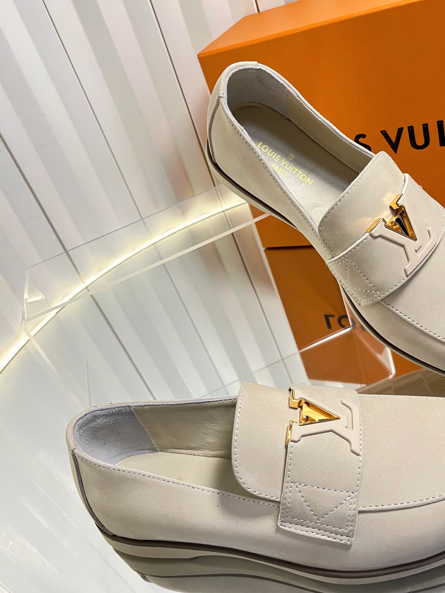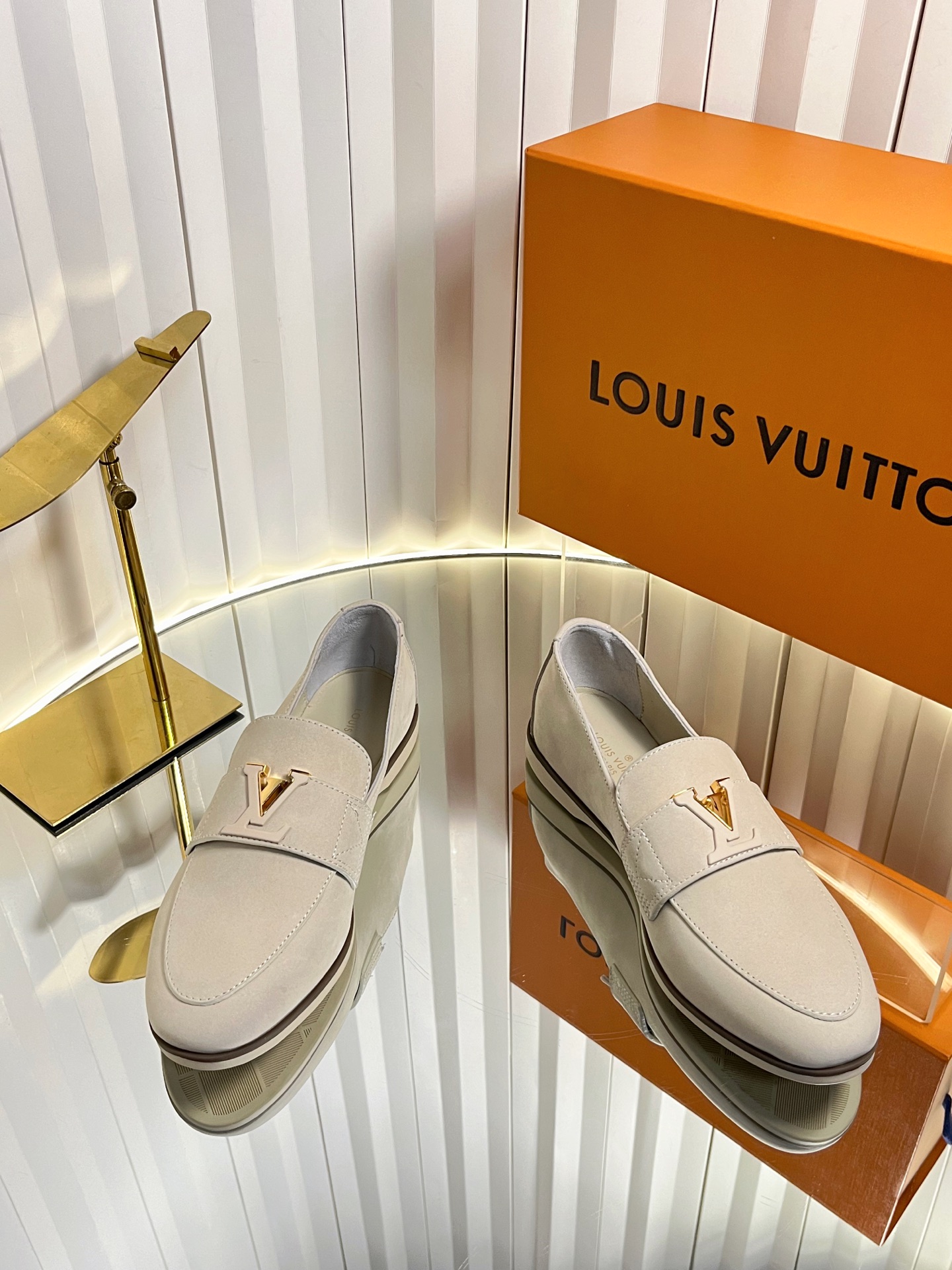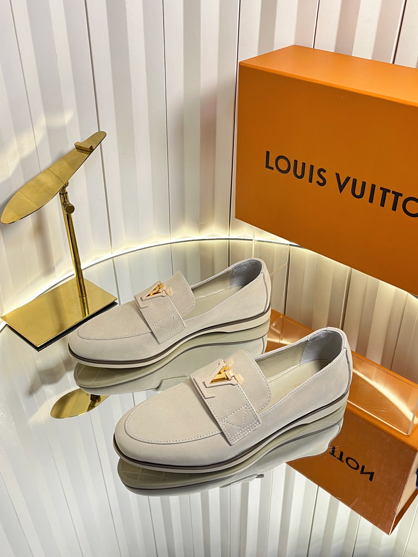 这款鞋子是AAAAA 1:1 质量 (非常棒). 使用了和原版一模一样的材料. 商标部分也保持了和路易威登/Louis Vuitton一样. 图片拍摄是实物鞋子拍摄, 您所收到的实物保证和我们图片一模一样.