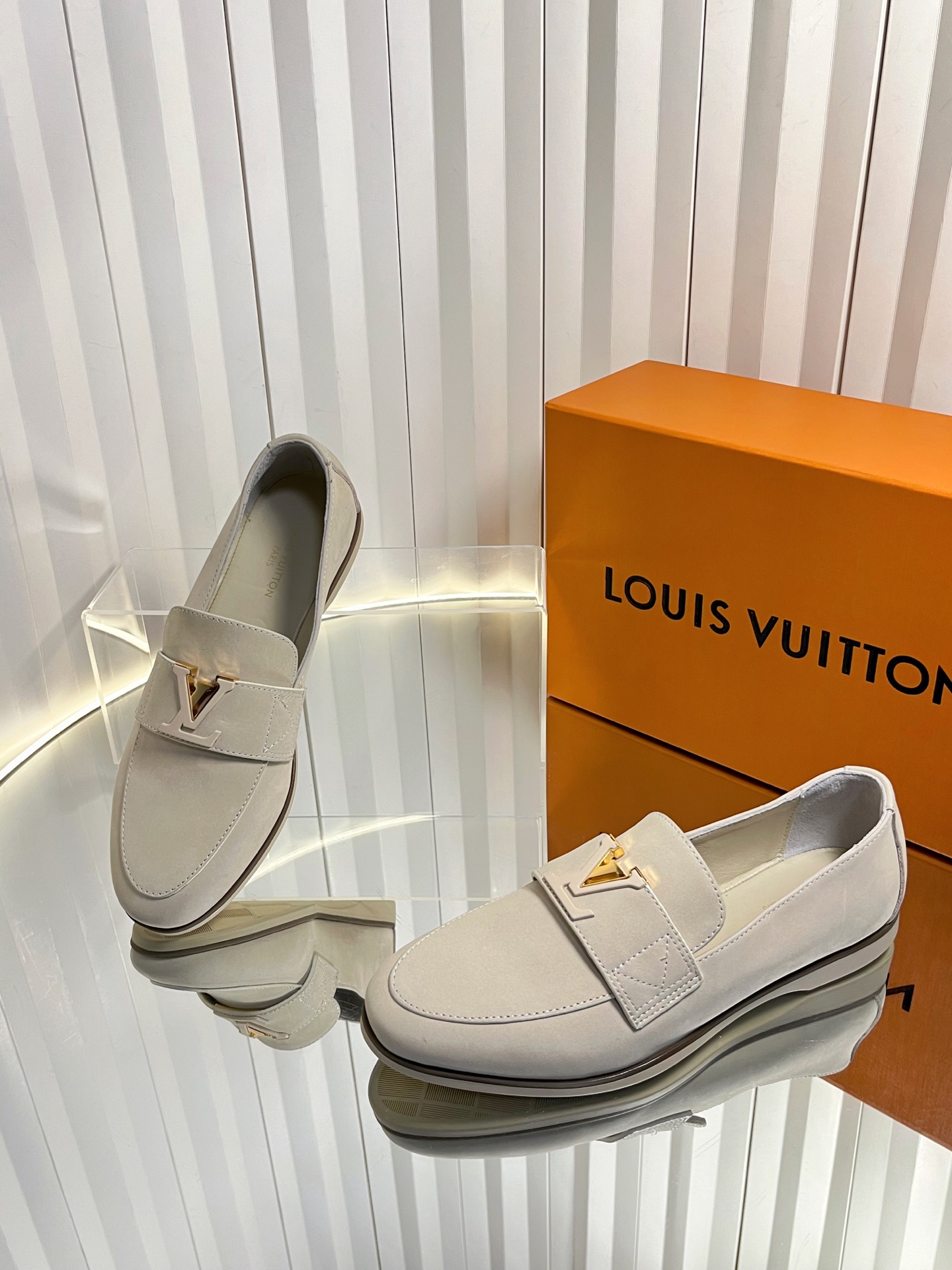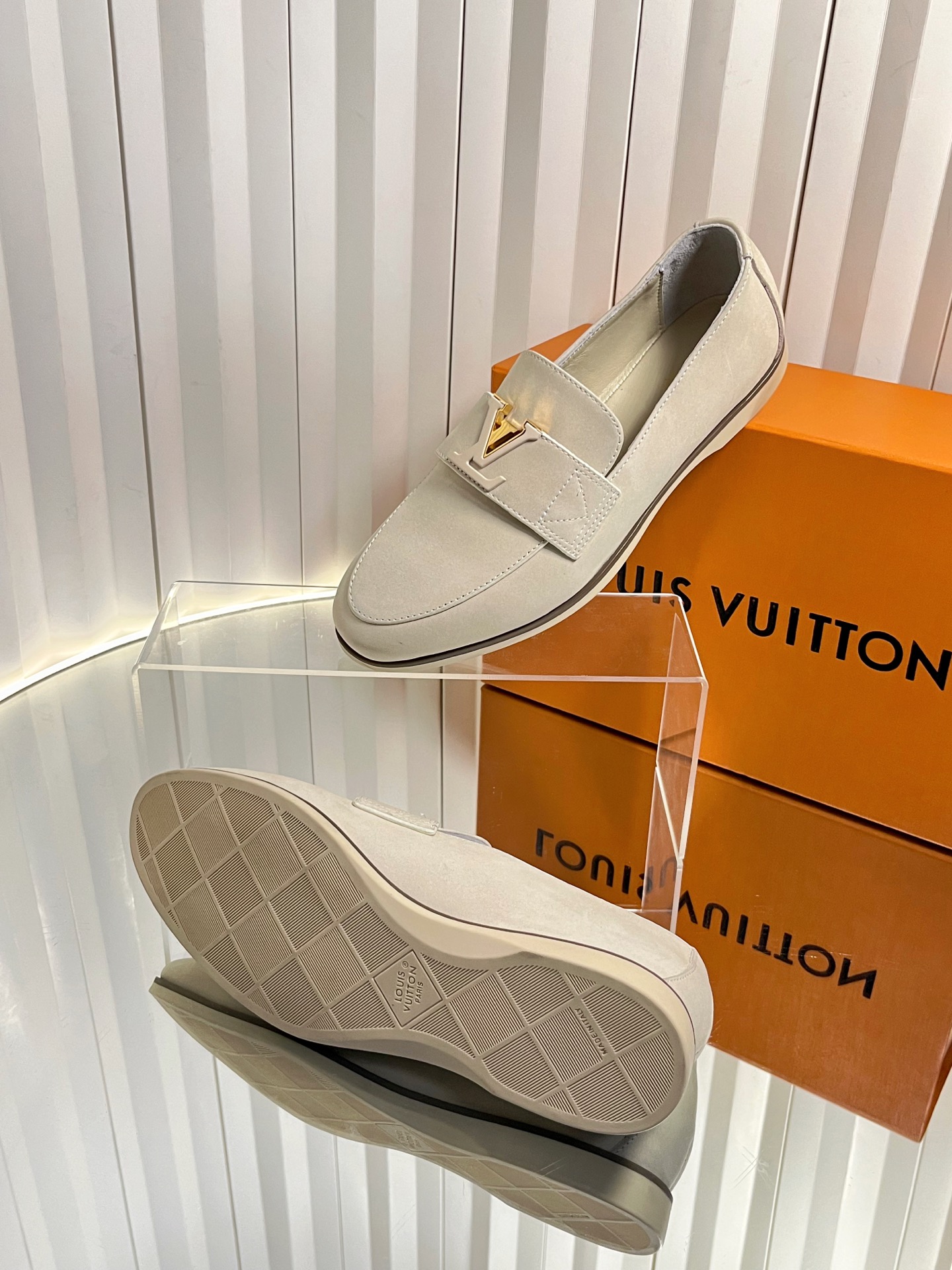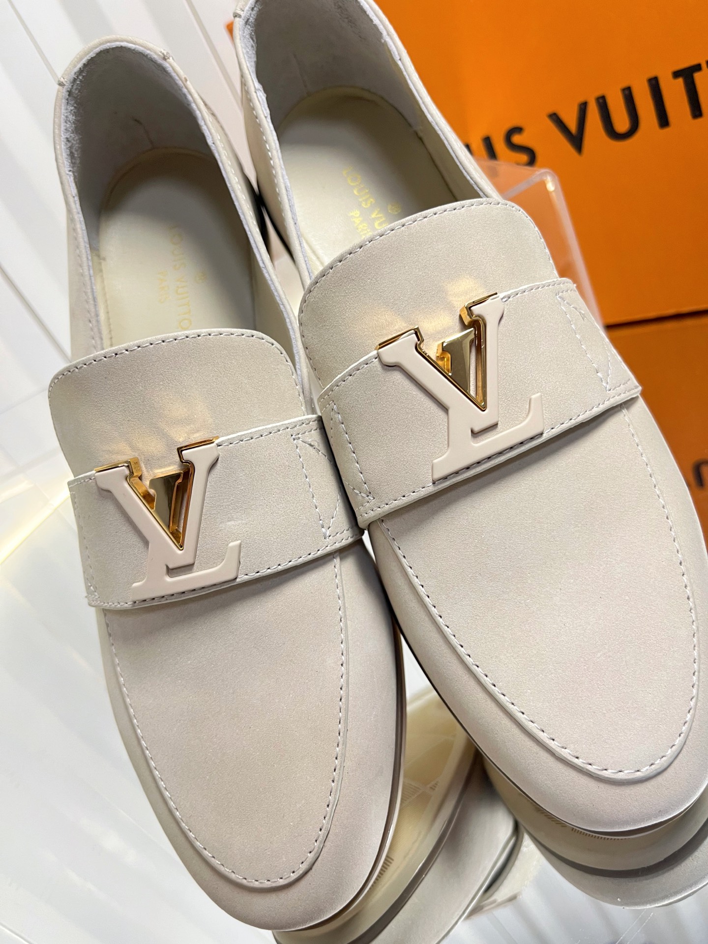 这款鞋子是AAAAA 1:1 质量 (非常棒). 使用了和原版一模一样的材料. 商标部分也保持了和路易威登/Louis Vuitton一样. 图片拍摄是实物鞋子拍摄, 您所收到的实物保证和我们图片一模一样.