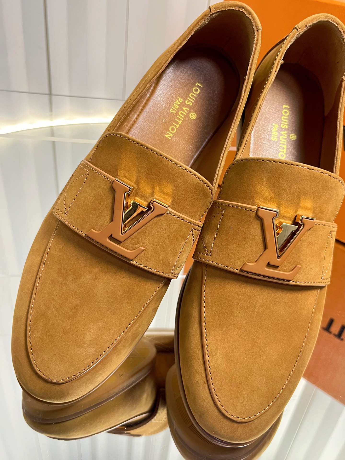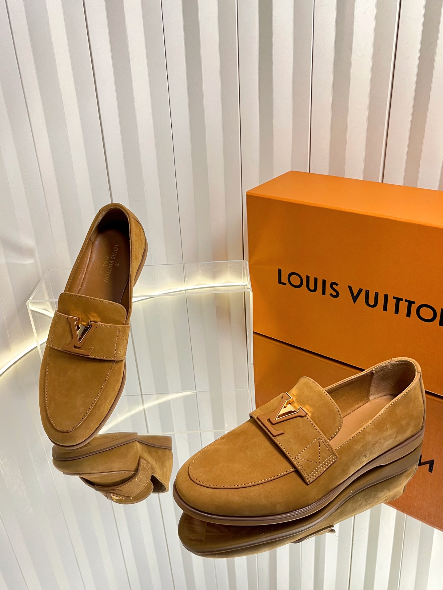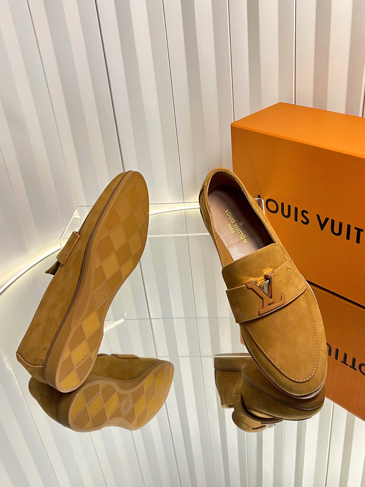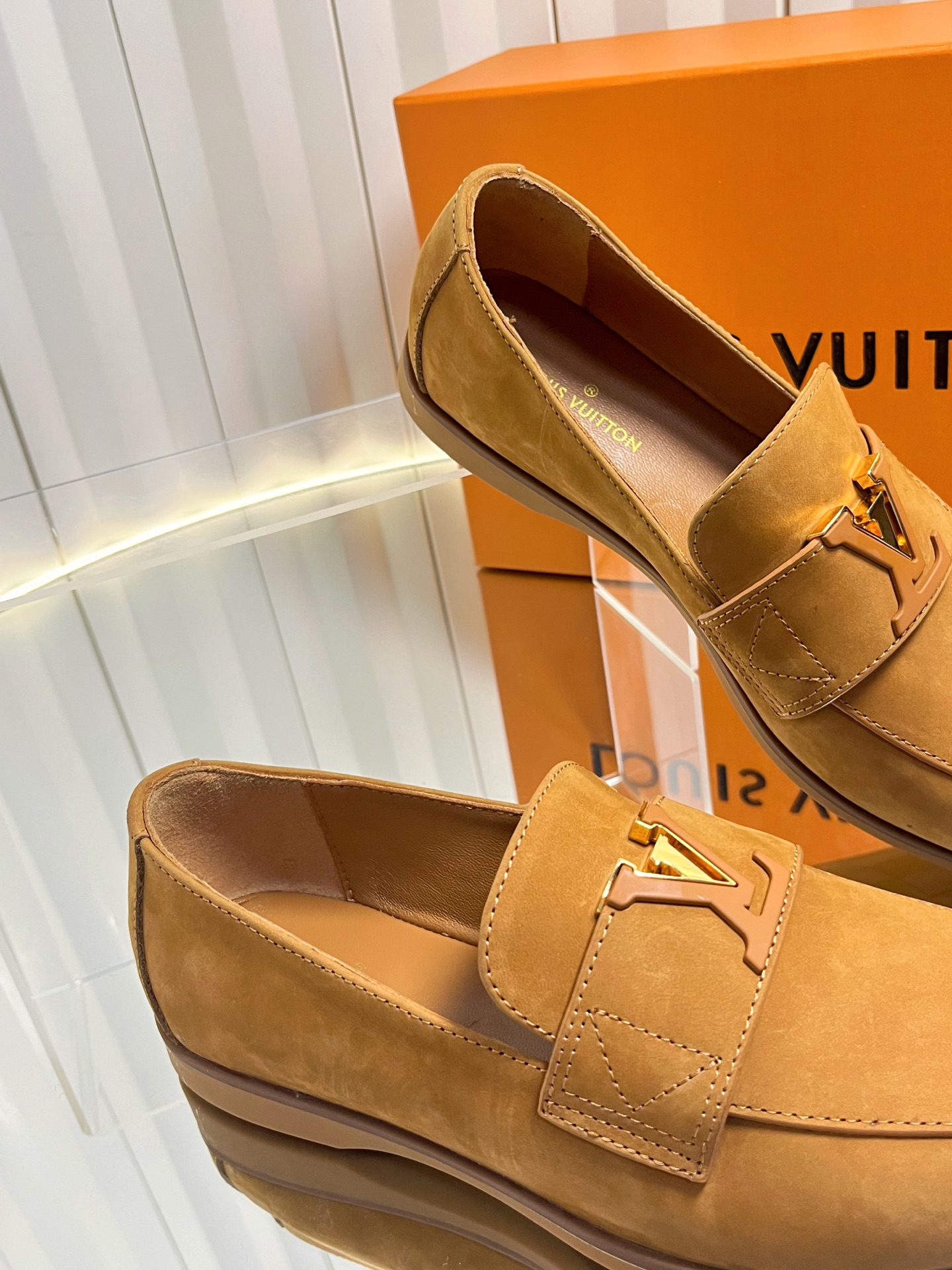 这款鞋子是AAAAA 1:1 质量 (非常棒). 使用了和原版一模一样的材料. 商标部分也保持了和路易威登/Louis Vuitton一样. 图片拍摄是实物鞋子拍摄, 您所收到的实物保证和我们图片一模一样.