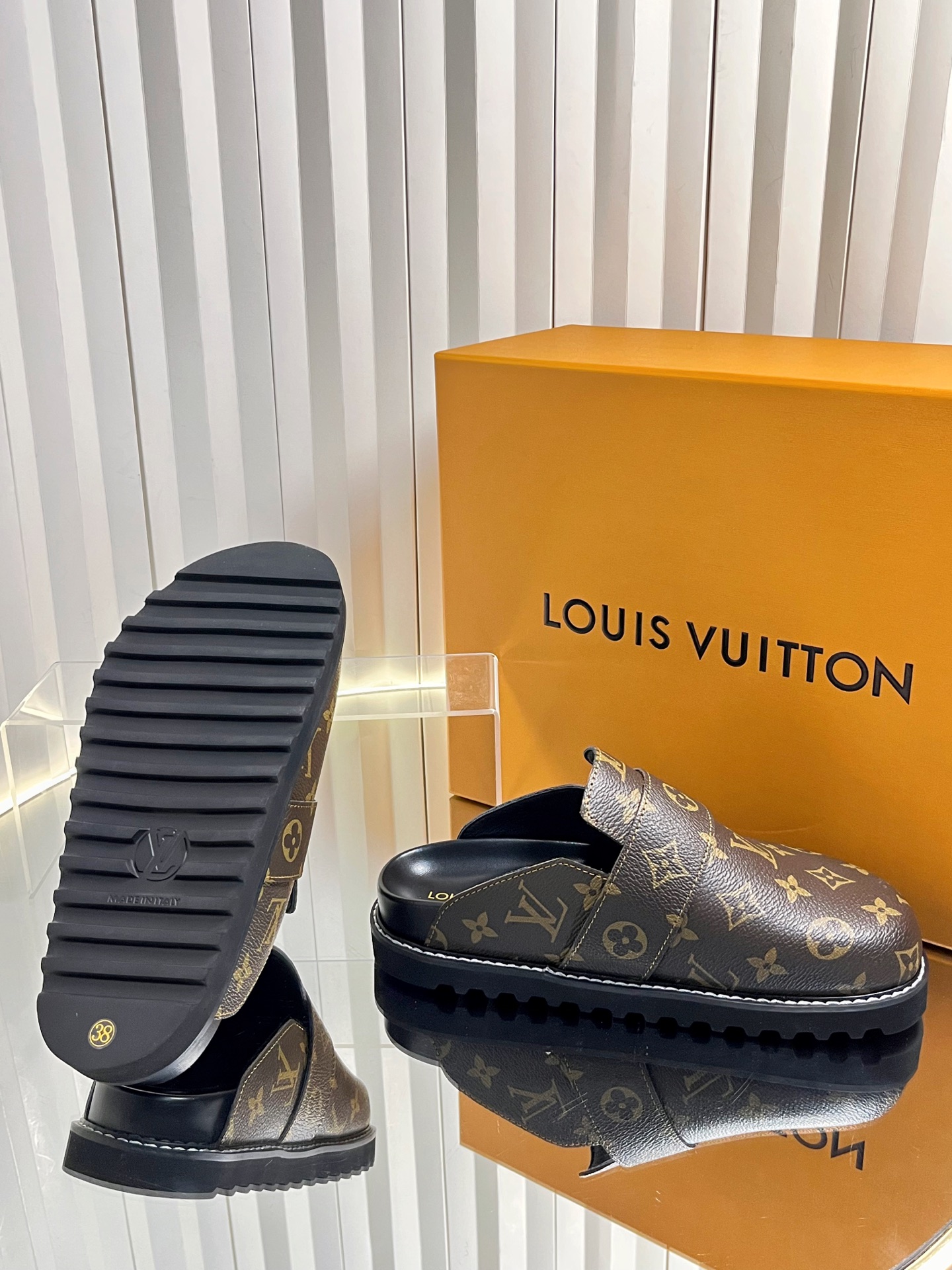 这款鞋子是AAAAA 1:1 质量 (非常棒). 使用了和原版一模一样的材料. 商标部分也保持了和路易威登/Louis Vuitton一样. 图片拍摄是实物鞋子拍摄, 您所收到的实物保证和我们图片一模一样.