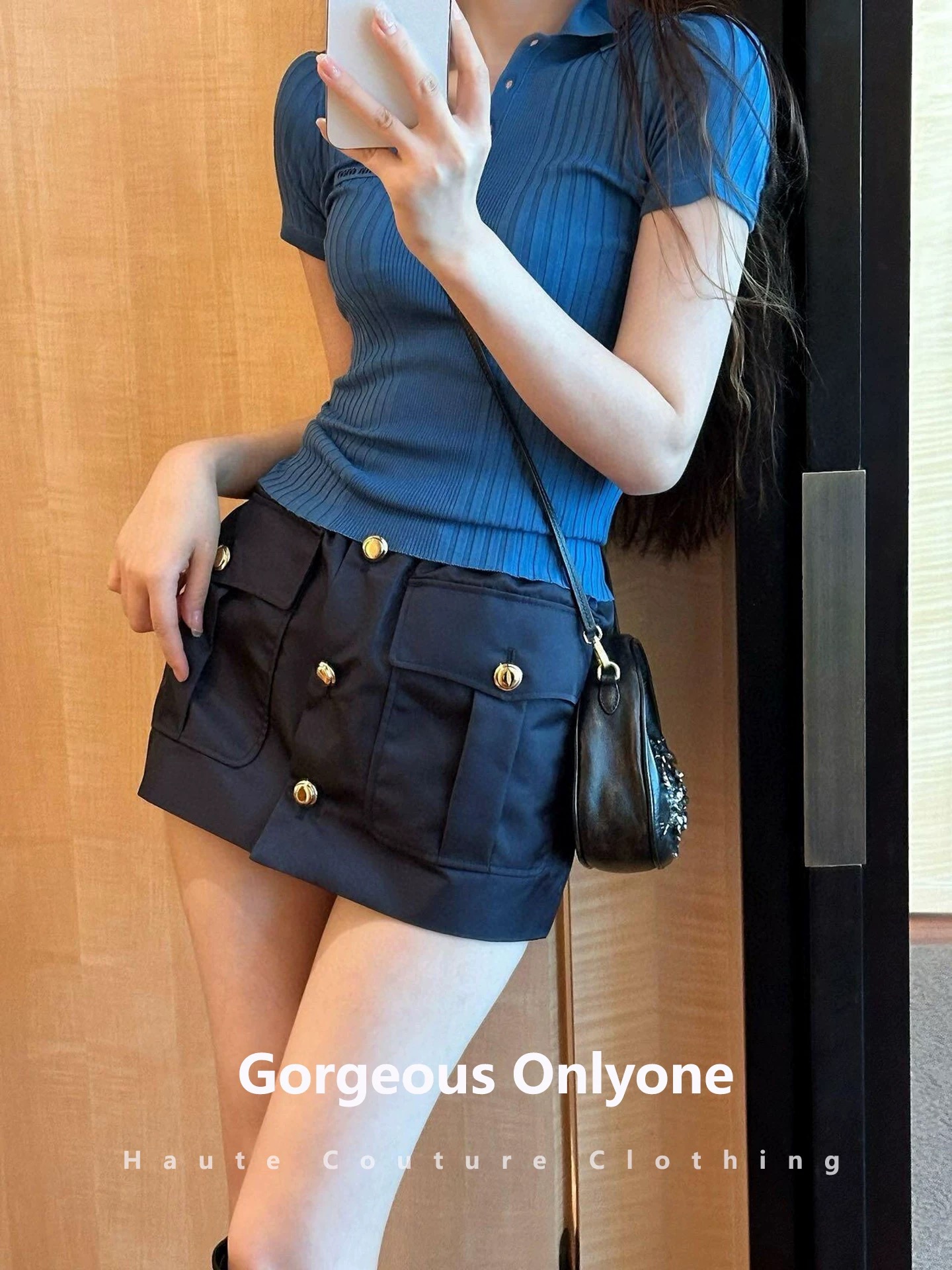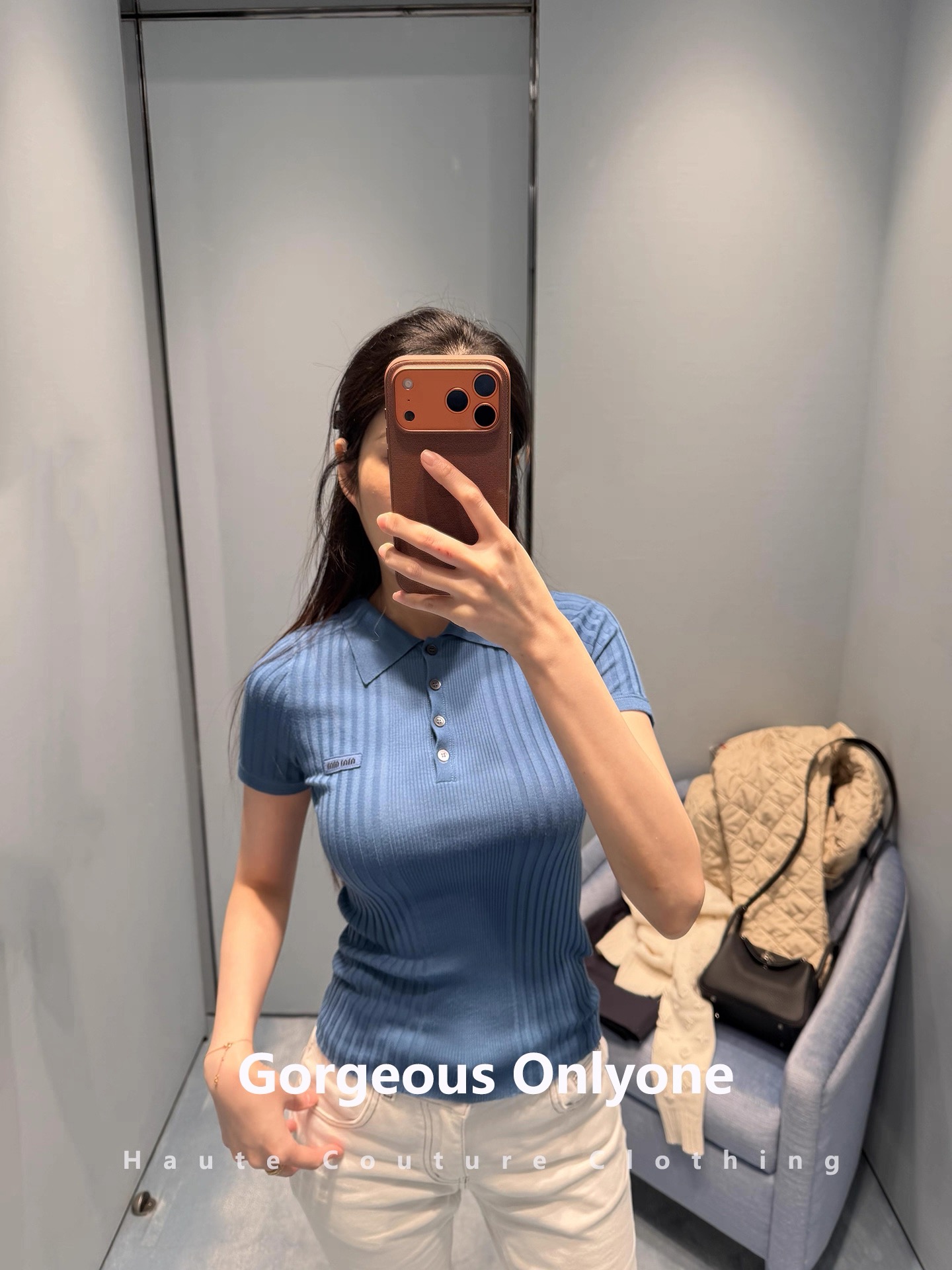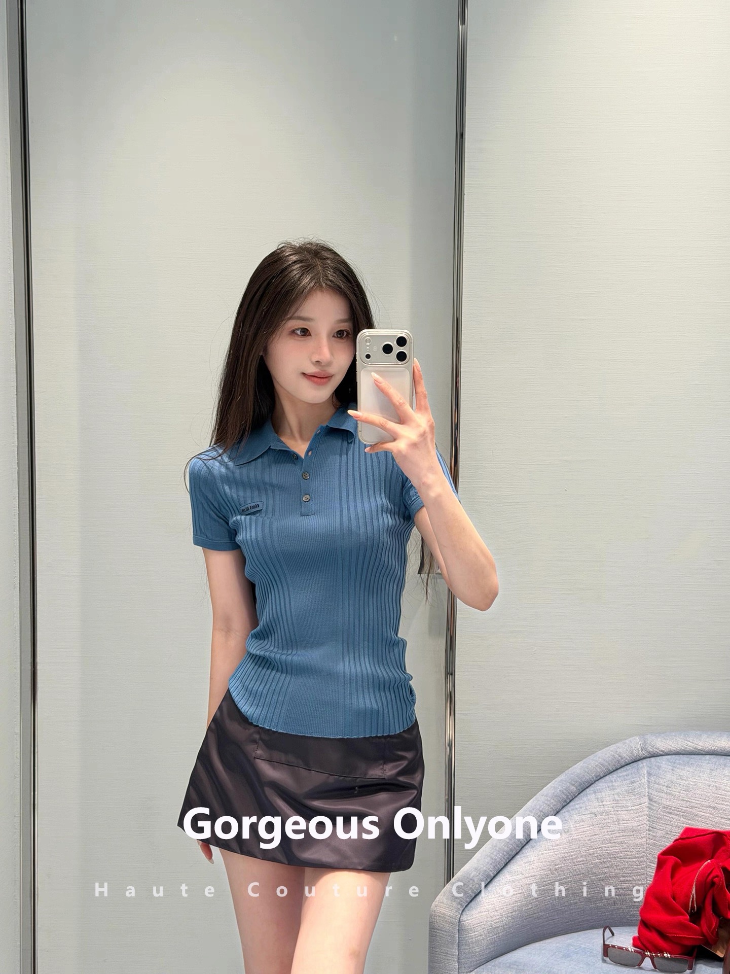 这款衣服是AAAAA 1:1 质量 (非常棒). 使用了和原版一模一样的材料. 商标部分也保持了和缪缪/Miu Miu一样. 图片拍摄是实物衣服拍摄, 您所收到的实物保证和我们图片一模一样.