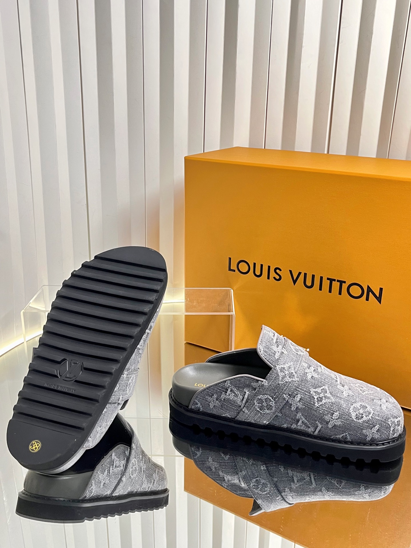 这款鞋子是AAAAA 1:1 质量 (非常棒). 使用了和原版一模一样的材料. 商标部分也保持了和路易威登/Louis Vuitton一样. 图片拍摄是实物鞋子拍摄, 您所收到的实物保证和我们图片一模一样.
