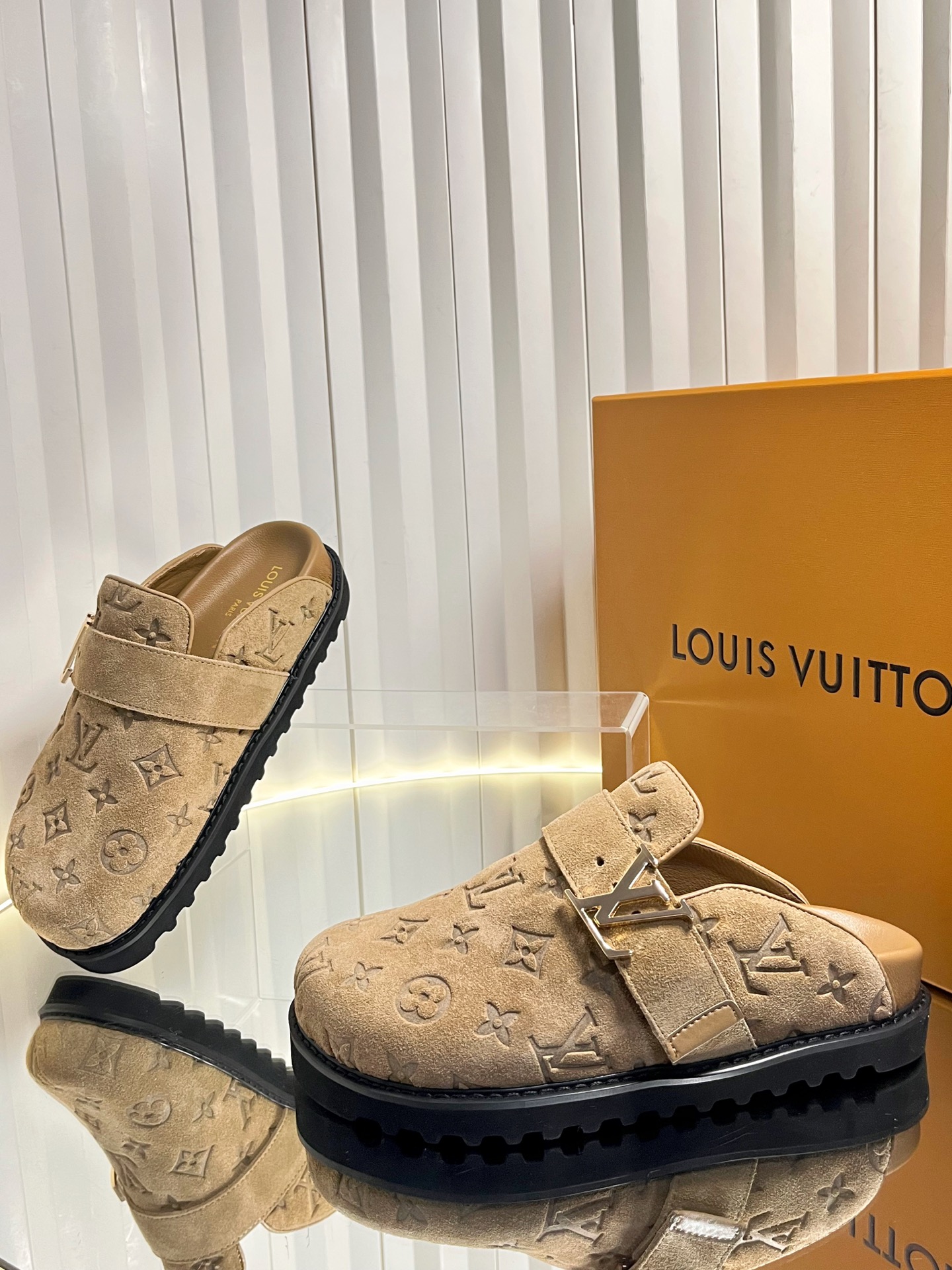 这款鞋子是AAAAA 1:1 质量 (非常棒). 使用了和原版一模一样的材料. 商标部分也保持了和路易威登/Louis Vuitton一样. 图片拍摄是实物鞋子拍摄, 您所收到的实物保证和我们图片一模一样.