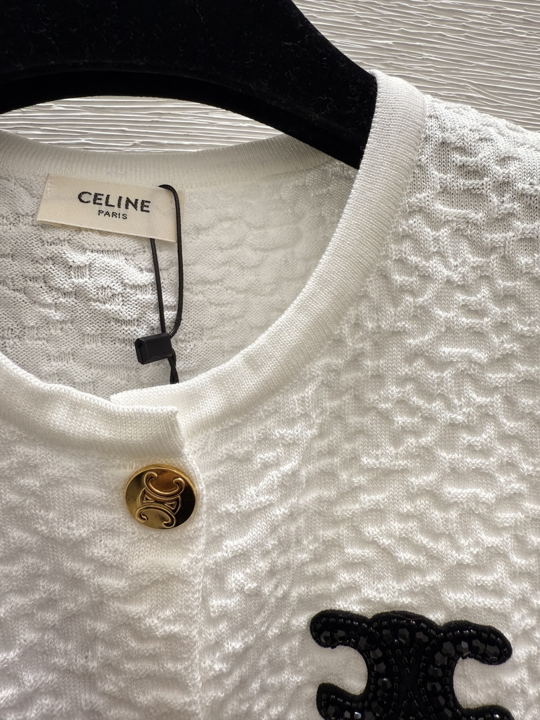 这款衣服是AAAAA 1:1 质量 (非常棒). 使用了和原版一模一样的材料. 商标部分也保持了和思琳/Celine一样. 图片拍摄是实物衣服拍摄, 您所收到的实物保证和我们图片一模一样.