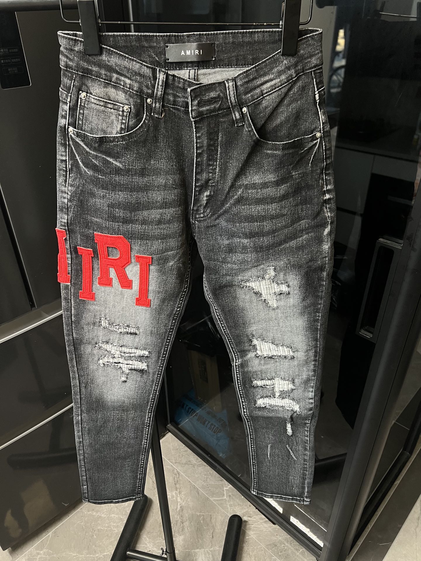 这款衣服是AAAAA 1:1 质量 (非常棒). 使用了和原版一模一样的材料. 商标部分也保持了和AMIRI一样. 图片拍摄是实物衣服拍摄, 您所收到的实物保证和我们图片一模一样.