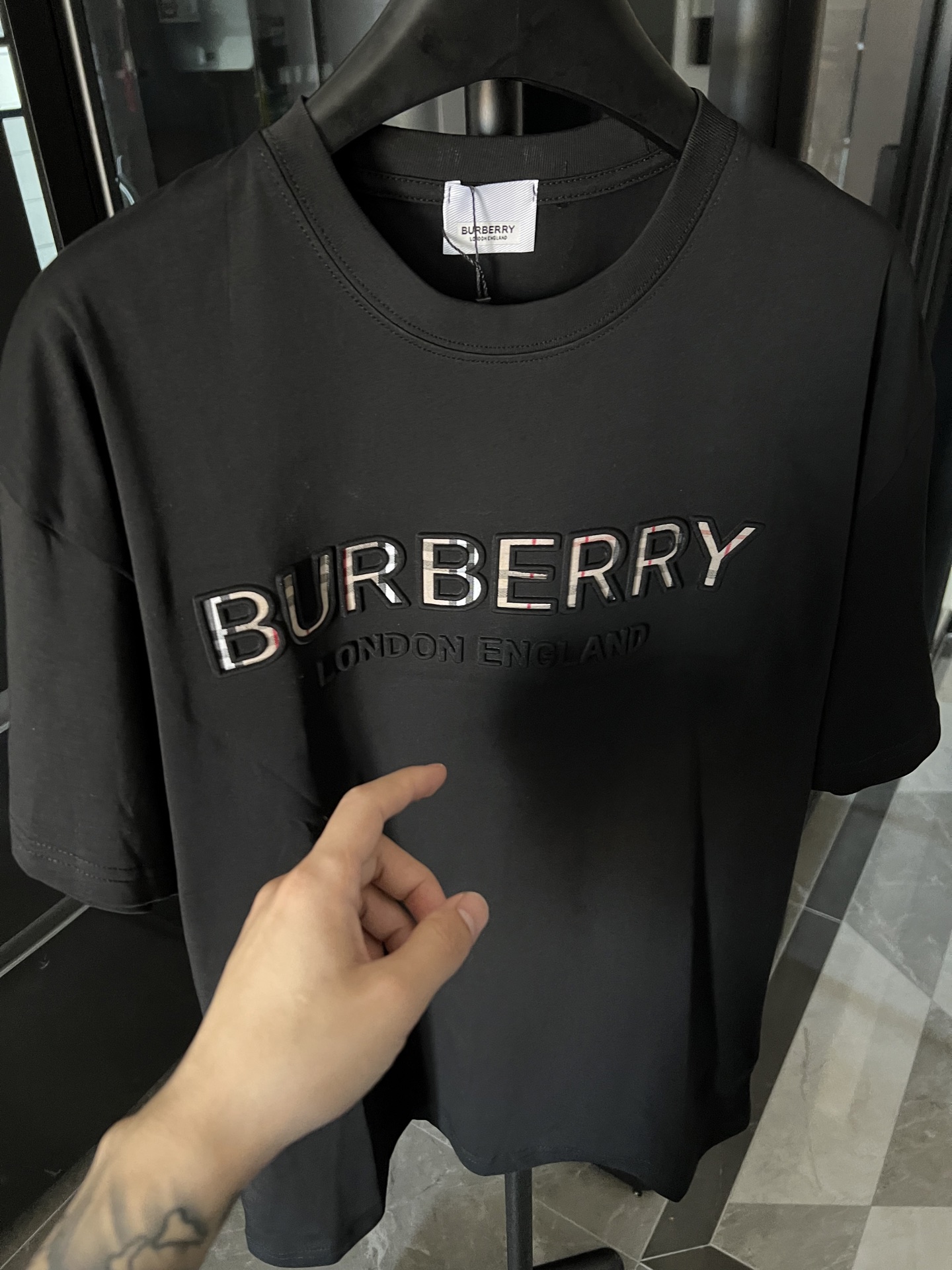 这款衣服是AAAAA 1:1 质量 (非常棒). 使用了和原版一模一样的材料. 商标部分也保持了和巴宝莉/Burberry一样. 图片拍摄是实物衣服拍摄, 您所收到的实物保证和我们图片一模一样.