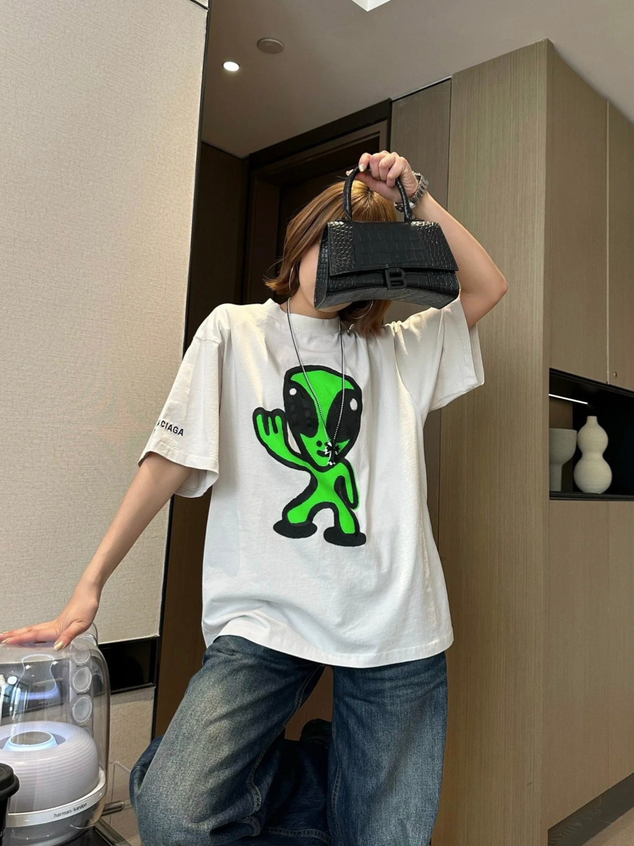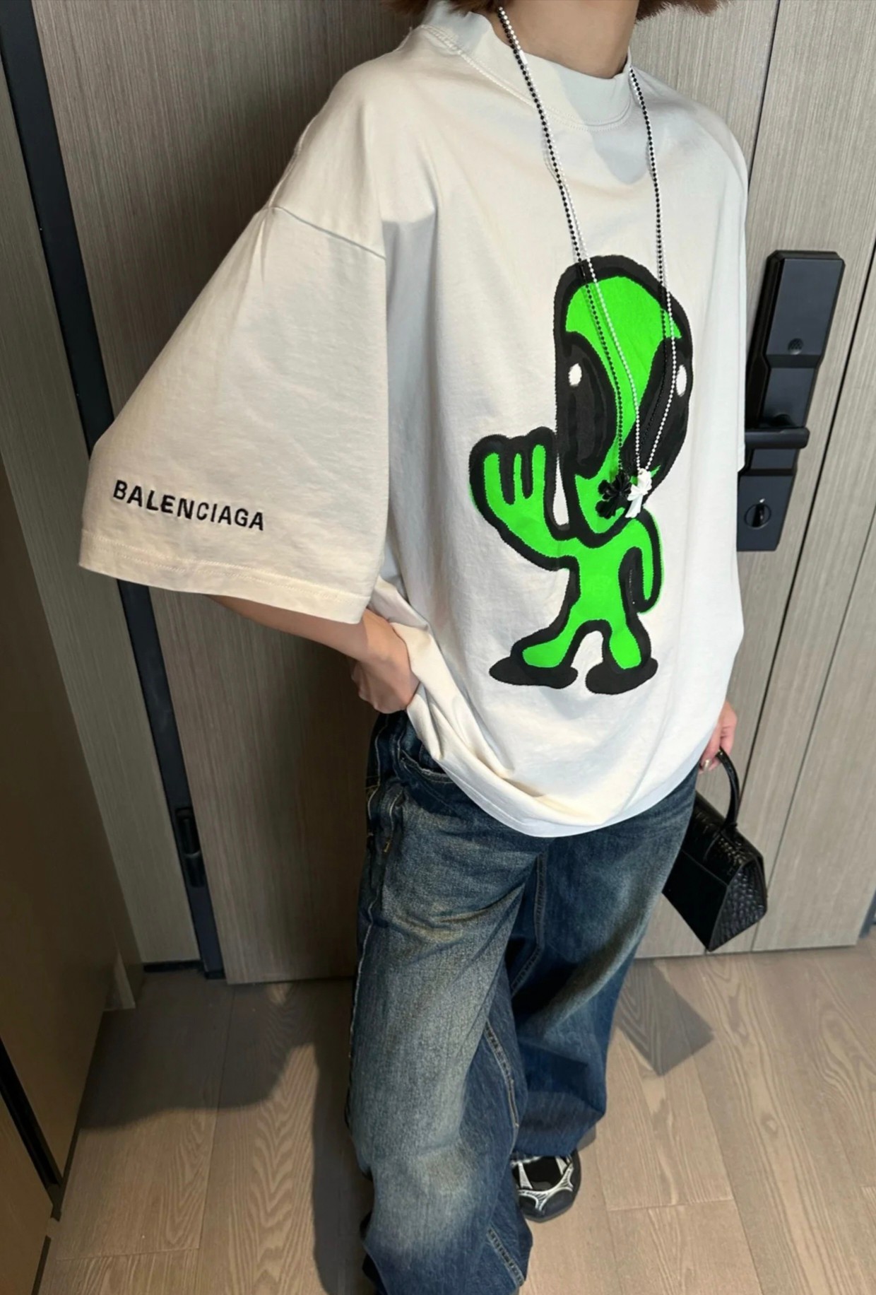 这款衣服是AAAAA 1:1 质量 (非常棒). 使用了和原版一模一样的材料. 商标部分也保持了和巴黎世家/Balenciaga一样. 图片拍摄是实物衣服拍摄, 您所收到的实物保证和我们图片一模一样.