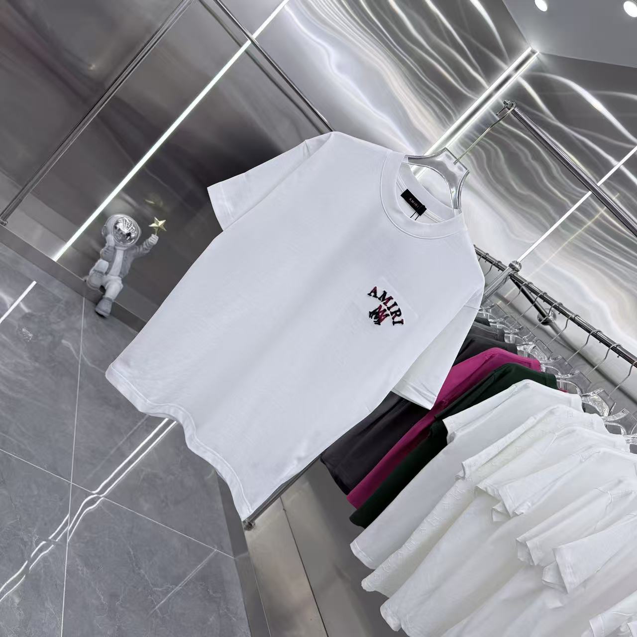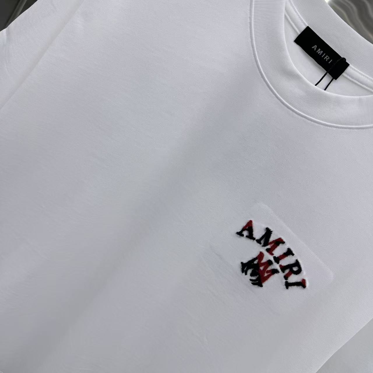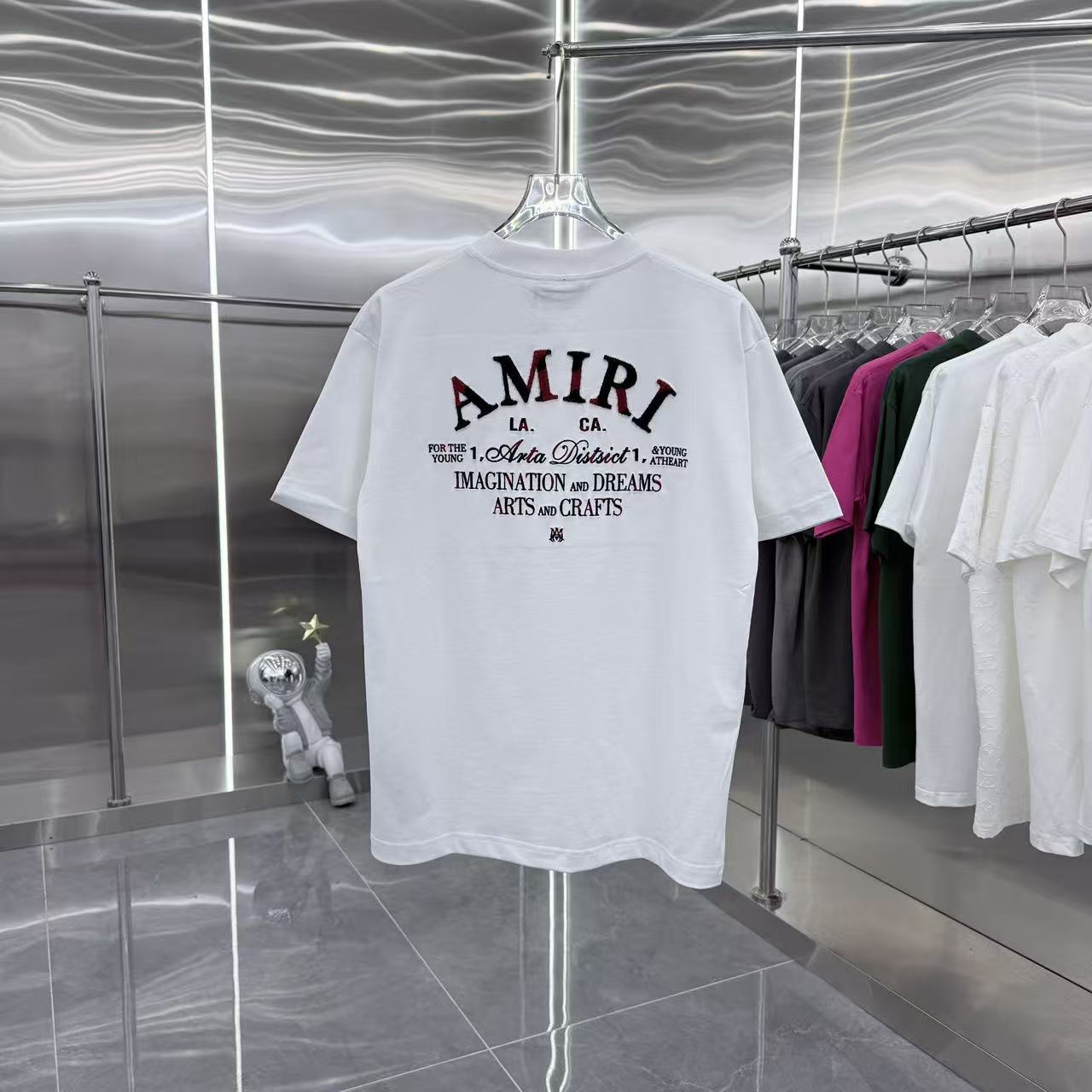 这款衣服是AAAAA 1:1 质量 (非常棒). 使用了和原版一模一样的材料. 商标部分也保持了和AMIRI一样. 图片拍摄是实物衣服拍摄, 您所收到的实物保证和我们图片一模一样.