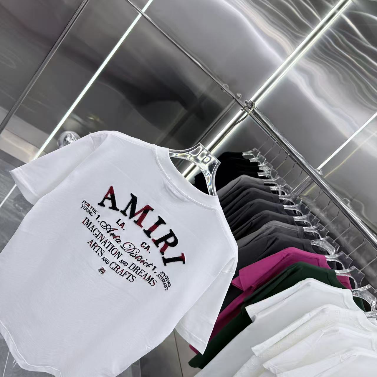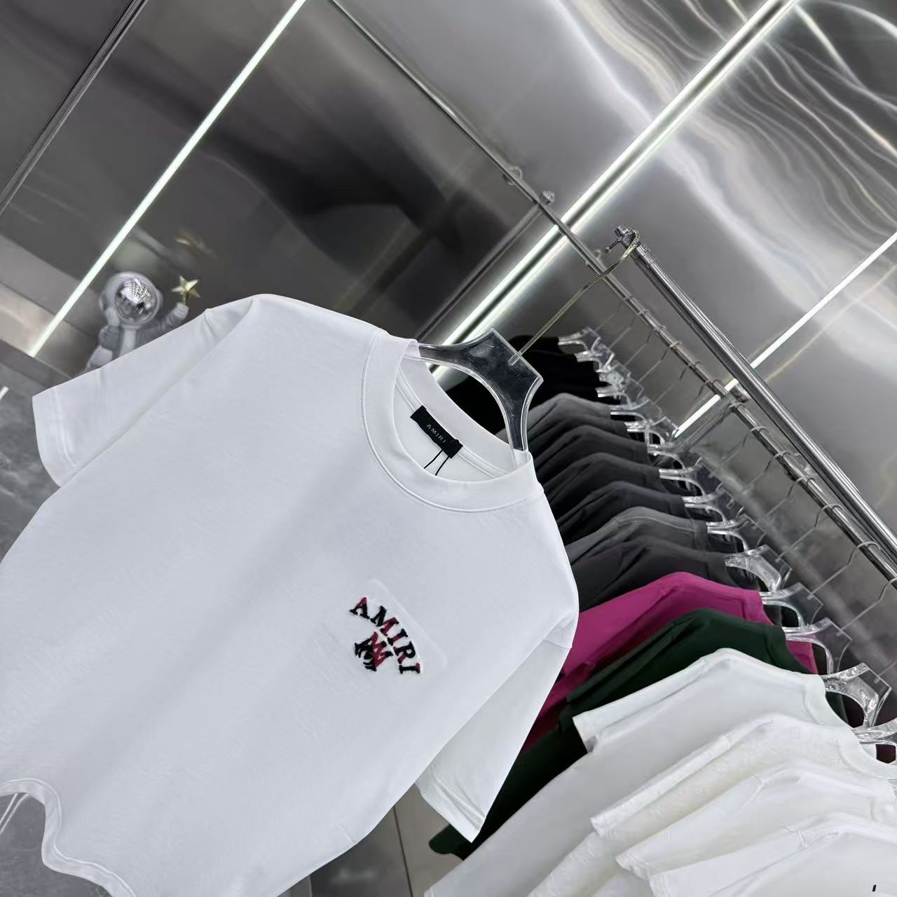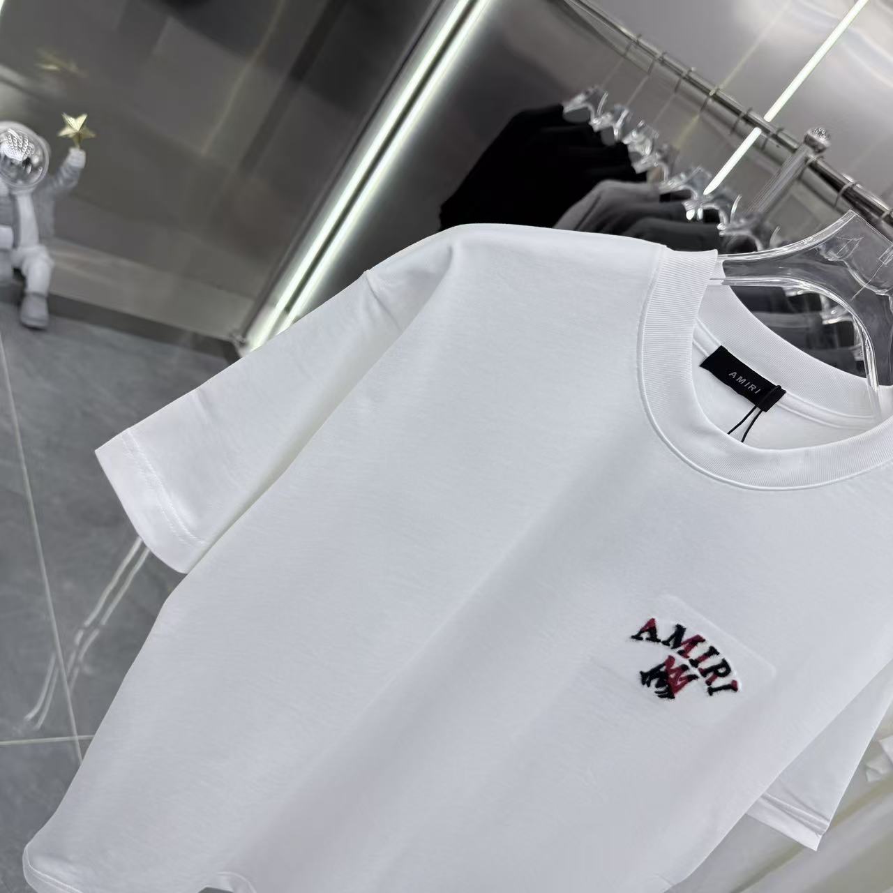 这款衣服是AAAAA 1:1 质量 (非常棒). 使用了和原版一模一样的材料. 商标部分也保持了和AMIRI一样. 图片拍摄是实物衣服拍摄, 您所收到的实物保证和我们图片一模一样.